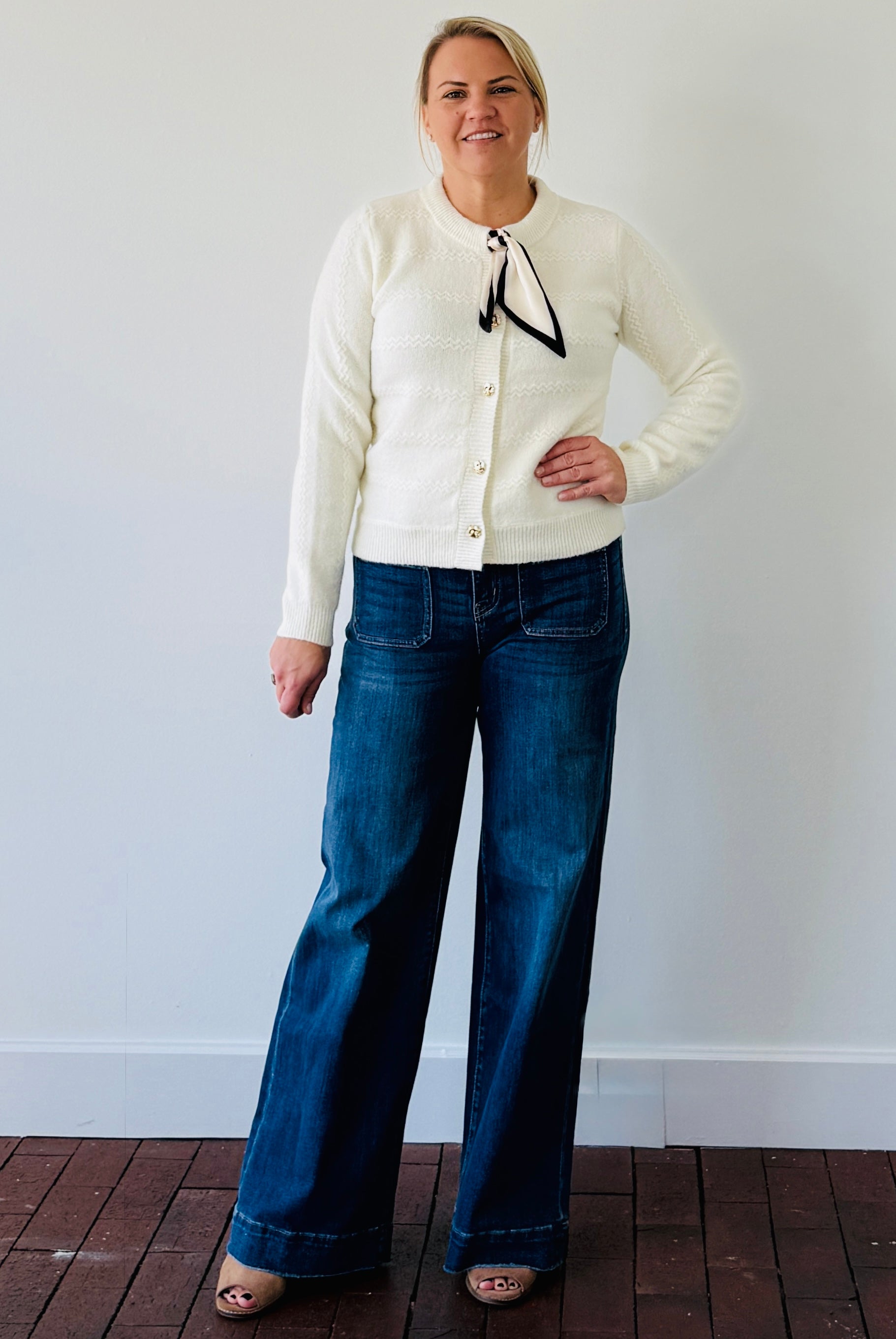 The Brianna Cardigan is the lightweight layer that instantly pulls an outfit together. With a timeless crew neckline and flattering cropped fit, it’s made for tossing over your favorite dress or pairing with denim and a tee. Soft and subtly structured, it’s a wardrobe workhorse for every season.