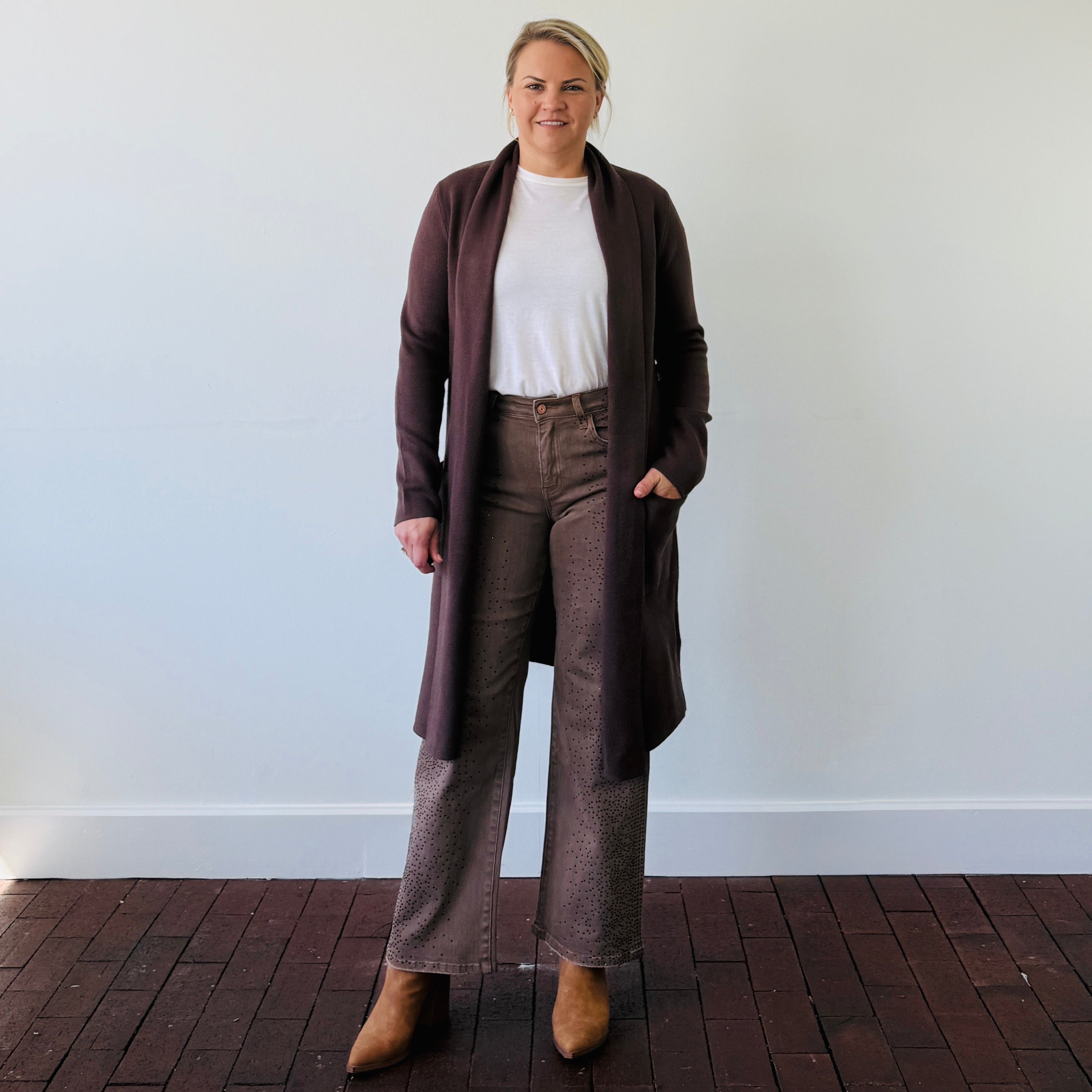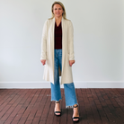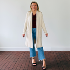 Stay cozy and chic with the Kim Long Cardigan from Pinch, the perfect layering piece for any season. This long, drapey cardigan in a versatile neutral color is designed to complement any outfit, offering both comfort and effortless style.