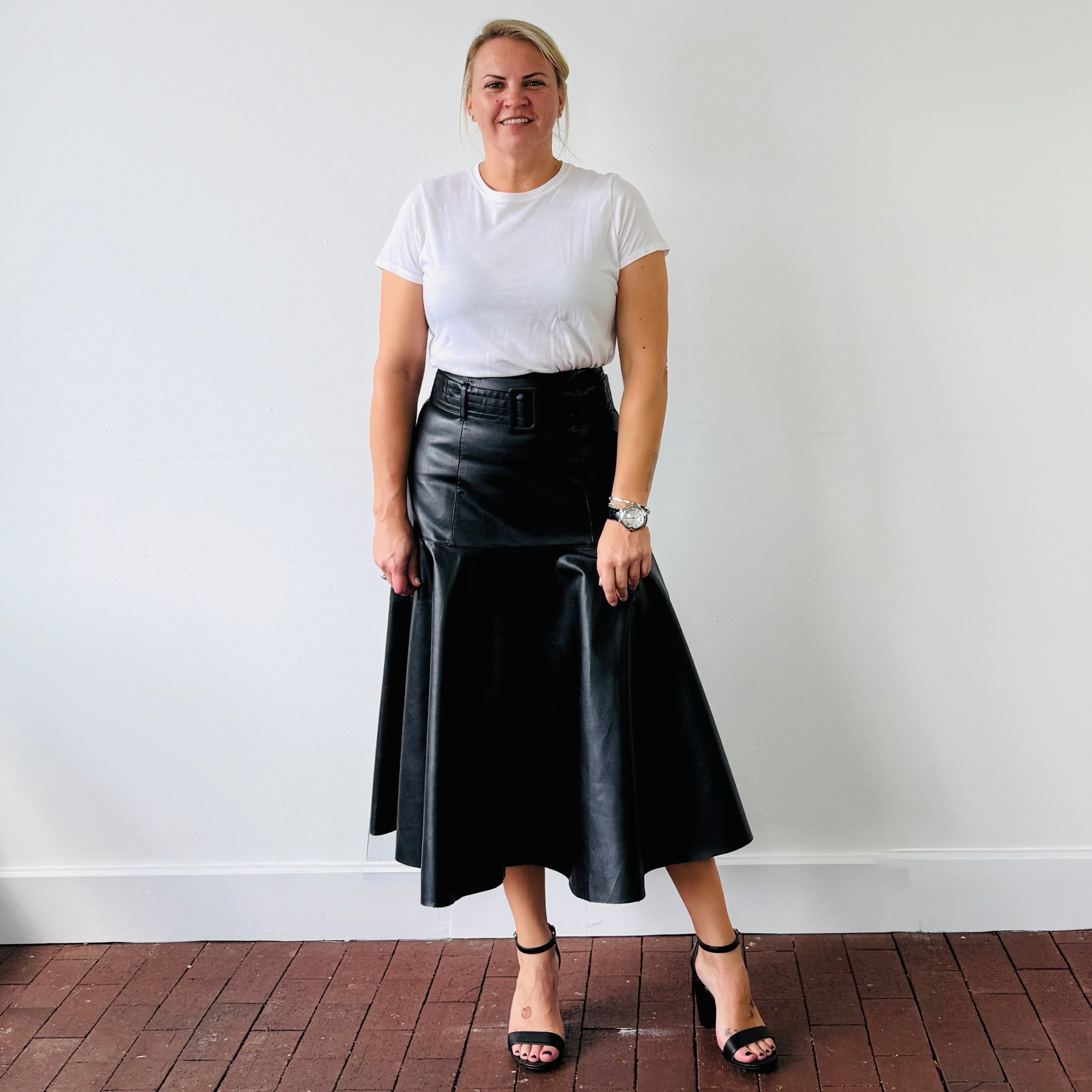 A little edge, a lot of elegance...this faux leather midi skirt brings all the main character energy (and yes, the belt is included).