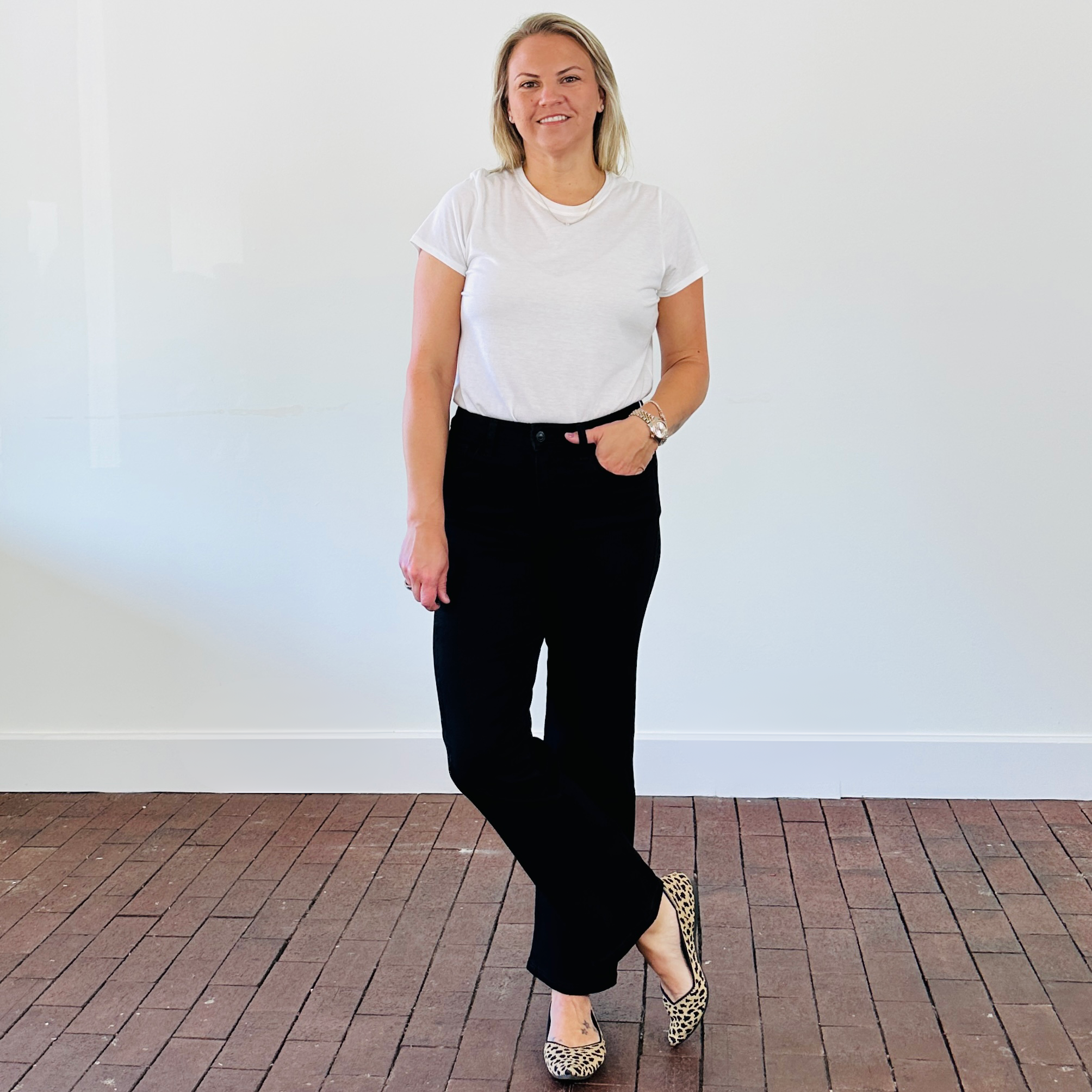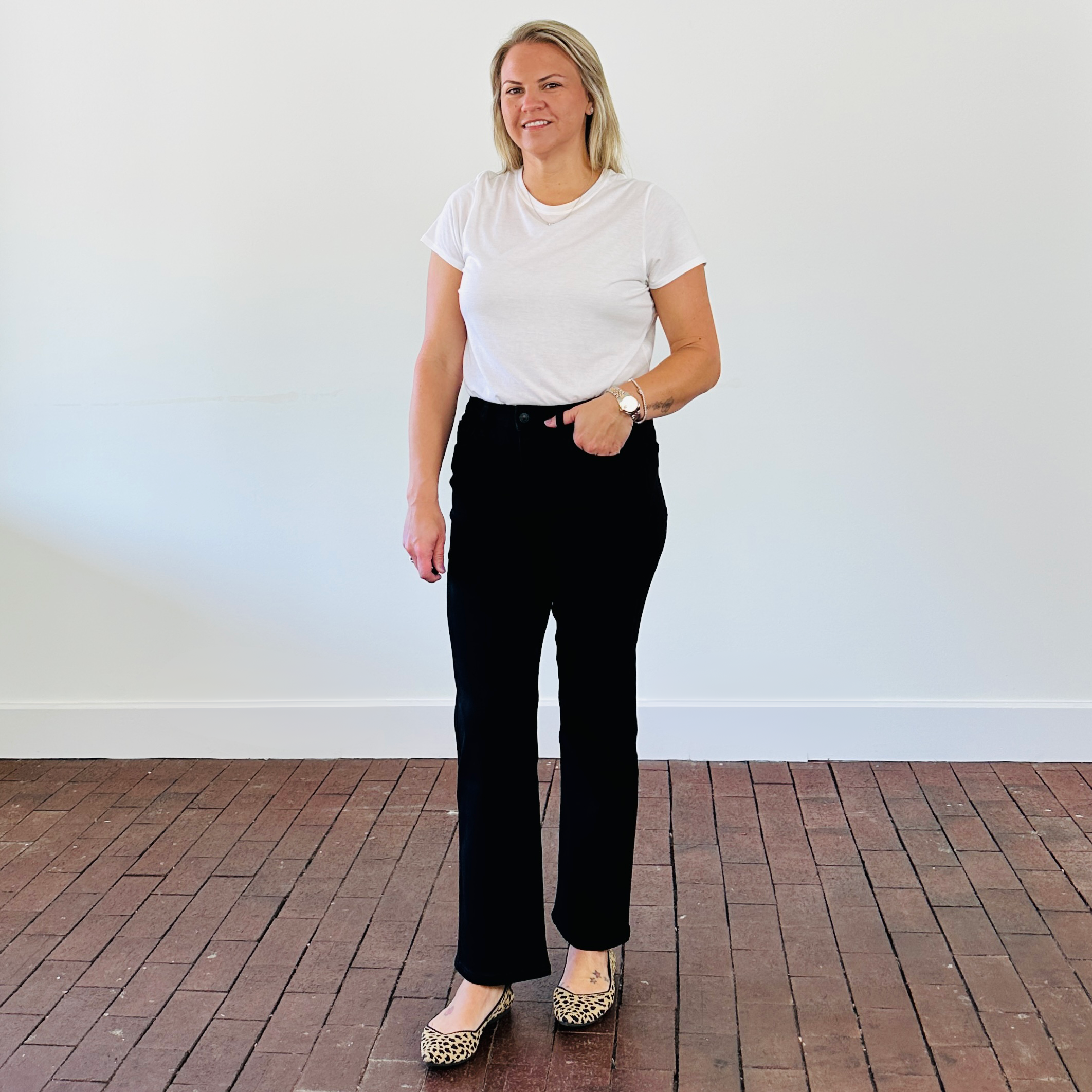 Jennifer is 5'4" & traditionally wears a 28 in Vervet by Flying Monkey Denim & is modeling the 28.
