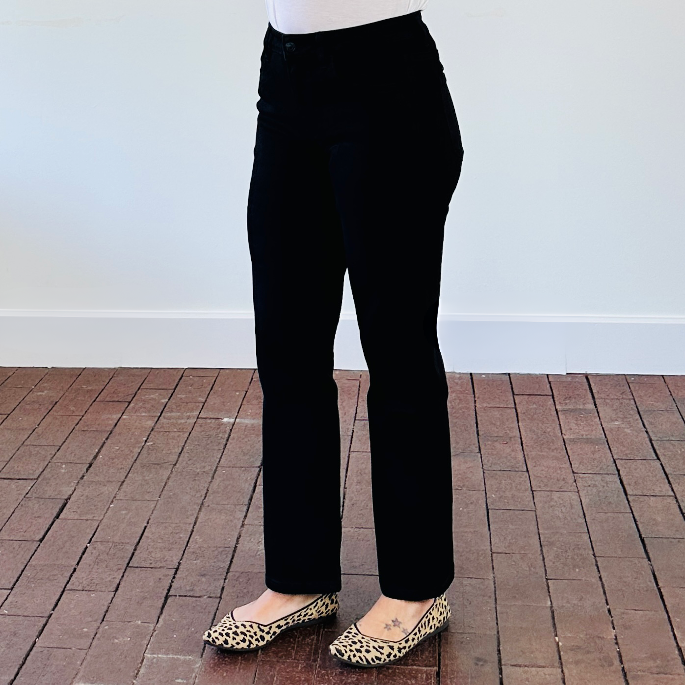 - Ankle Length: The ankle-length cut adds a chic, modern twist to the classic straight leg, making these jeans perfect for showing off your favorite shoes, whether it's sneakers, heels, or boots.