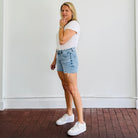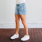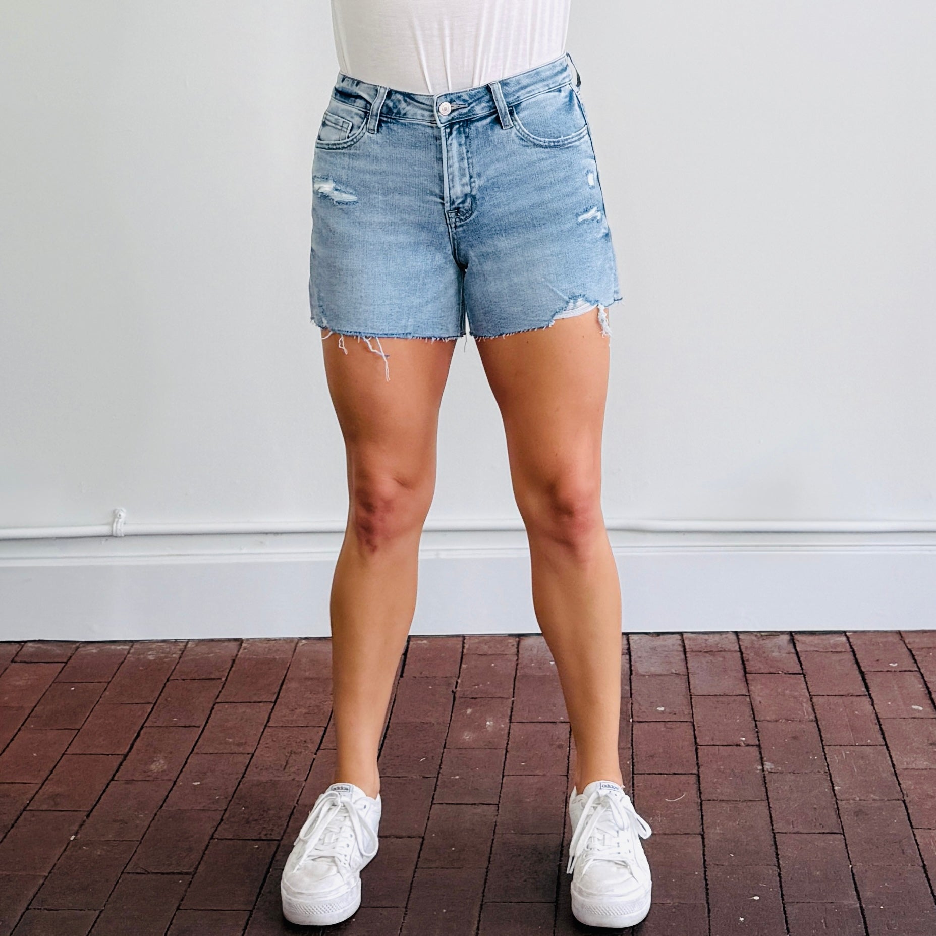 The Vervet Fairplay Mid Rise Shorts are the perfect blend of casual style and everyday comfort. Designed with a flattering mid-rise fit, these denim shorts are a must-have for your warm-weather wardrobe.