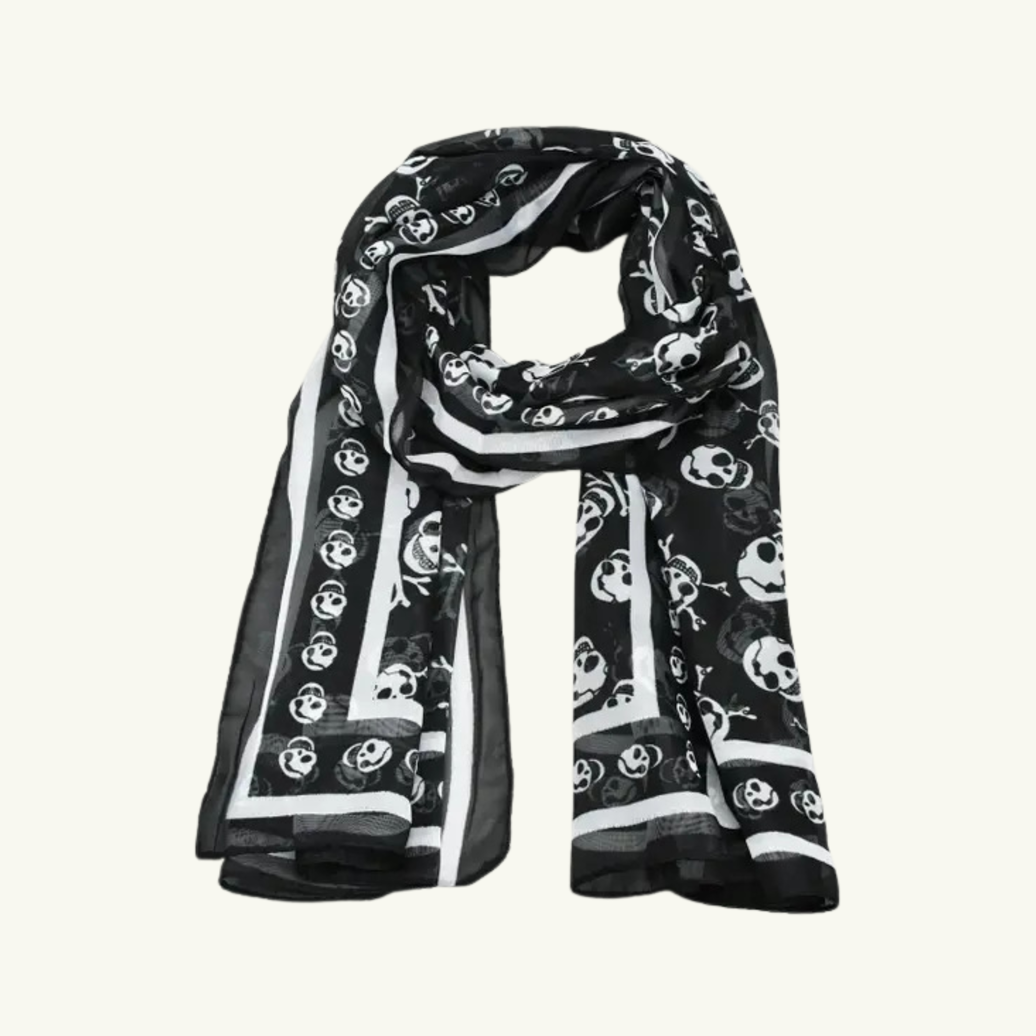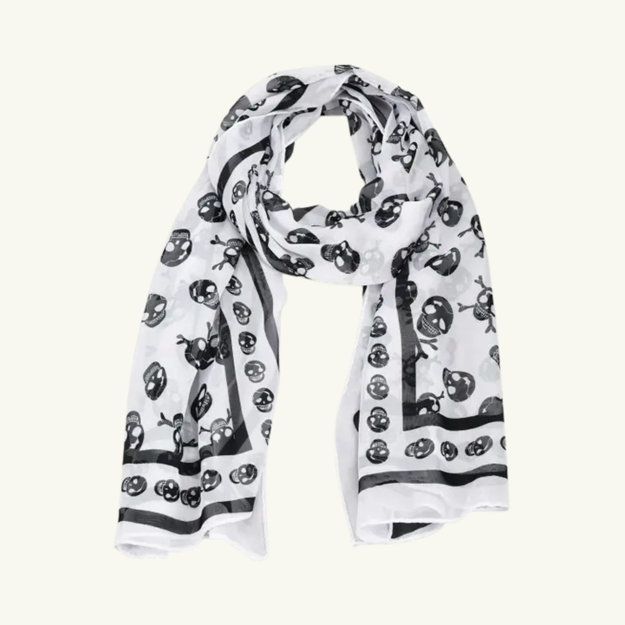 Skull Print Bandana Scarves. Lightweight, silky feel.