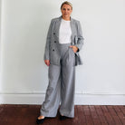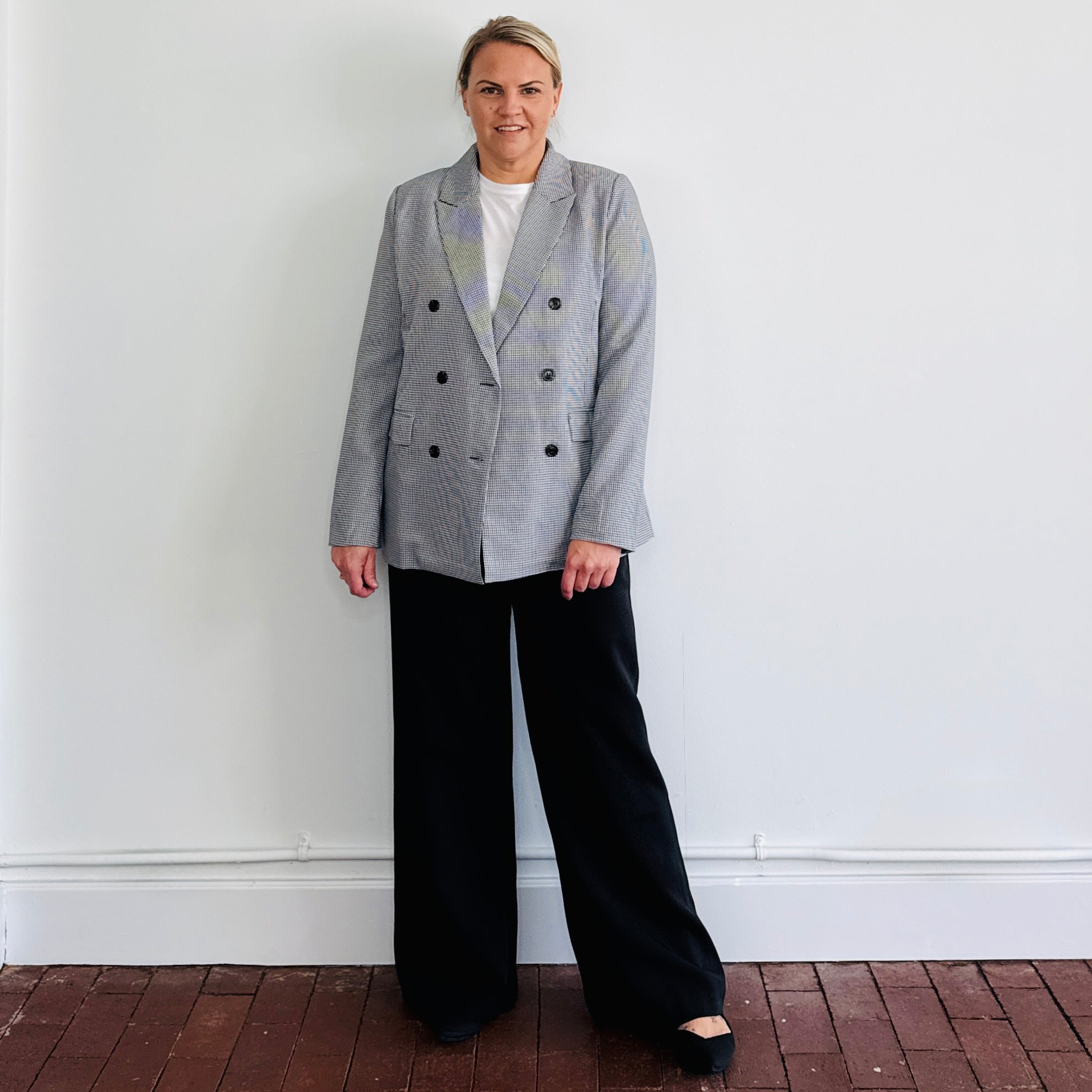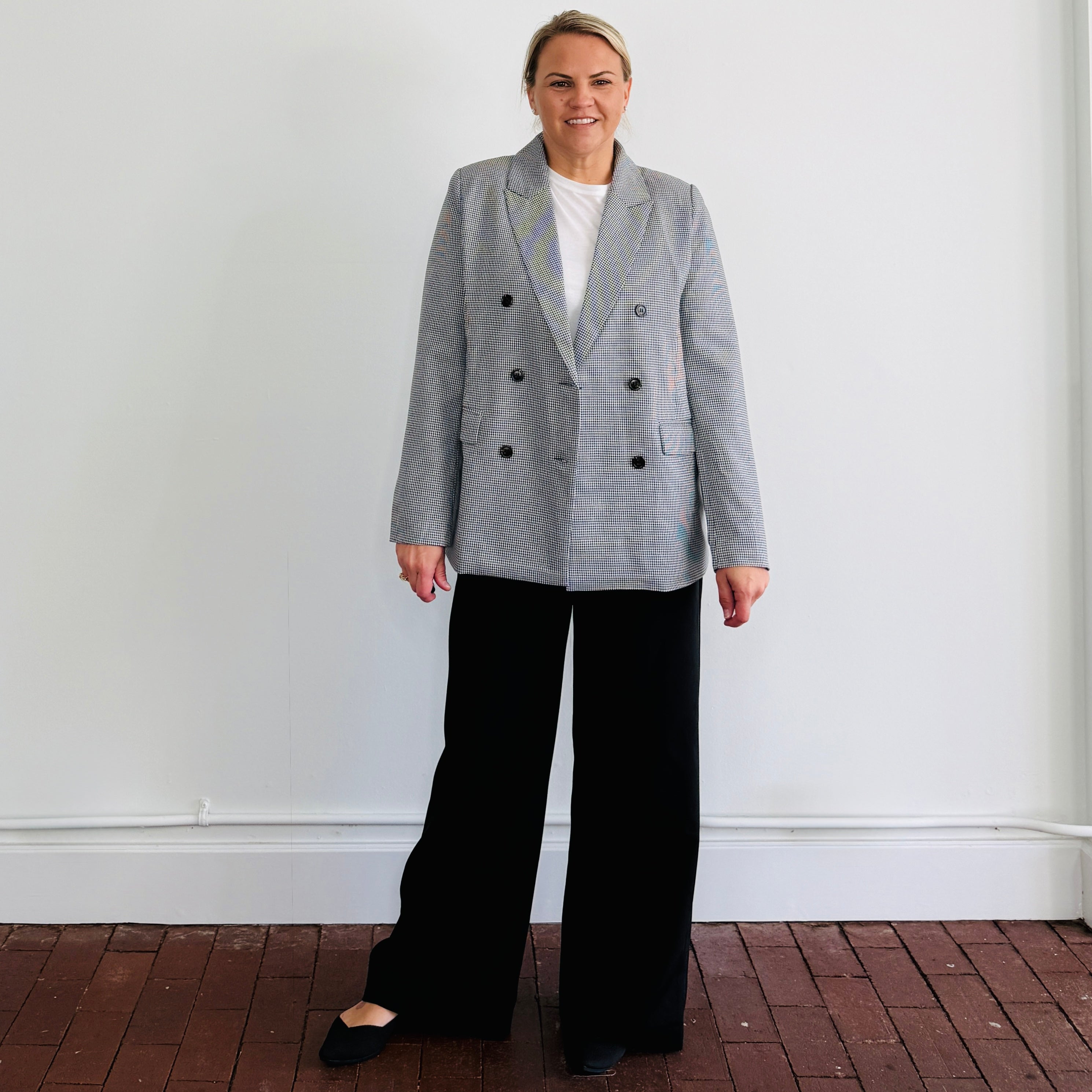Plaid lapel long sleeve double breasted blazer. Pairs with the Jessica Plaid Pleat Front Pants.