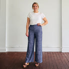 The Cassandra Pants are the perfect blend of style and ease, featuring a linen-blend fabric for a breathable, lightweight feel. Designed with a wide-leg silhouette, these pants offer a flattering drape and effortless movement. The dark chambray wash adds a timeless, versatile touch that pairs seamlessly with any wardrobe staple. Finished with a button and zipper closure for a secure and polished fit, these pants are ideal for both casual days and elevated outings.