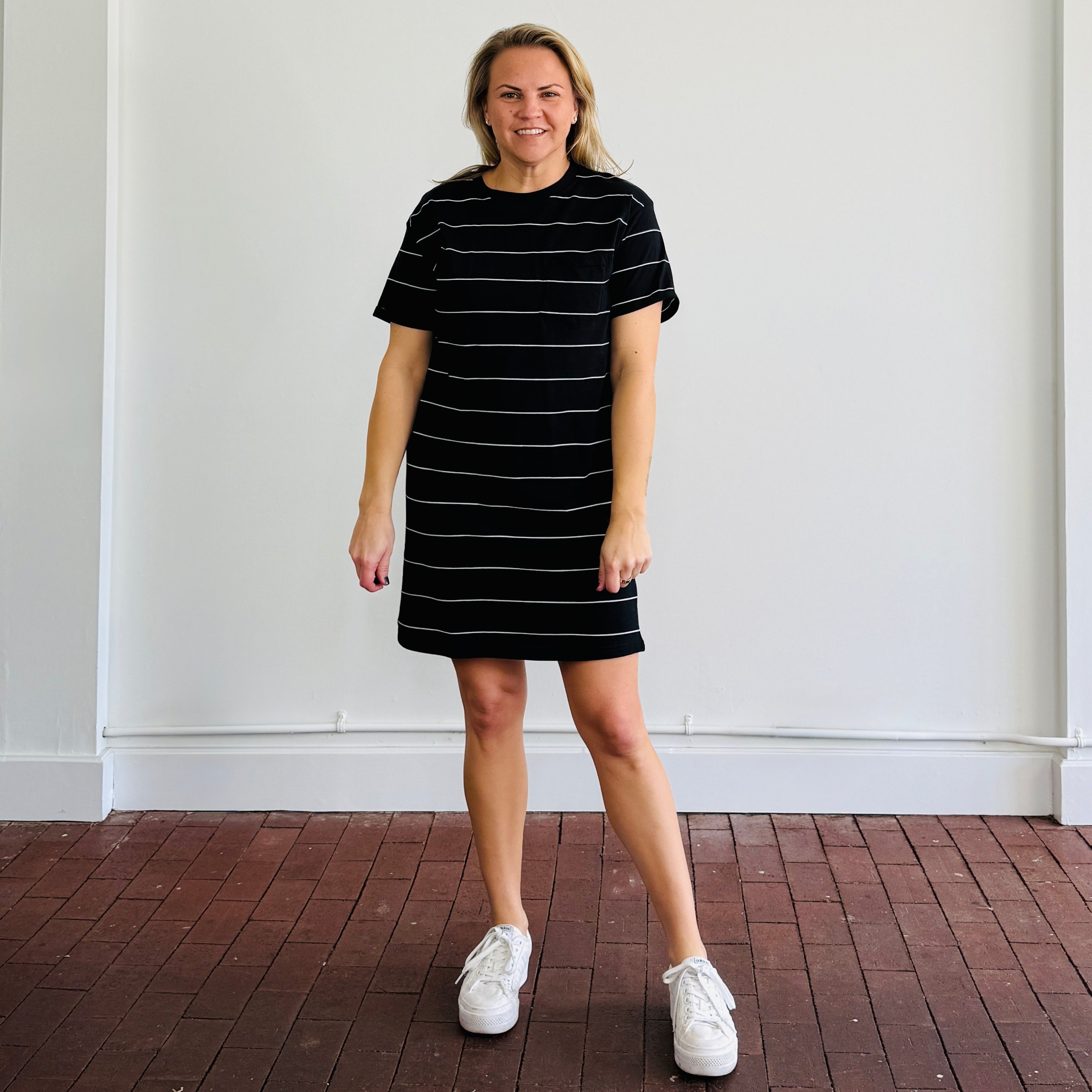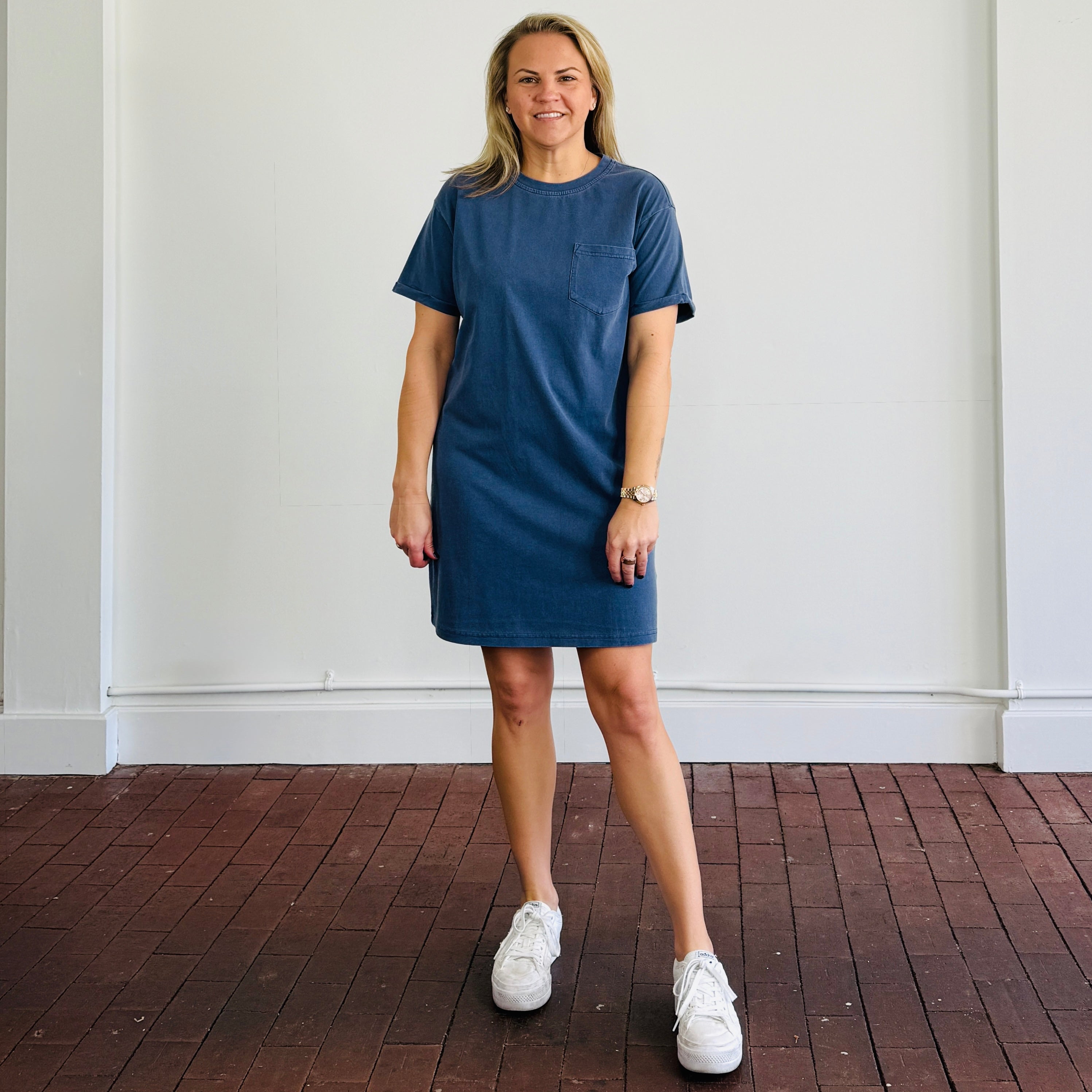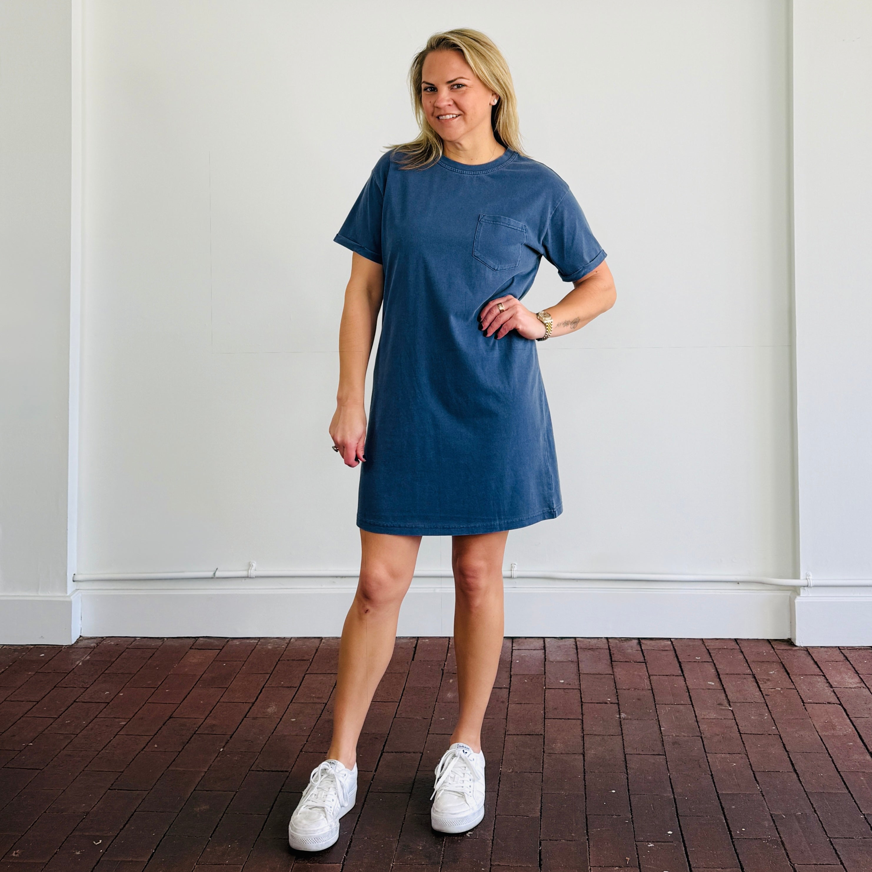 Effortless and versatile, the Lydia Kick Back Dress is your go-to for casual, everyday style. This basic tee shirt dress is made from 100% cotton, offering a breathable and soft feel that’s perfect for all-day comfort. Designed to hit slightly above the knee, it creates a flattering silhouette that works for a variety of occasions.