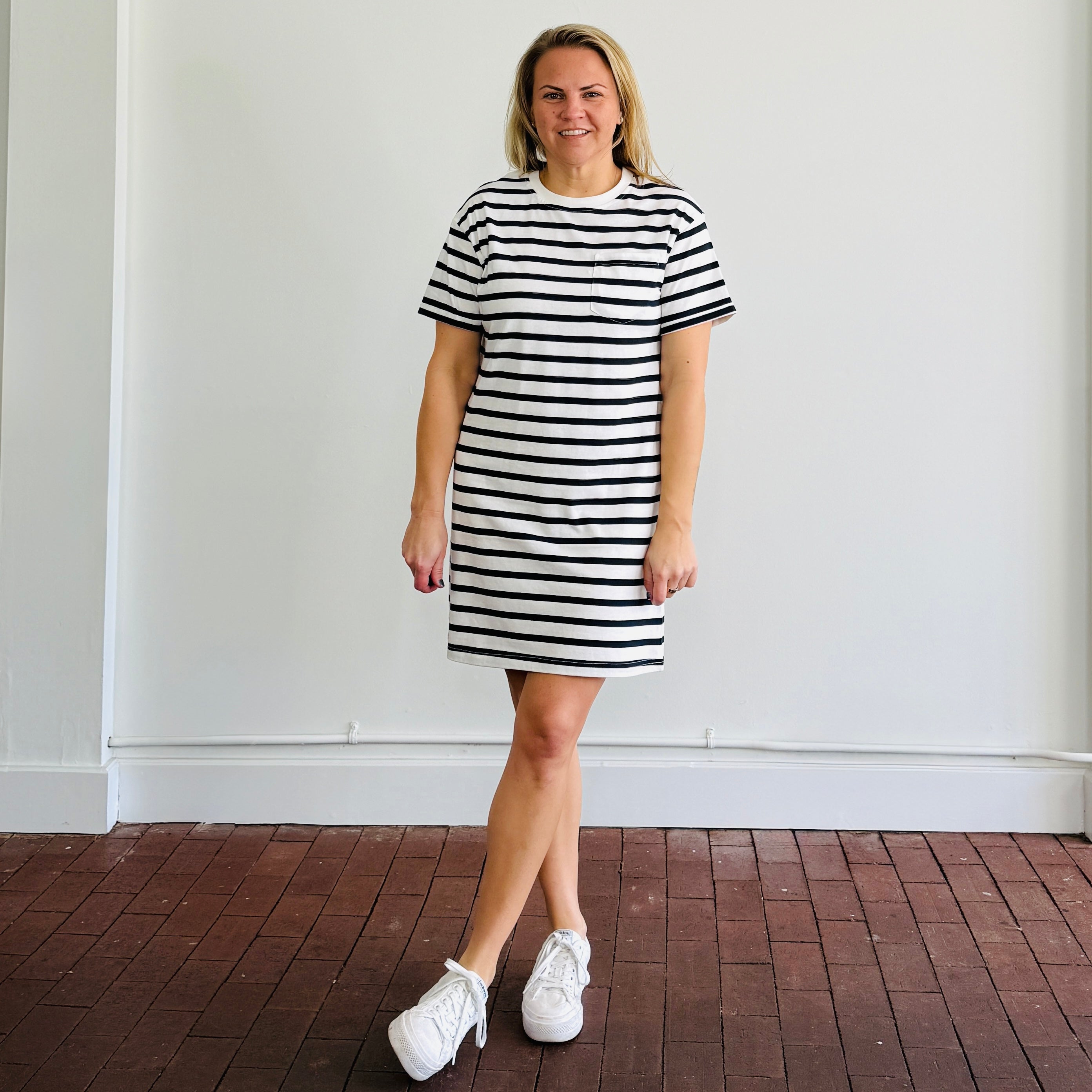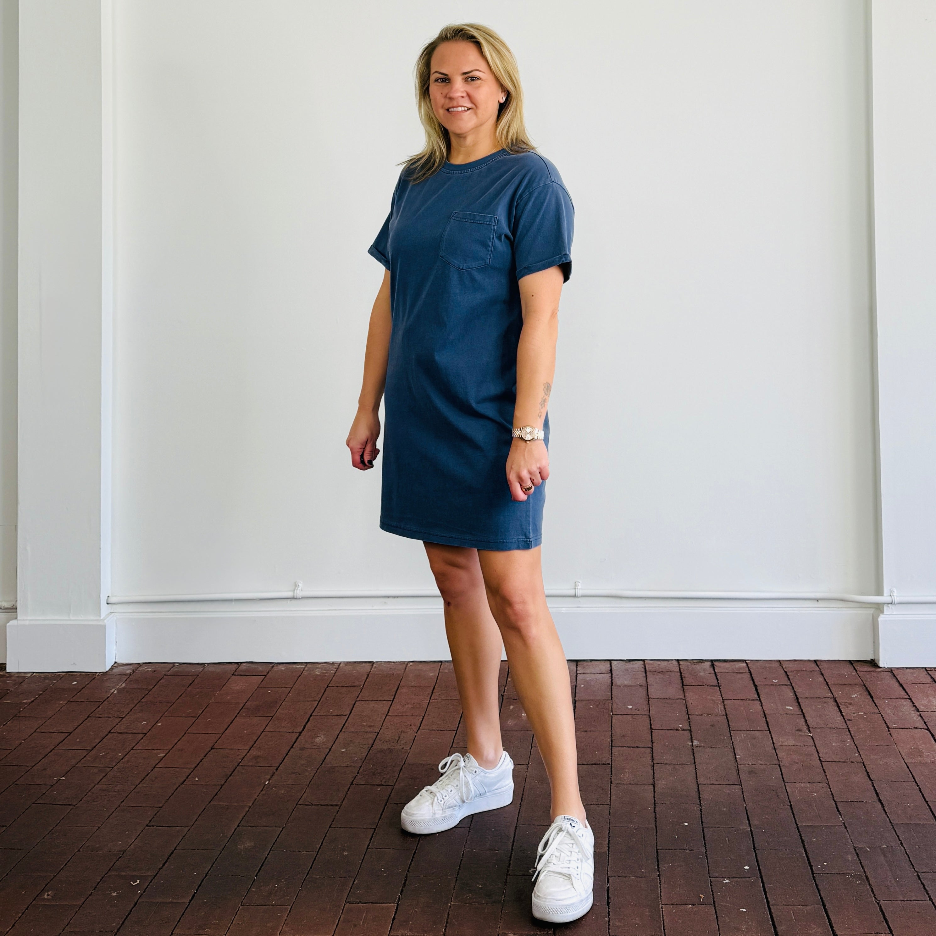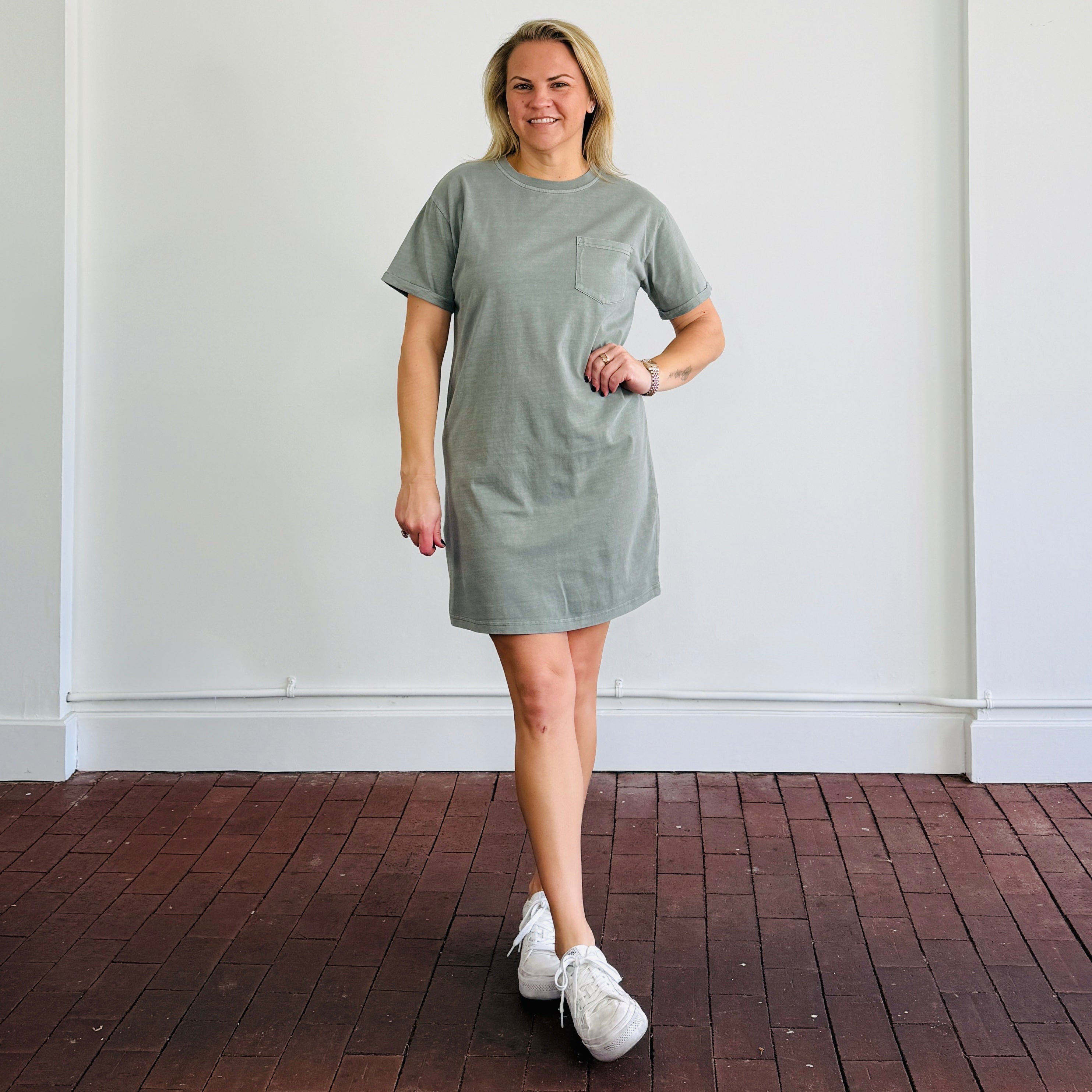 Effortless and versatile, the Lydia Kick Back Dress is your go-to for casual, everyday style. This basic tee shirt dress is made from 100% cotton, offering a breathable and soft feel that’s perfect for all-day comfort. Designed to hit slightly above the knee, it creates a flattering silhouette that works for a variety of occasions.