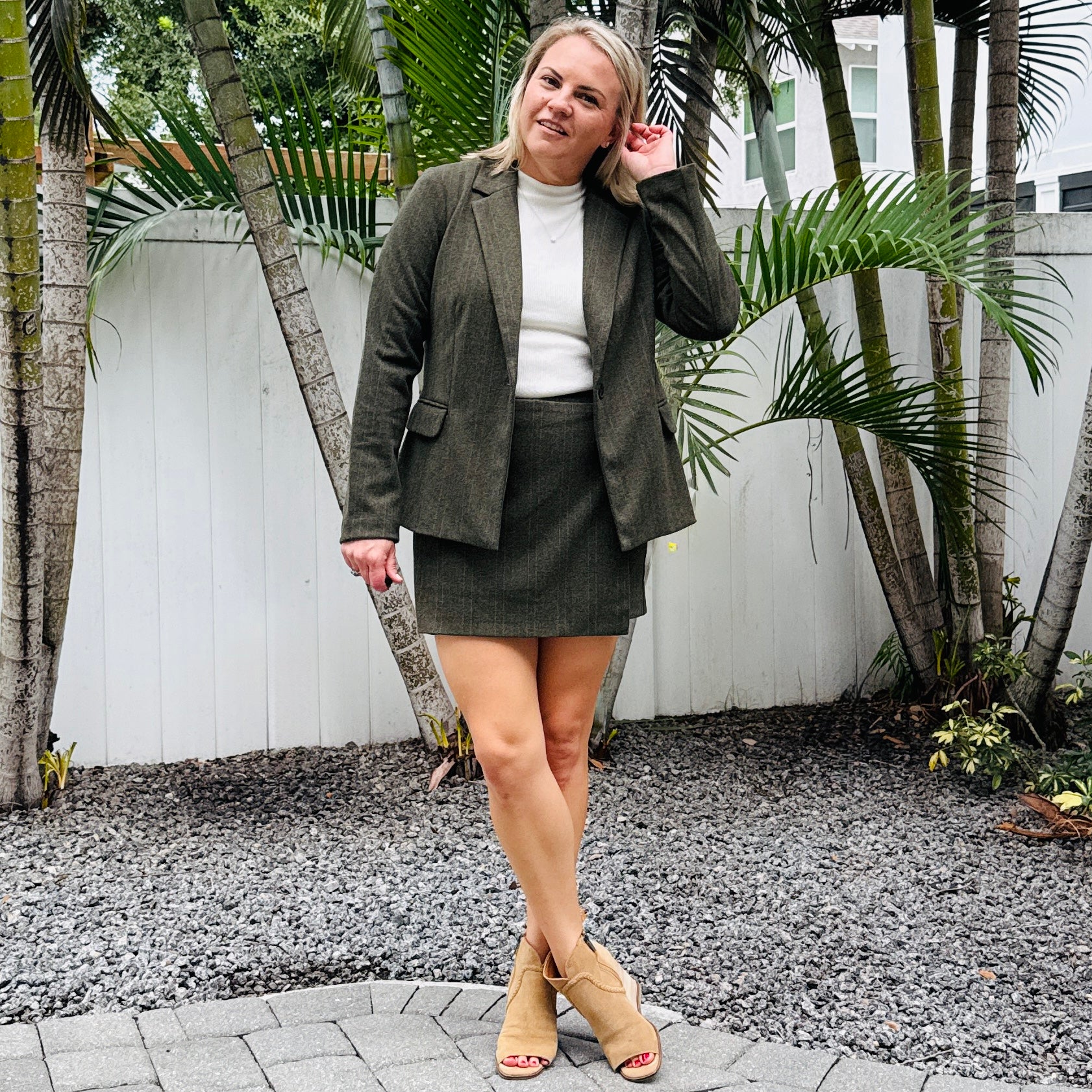 Paired with the Rory Pinstripe Blazer and Melanie Short Sleeve Sweater