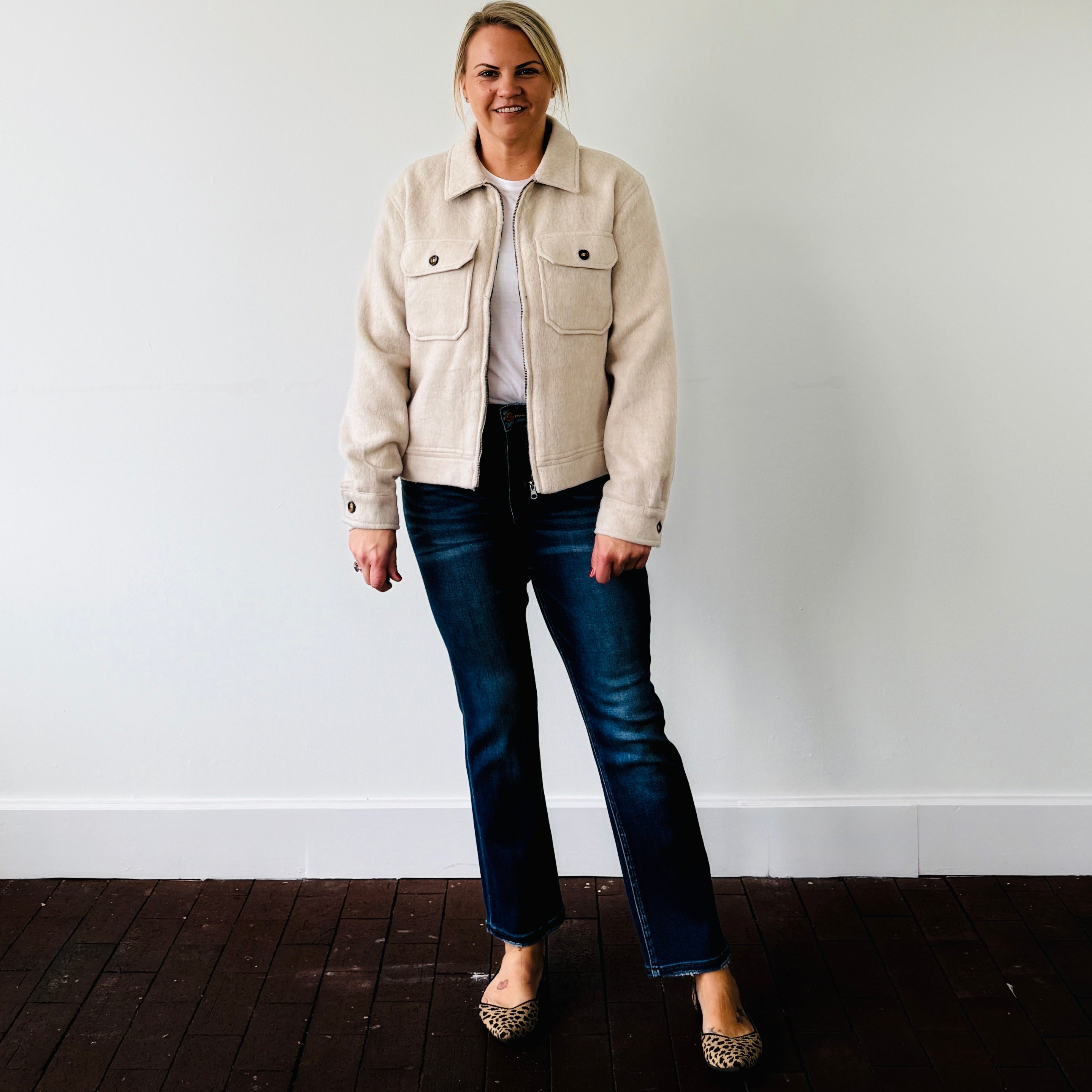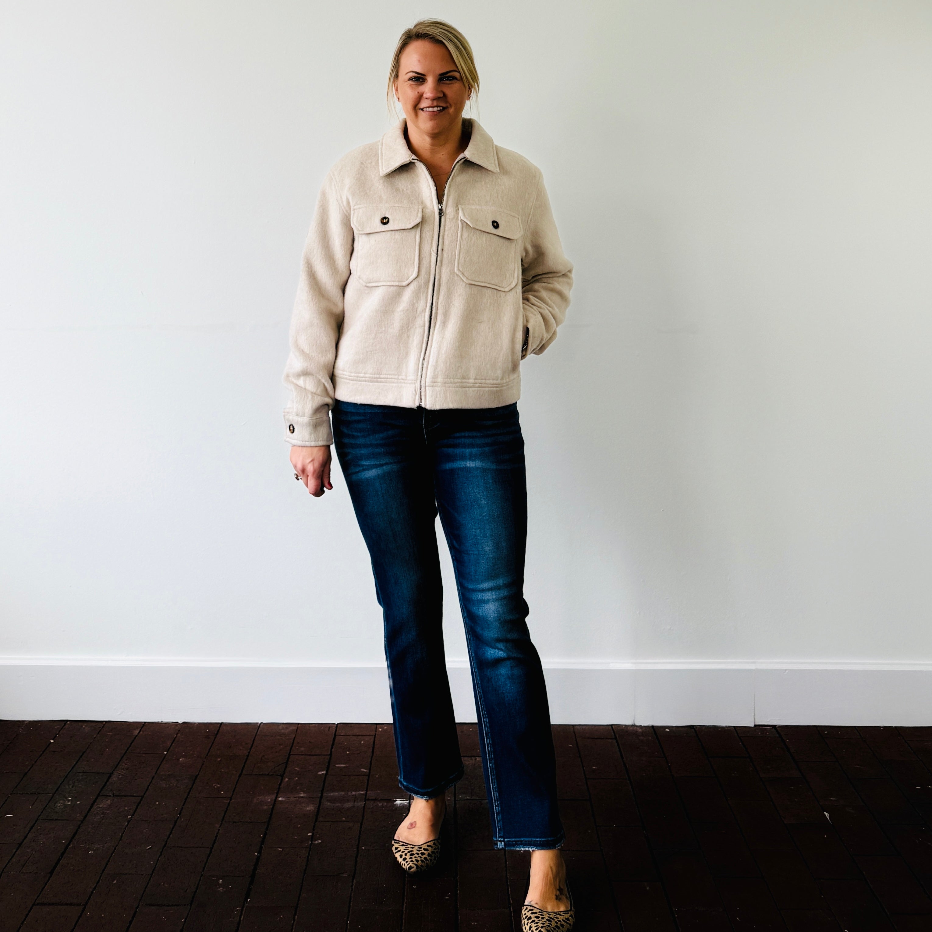 Effortlessly cool and endlessly wearable, the Isra Jacket is that perfect in-between layer. The clean zip front, structured collar, and functional chest pockets deliver utilitarian edge with a soft, polished finish.