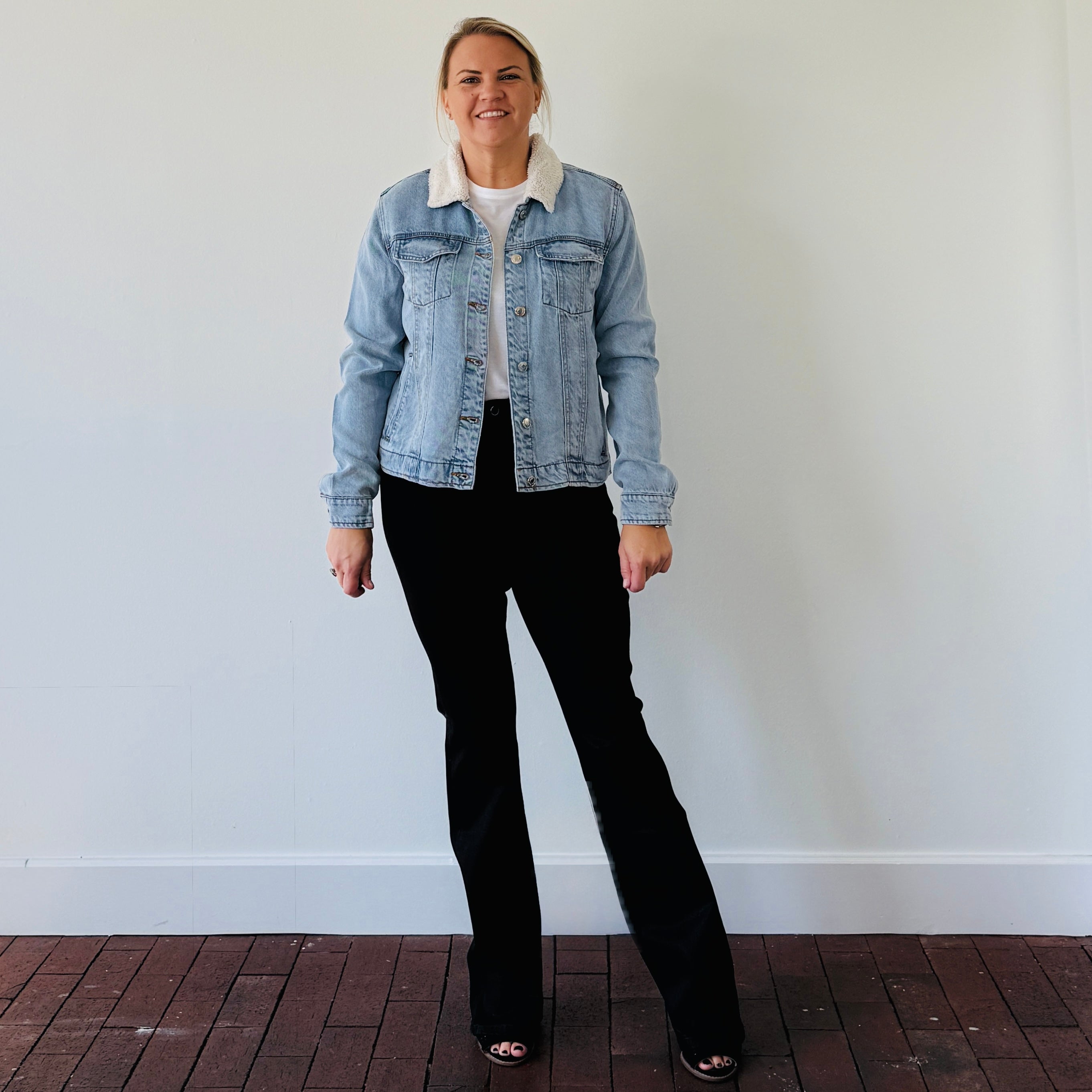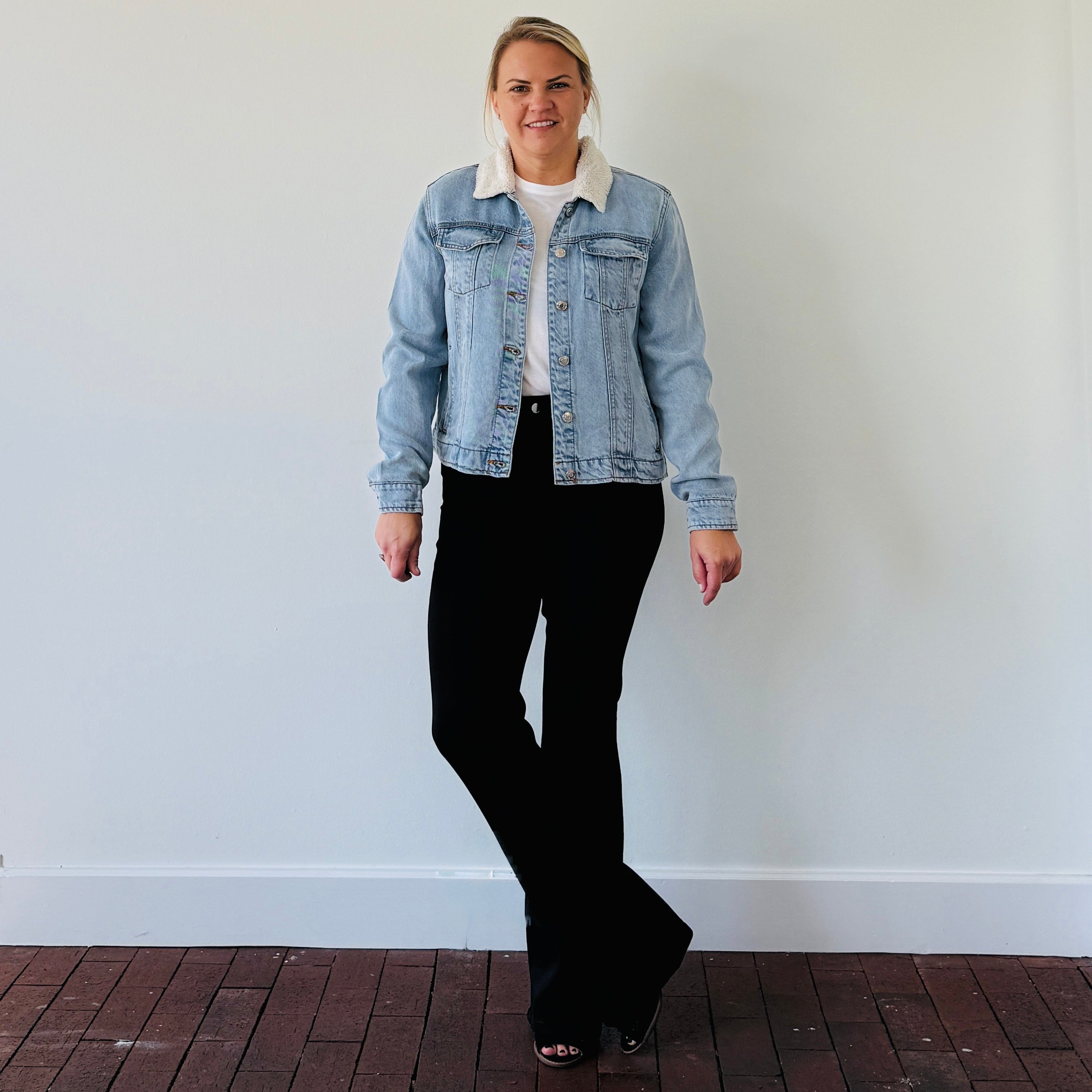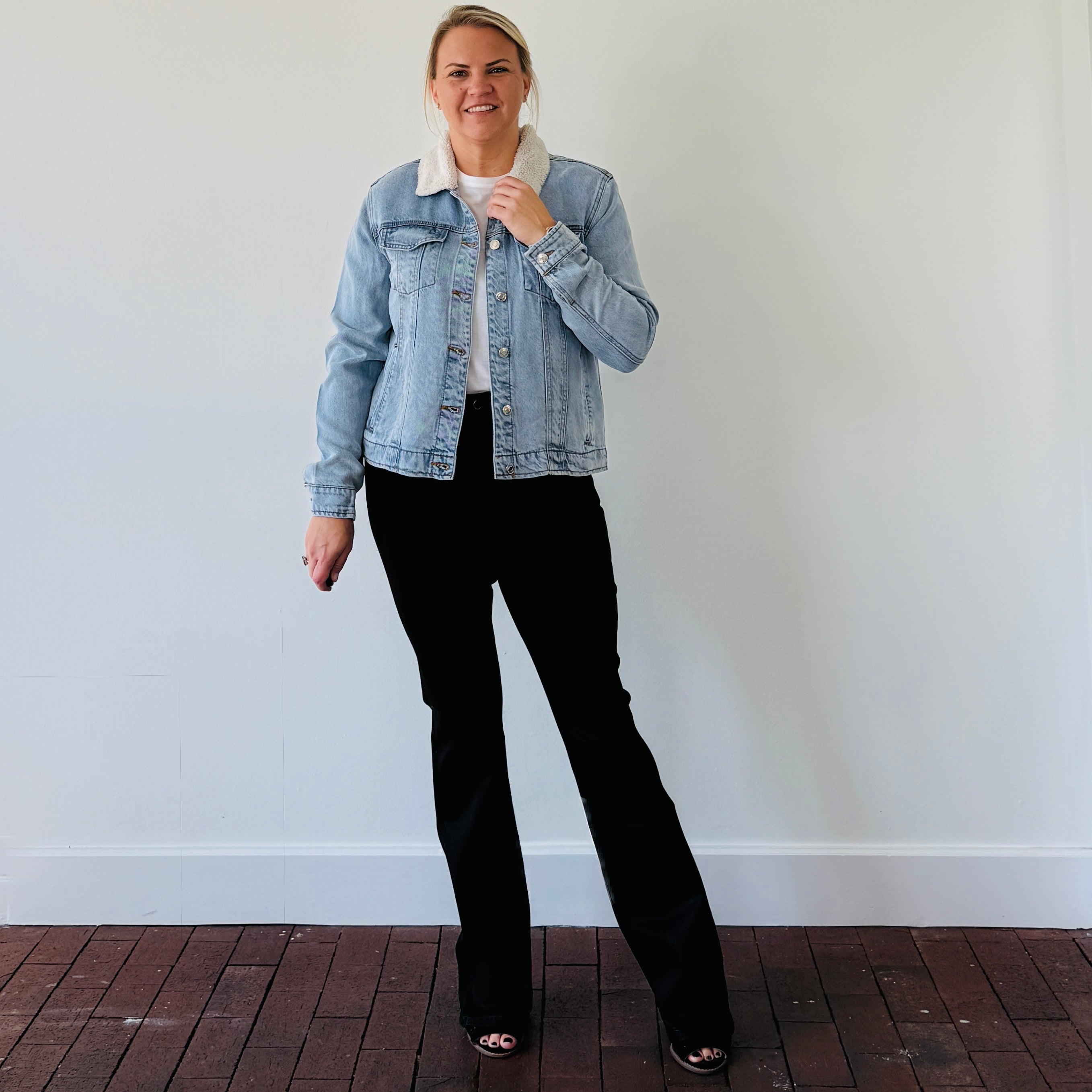 Your classic denim jacket just got a cozy upgrade. With a soft sherpa collar and timeless structure, this one layers like a dream...perfect for breezy Florida nights or holiday travel chills.