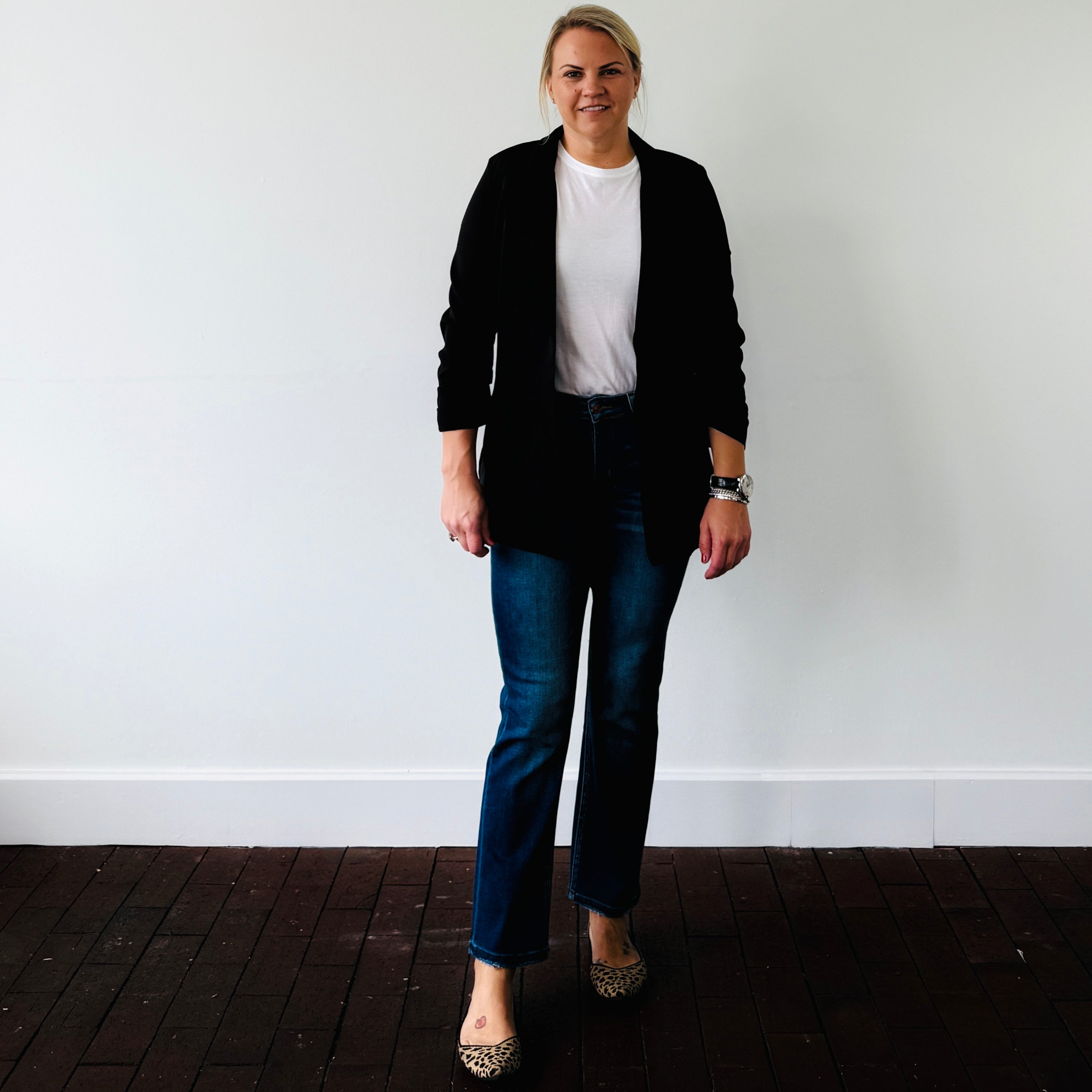 Your closet's new power player. This rich black blazer brings effortless polish to denim, trousers, or a midi dress...perfect for the Florida version of fall layering.