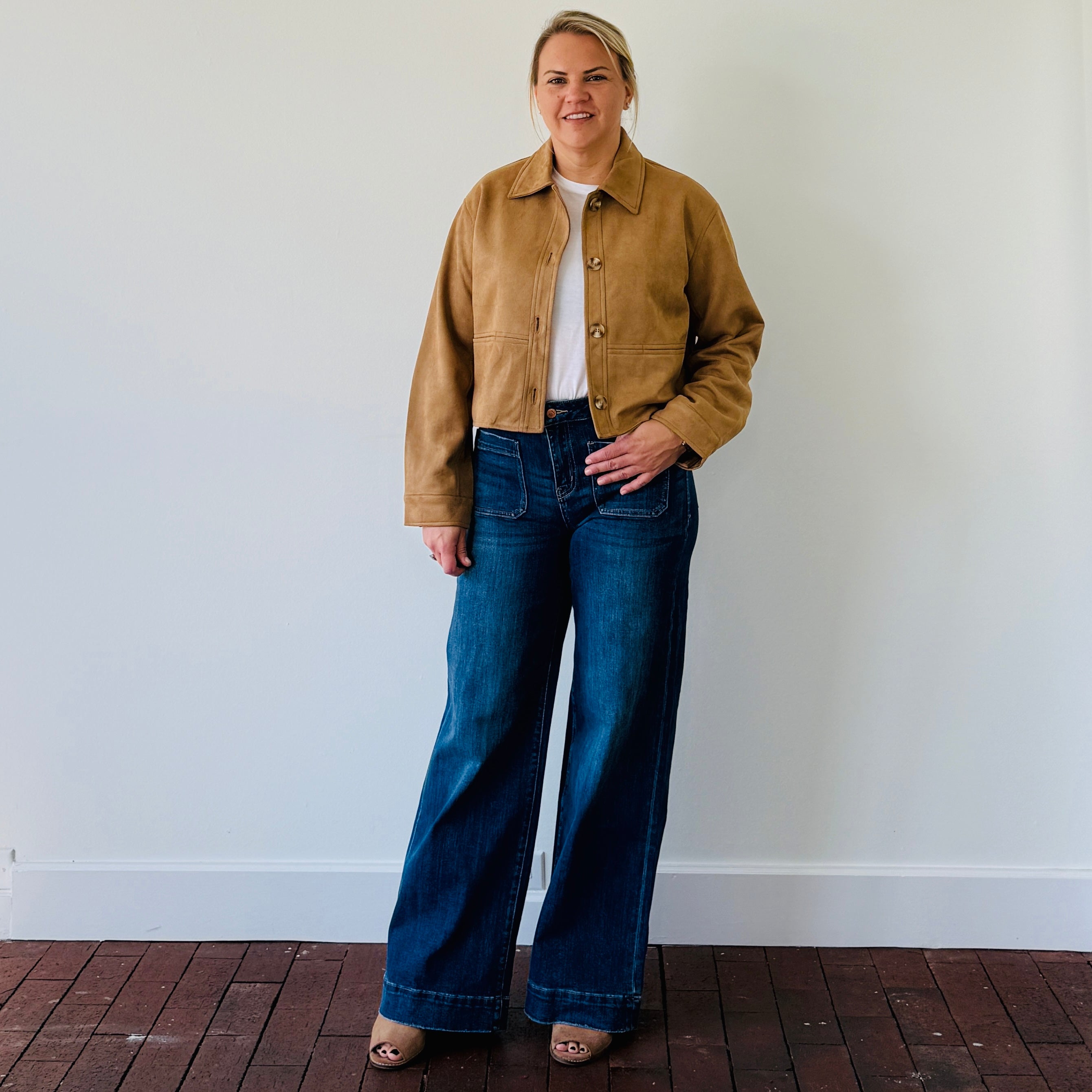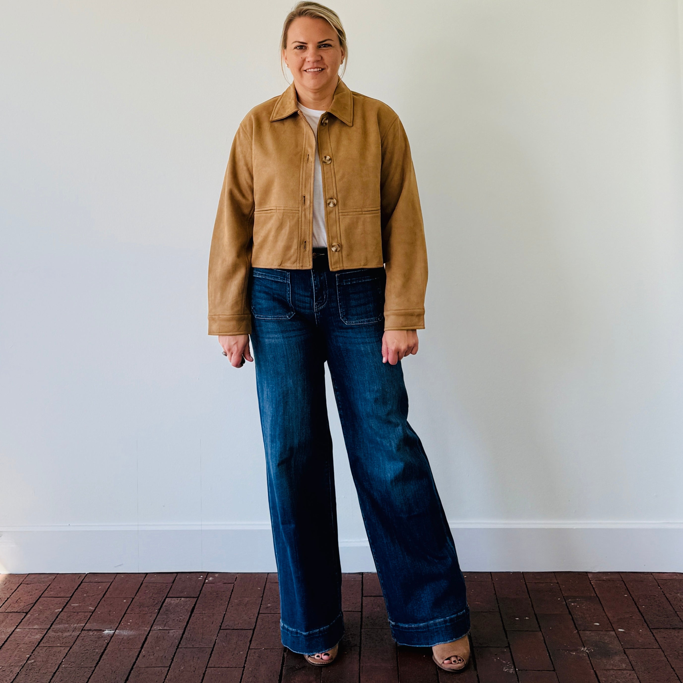 Chic, structured, and just the right amount of sass...this suede-look cropped jacket brings a sleek finish to anything from high-rise denim to flowy midi skirts.