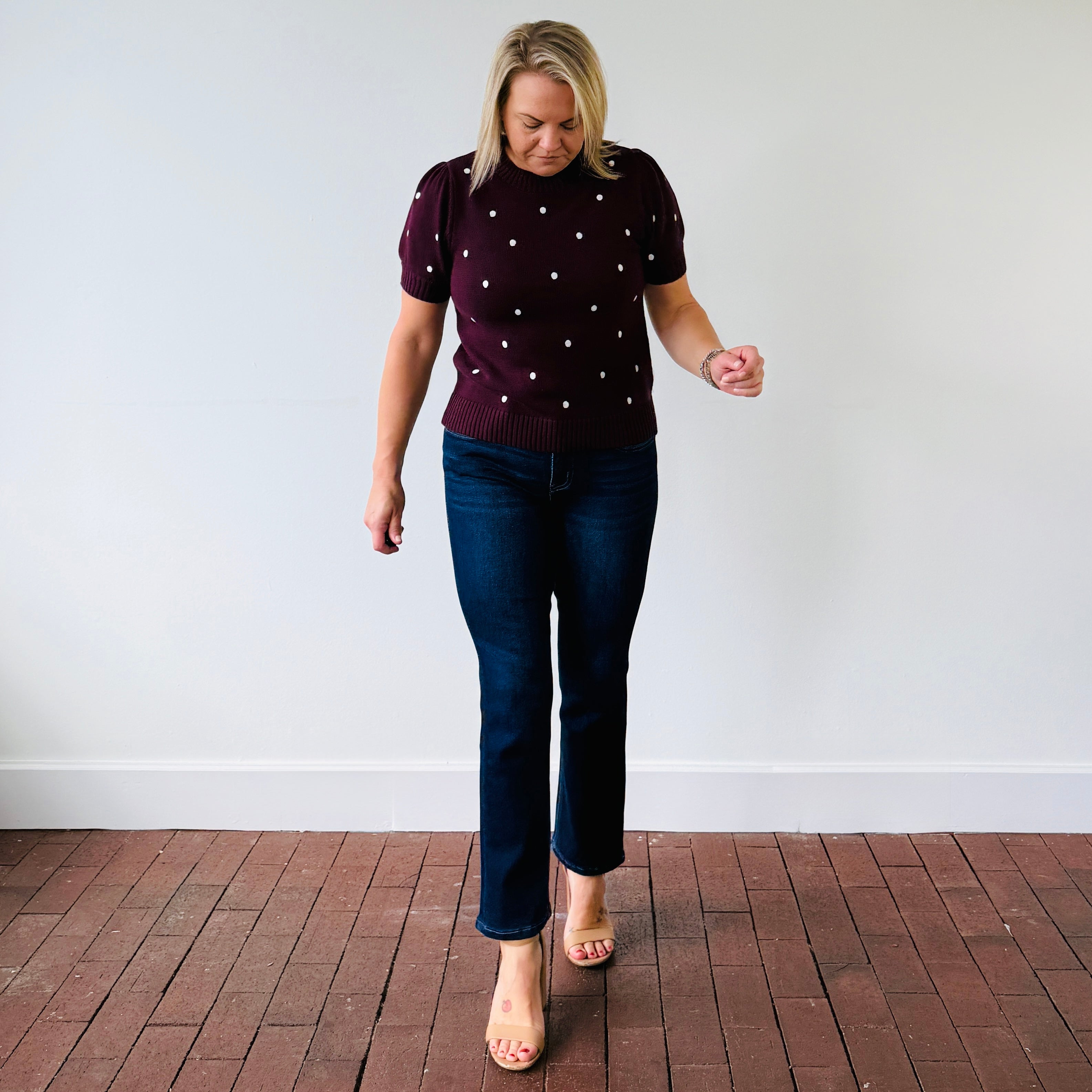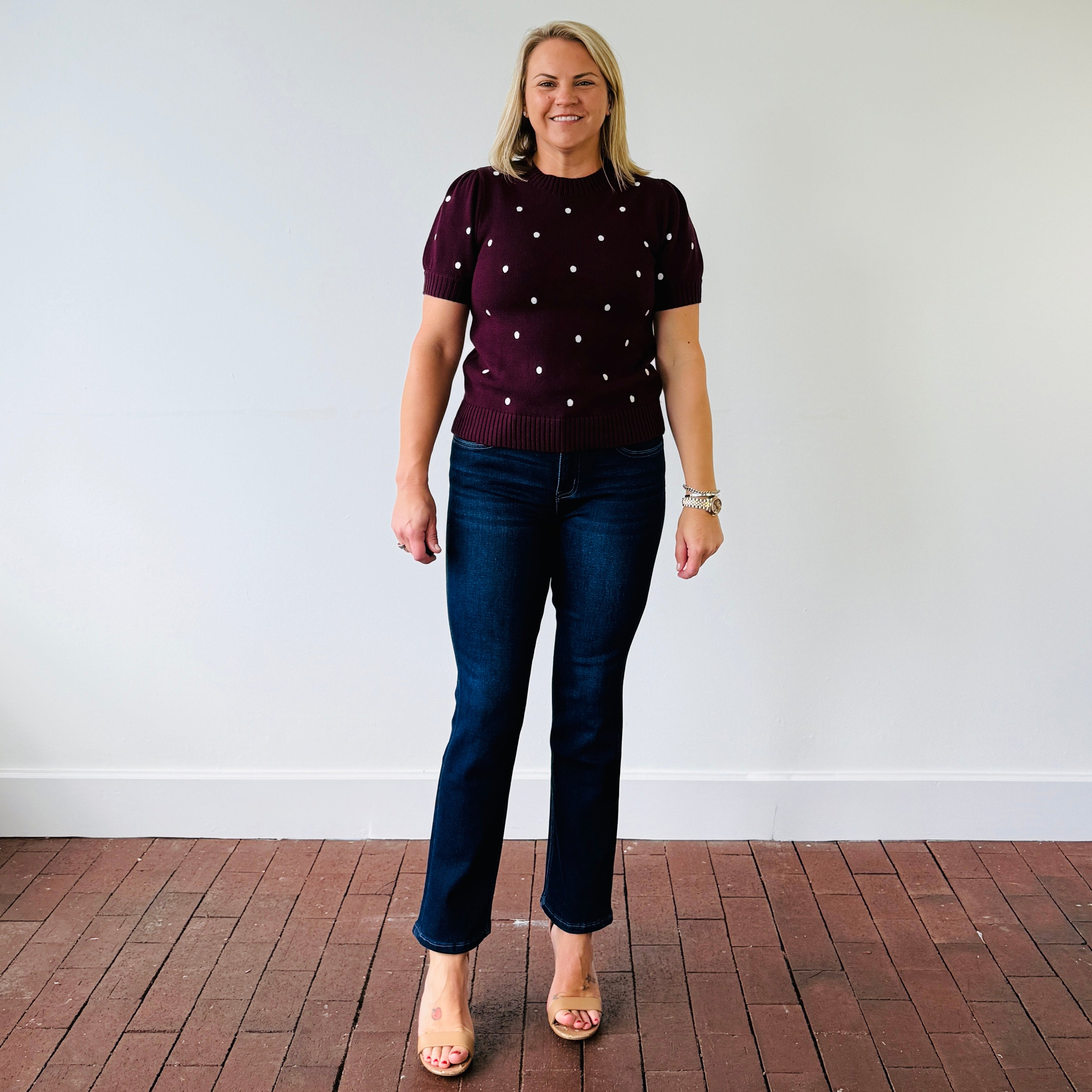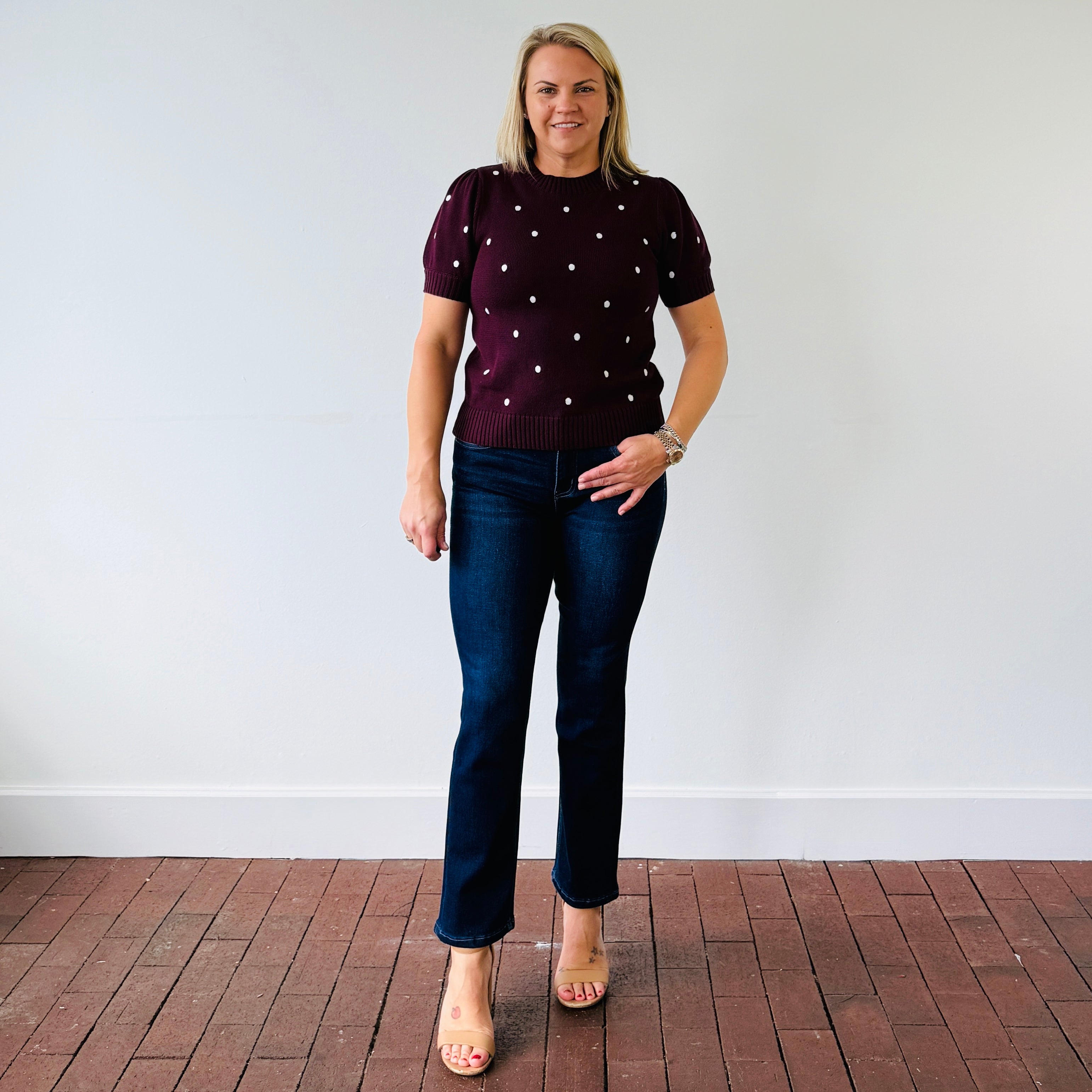 Playful yet polished. The Lily Sweater adds just the right touch of whimsy with a classic crewneck and all-over knit polka dots.