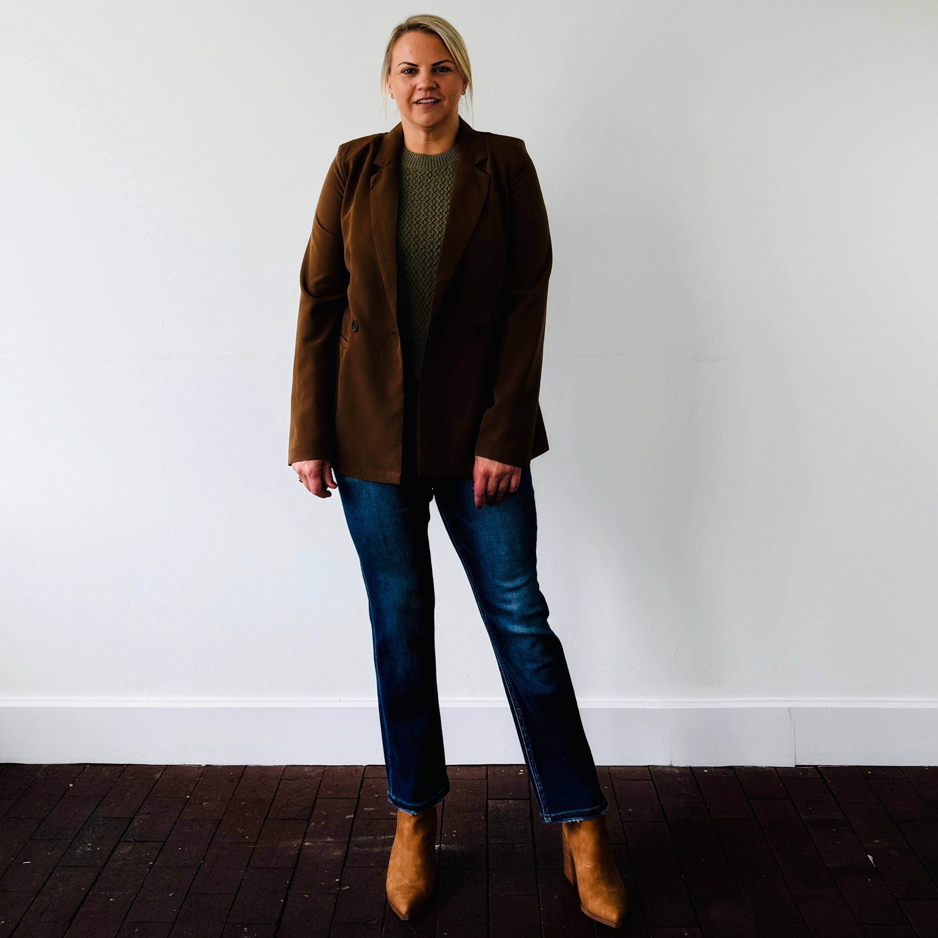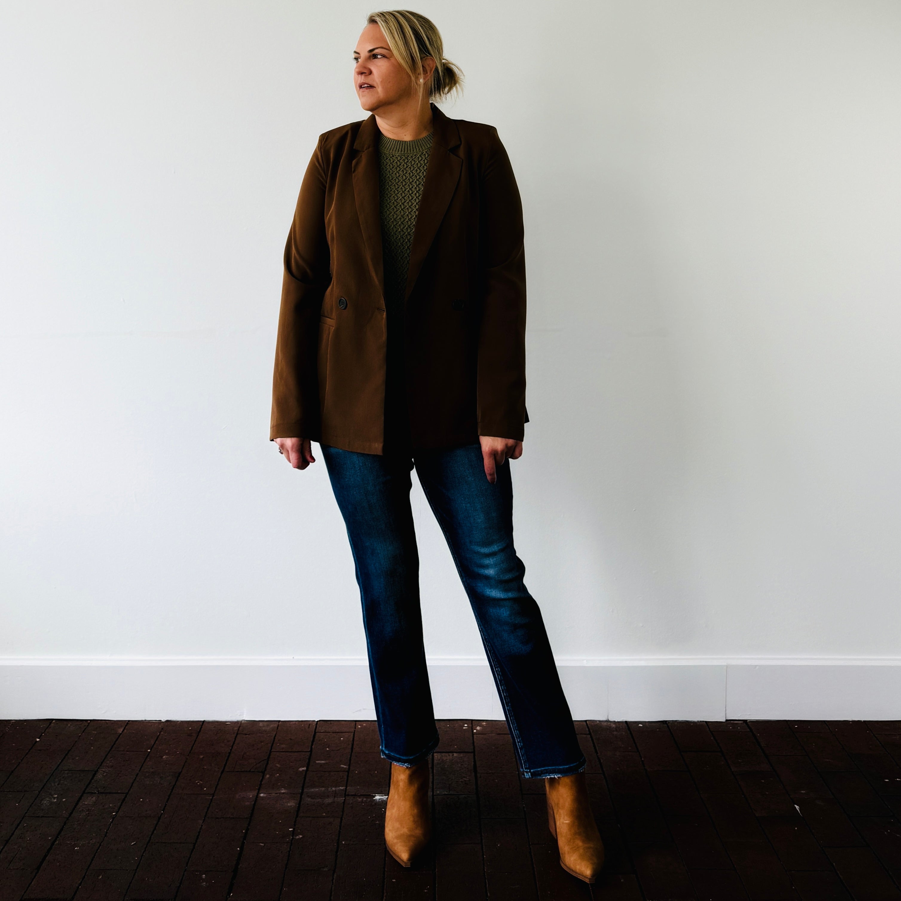 Classic with a modern edge, the London Double Breasted Blazer is your go-to layer for pulling any look together...whether you’re headed to a meeting or grabbing drinks after work. The rich, chocolate brown hue feels fresh for fall, while the clean tailoring and slightly relaxed fit keep it effortlessly cool. Toss it over denim, a midi dress, or even a graphic tee for instant polish.
