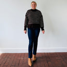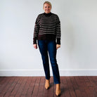 Elevated everyday vibes...The Mya Sweater is cozy with just enough edge, thanks to exposed seams and a rich, moody stripe palette.