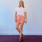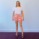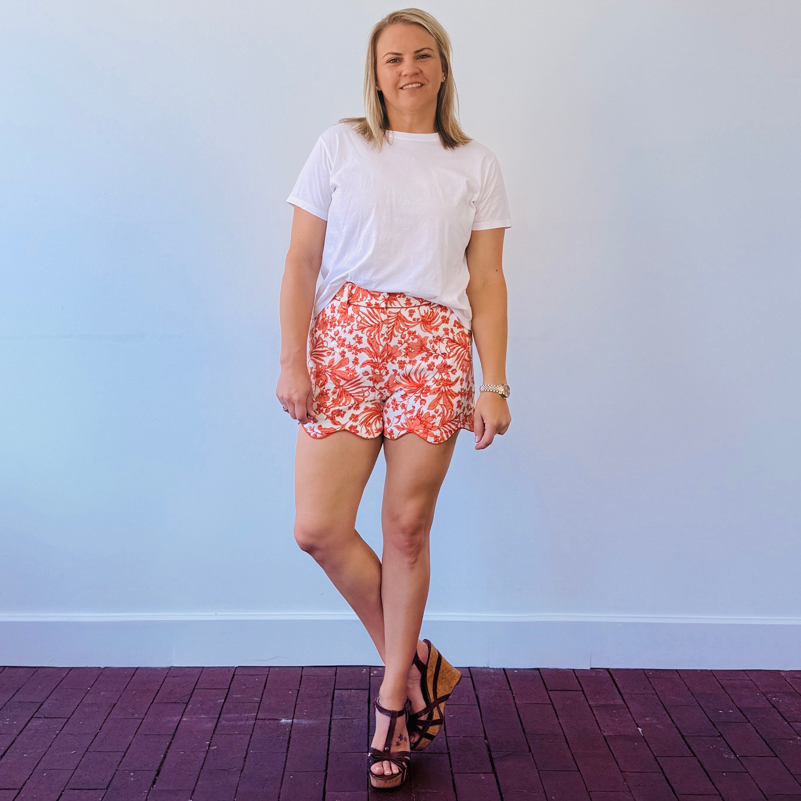High-waisted floral shorts with a scalloped hem and contrast piping. Structured fit with a feminine touch. Pairs with the Mila Top.