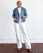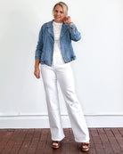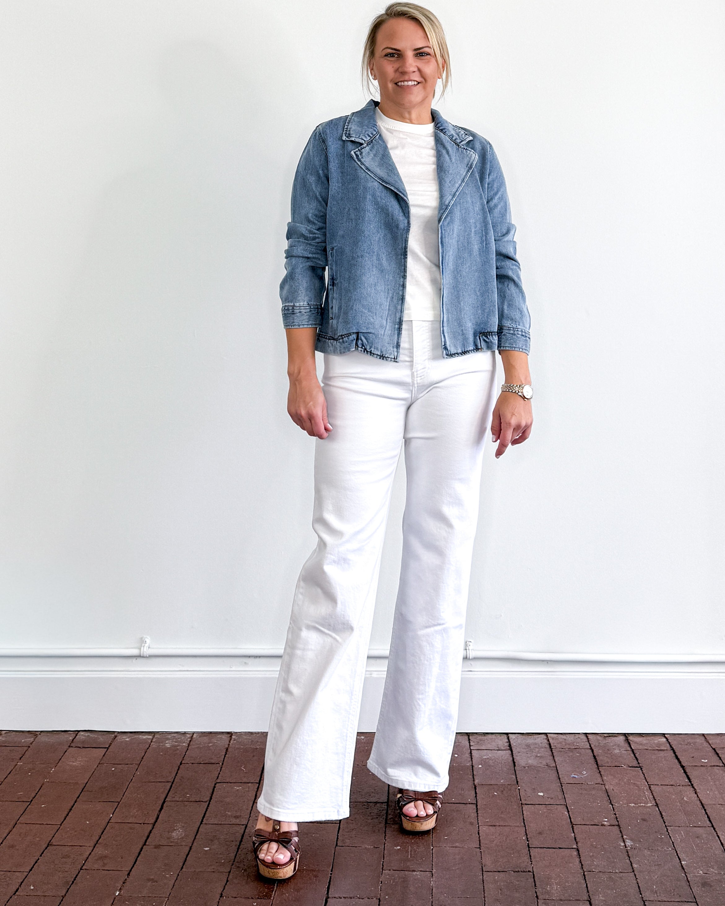 The Violet Jacket brings effortless sophistication to your wardrobe. This chambray blazer-style piece features a relaxed, open front and functional side pockets...perfect for layering or wearing solo. Crafted from 100% Lyocell, a breathable and sustainable fabric, it drapes beautifully while remaining easy to care for. Hand wash cold and lay flat to dry to maintain its quality and shape.