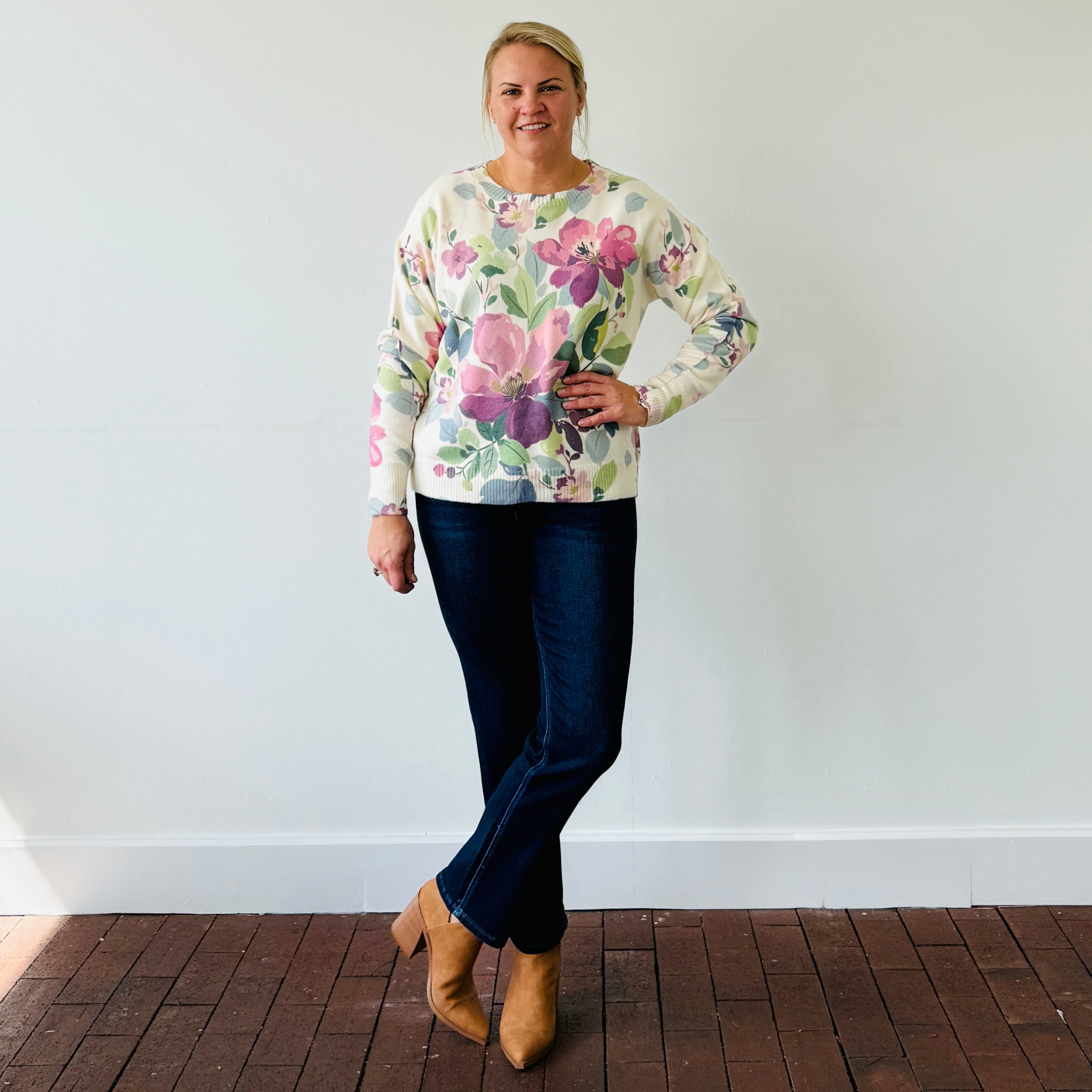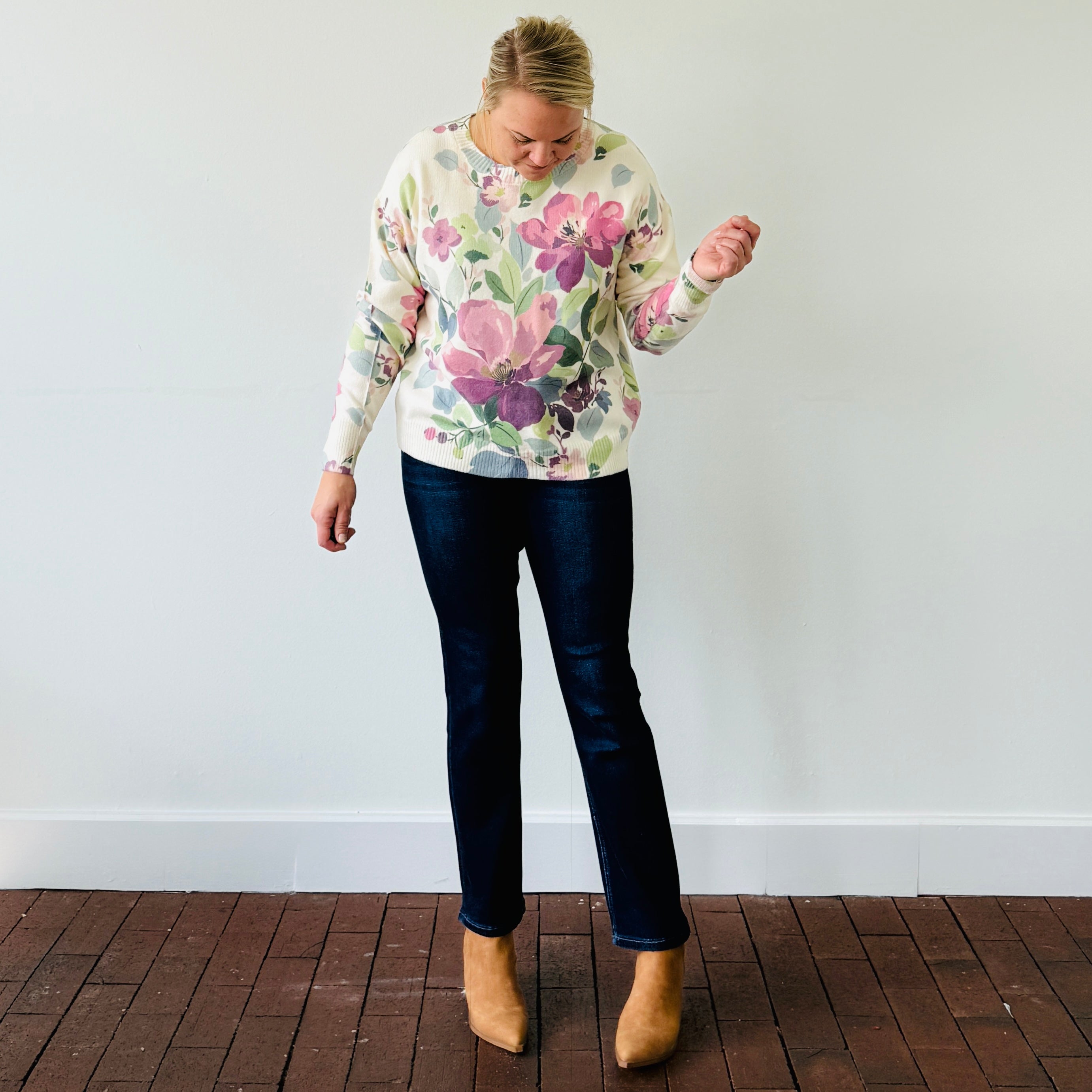 Say hello to florals that feel fresh, not fussy. The Vivian Floral Print Sweater brings cheerful vibes to chilly days with a watercolor-inspired print that’s equal parts soft and standout.