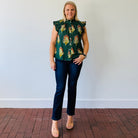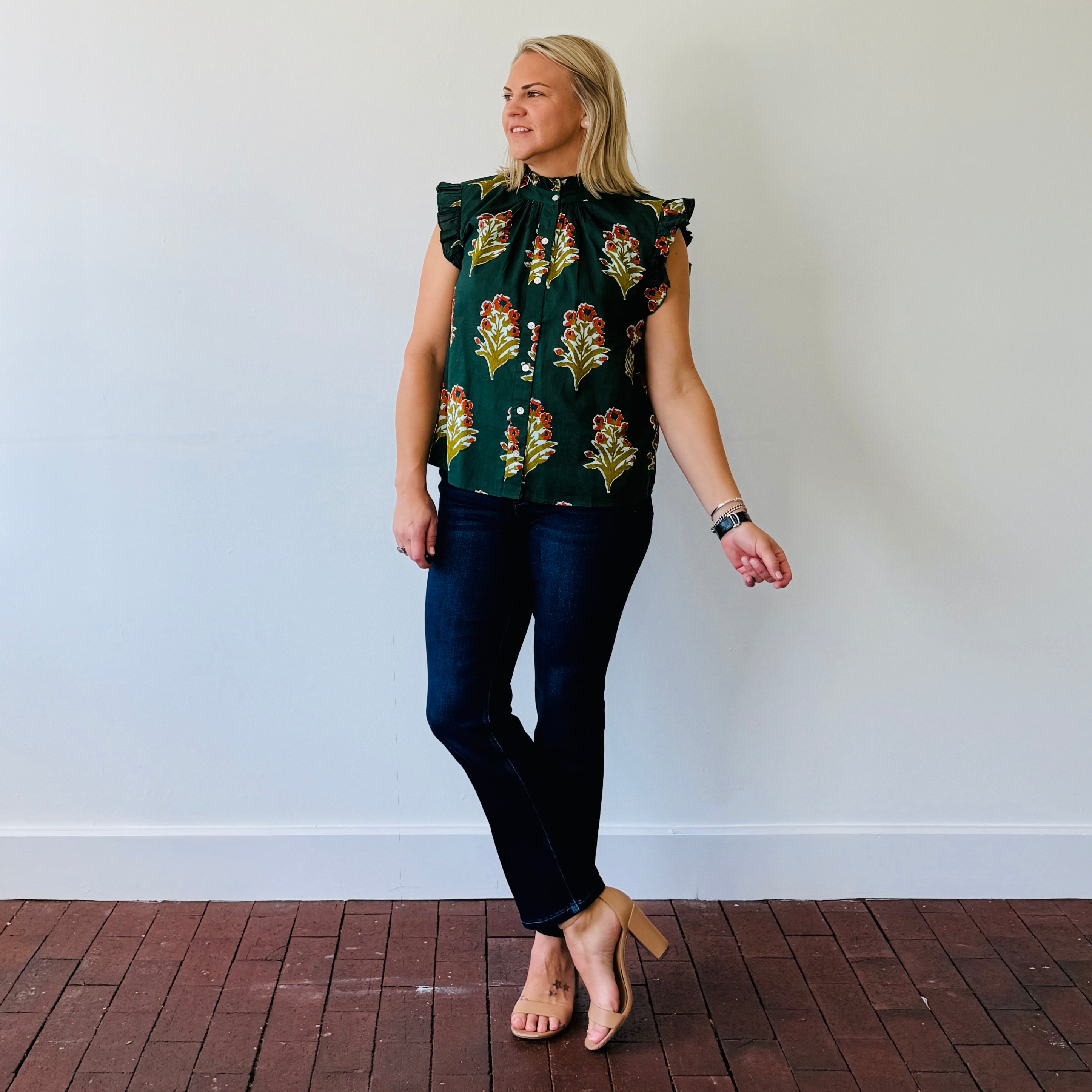 With its playful flutter sleeves, full button-down front, and rich botanical print, the Willow Top is a charming blend of structure and softness. Made from breathable 100% cotton, it's designed for all-day comfort with a dash of statement style. Perfect for everything from farmer’s market mornings to casual date nights.