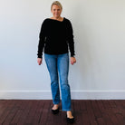 A twist on the classic black sweater, the Emery delivers just the right amount of edge with its asymmetric neckline and sleek silhouette.