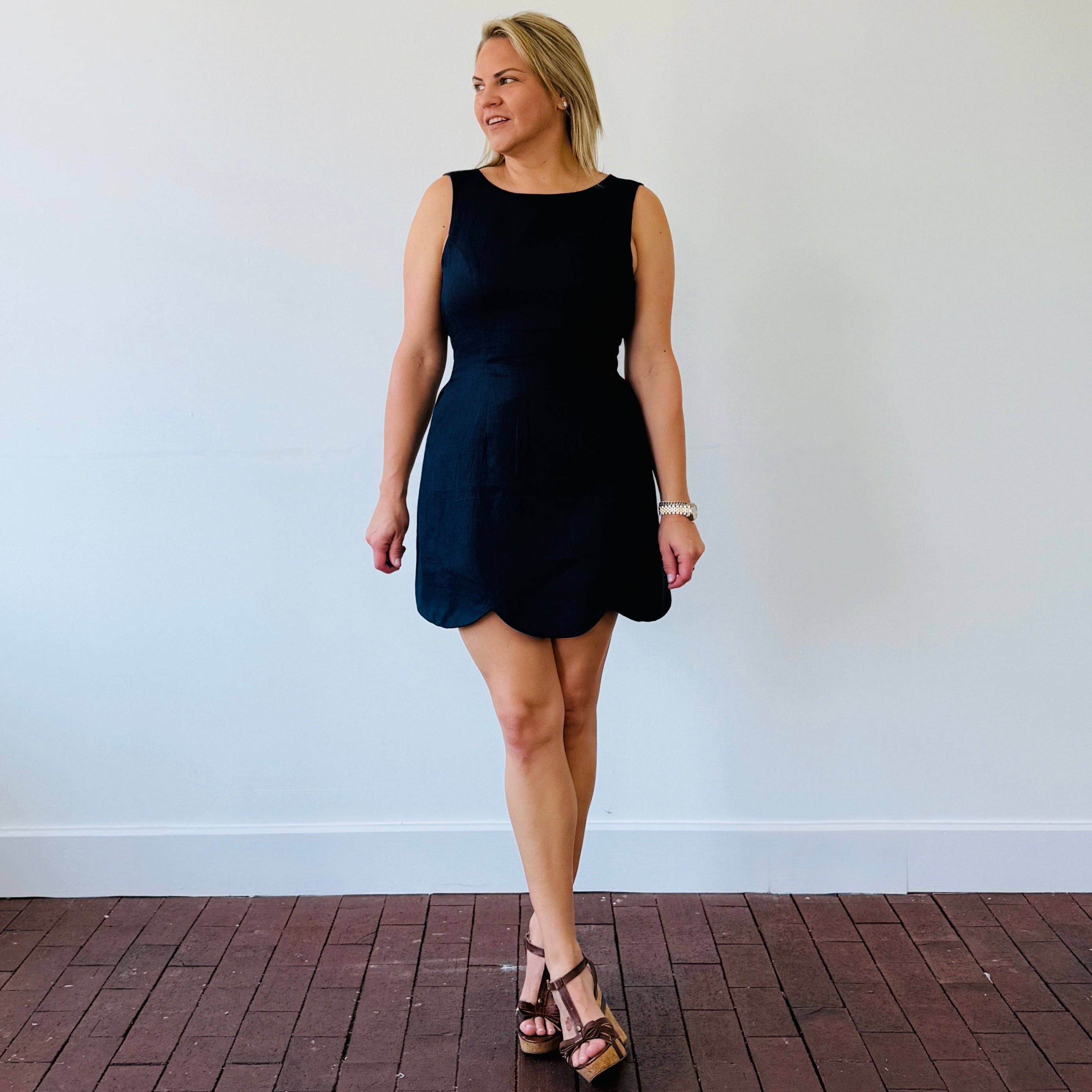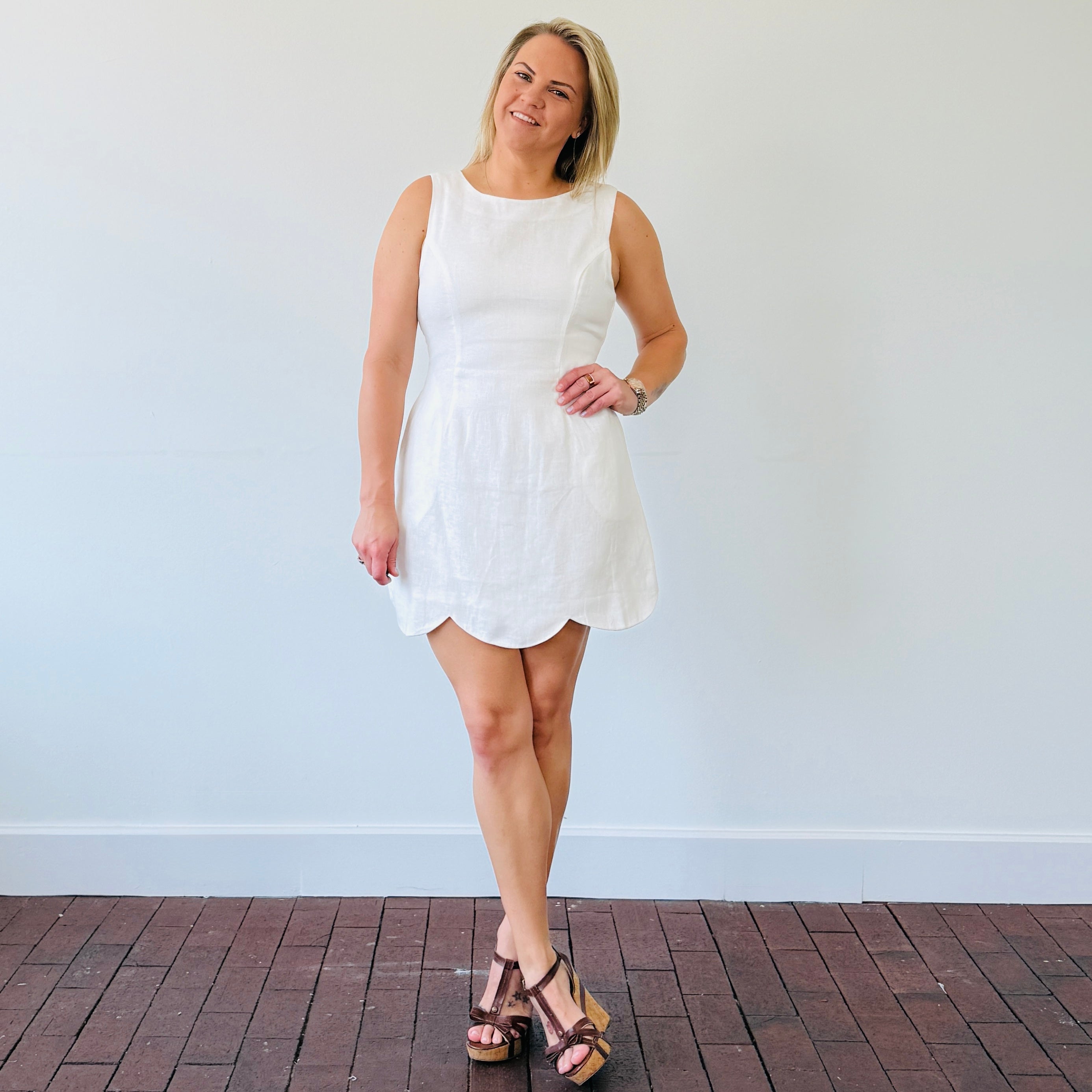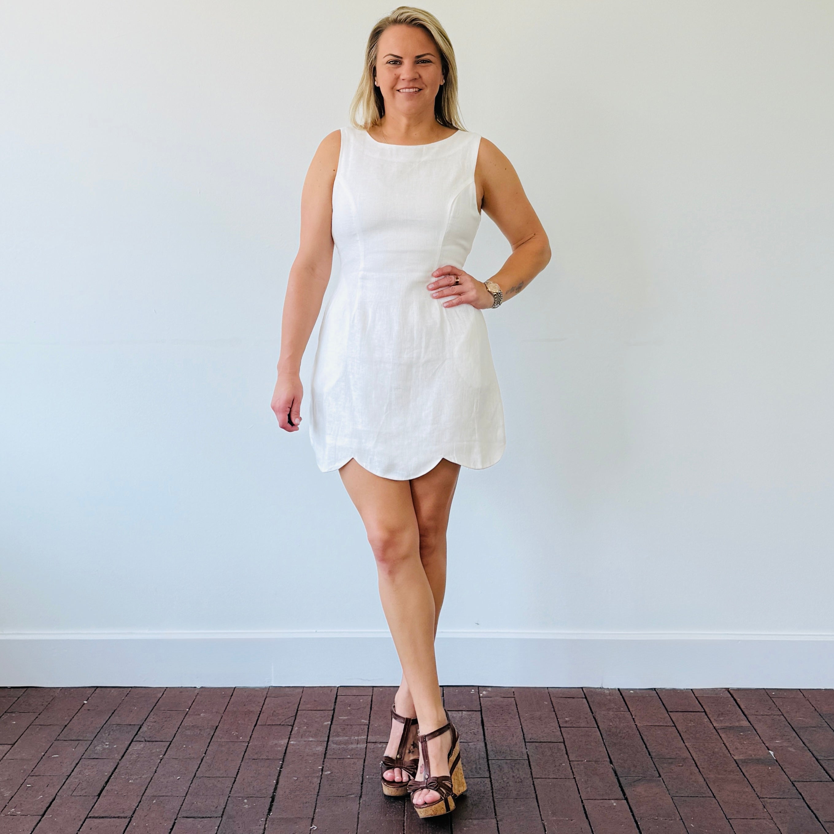The Eva Scalloped Hem Dress is a classic wardrobe staple designed for effortless sophistication. Crafted from 100% linen, this breathable and lightweight dress keeps you cool while offering a polished look.