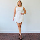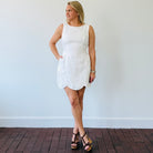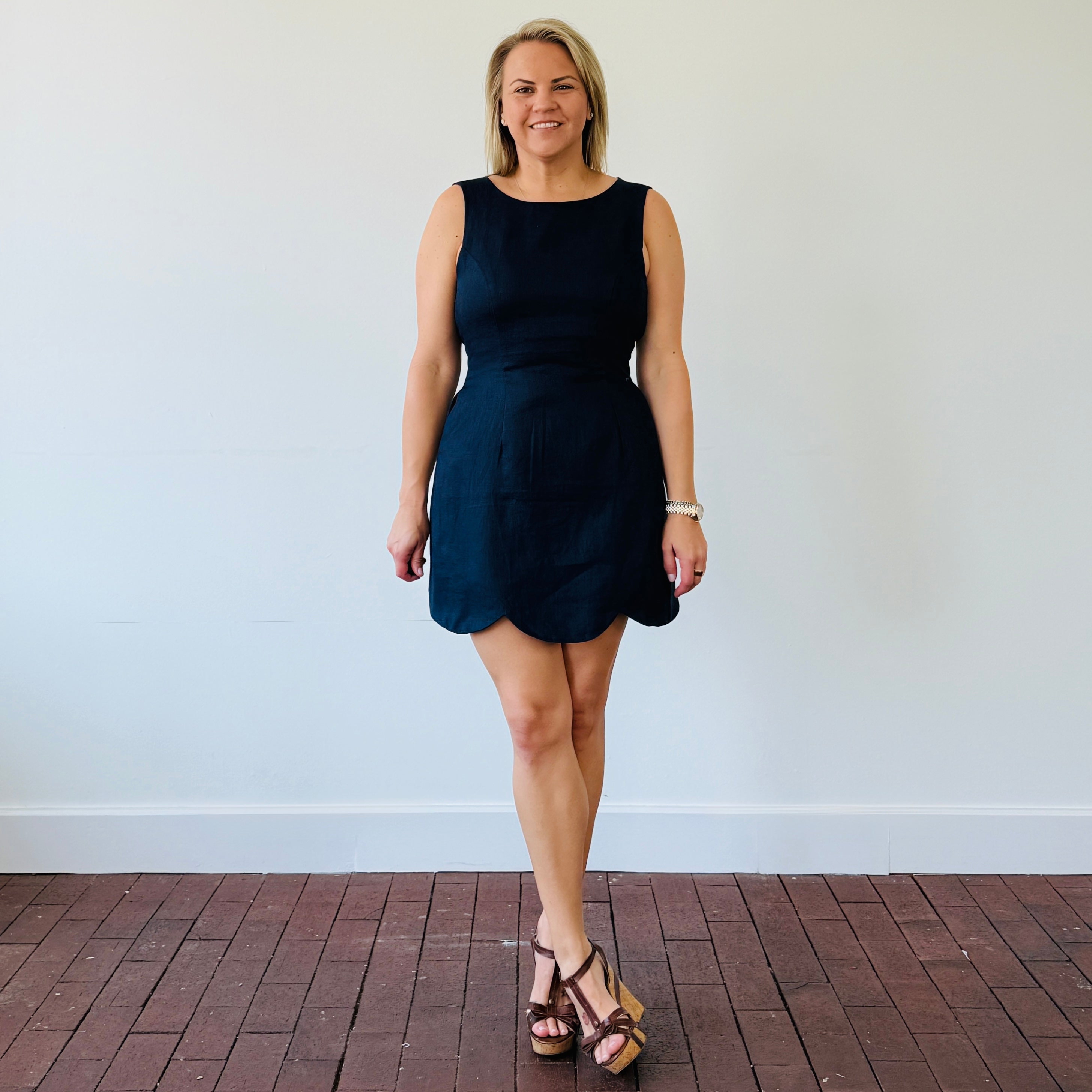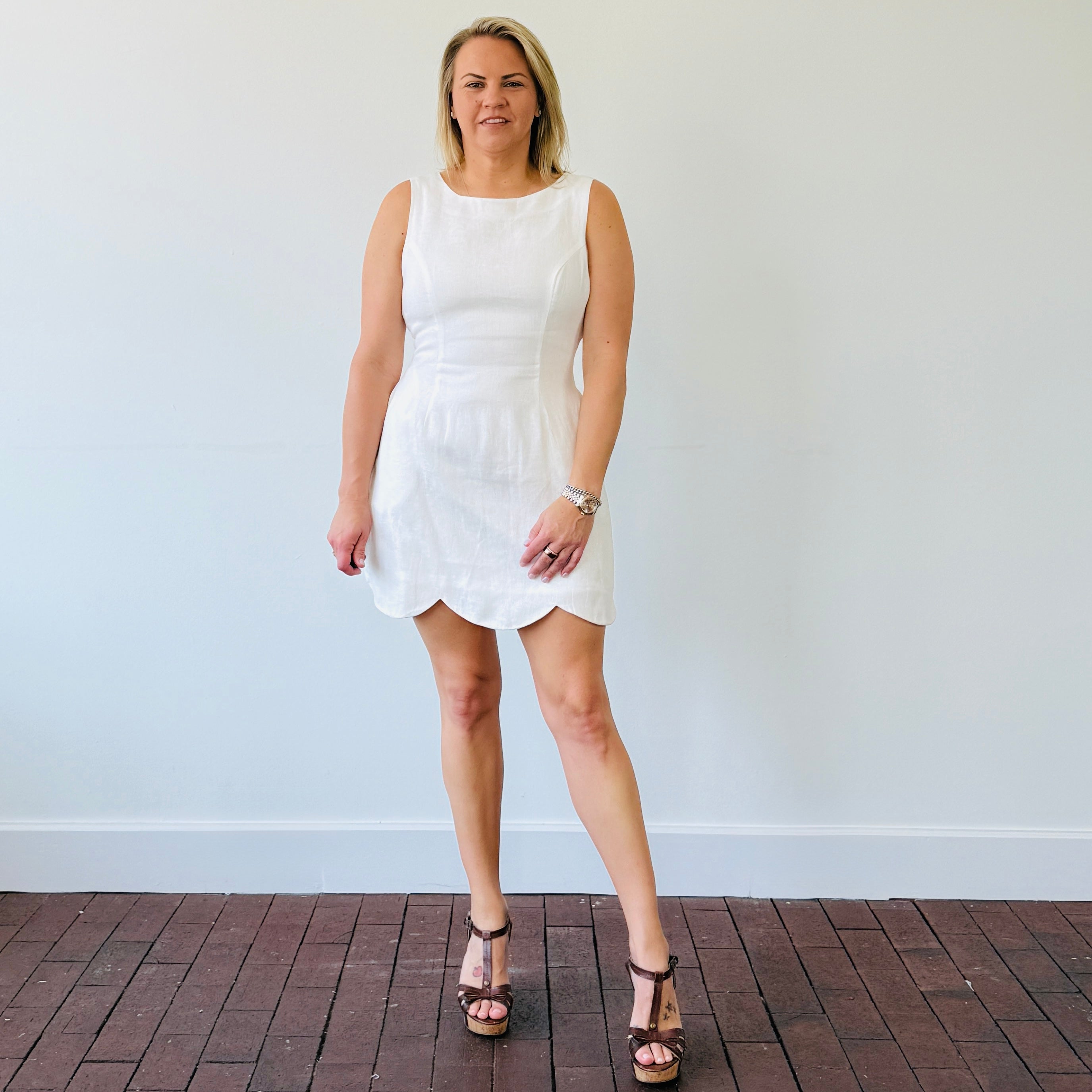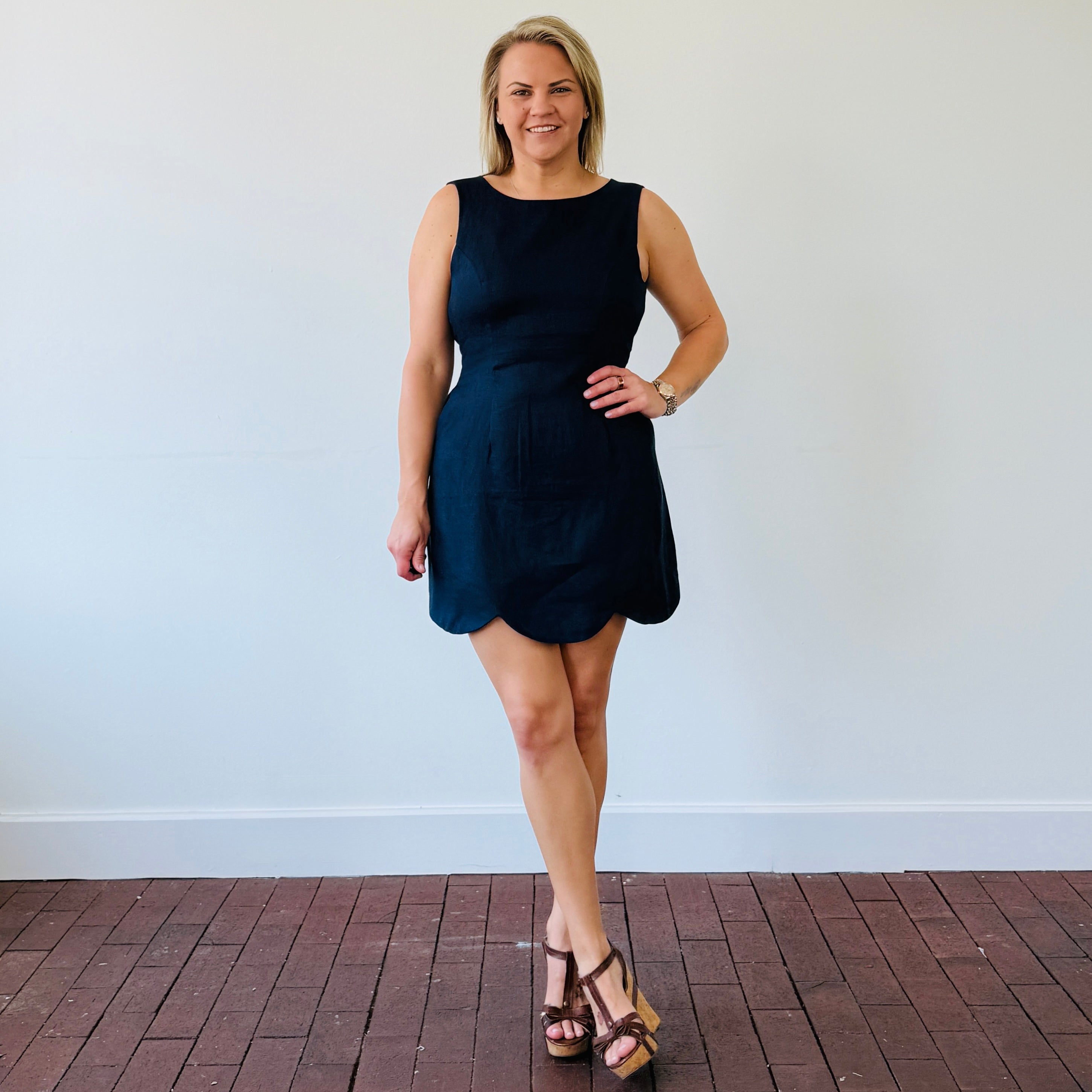 The Eva Scalloped Hem Dress is a classic wardrobe staple designed for effortless sophistication. Crafted from 100% linen, this breathable and lightweight dress keeps you cool while offering a polished look.