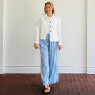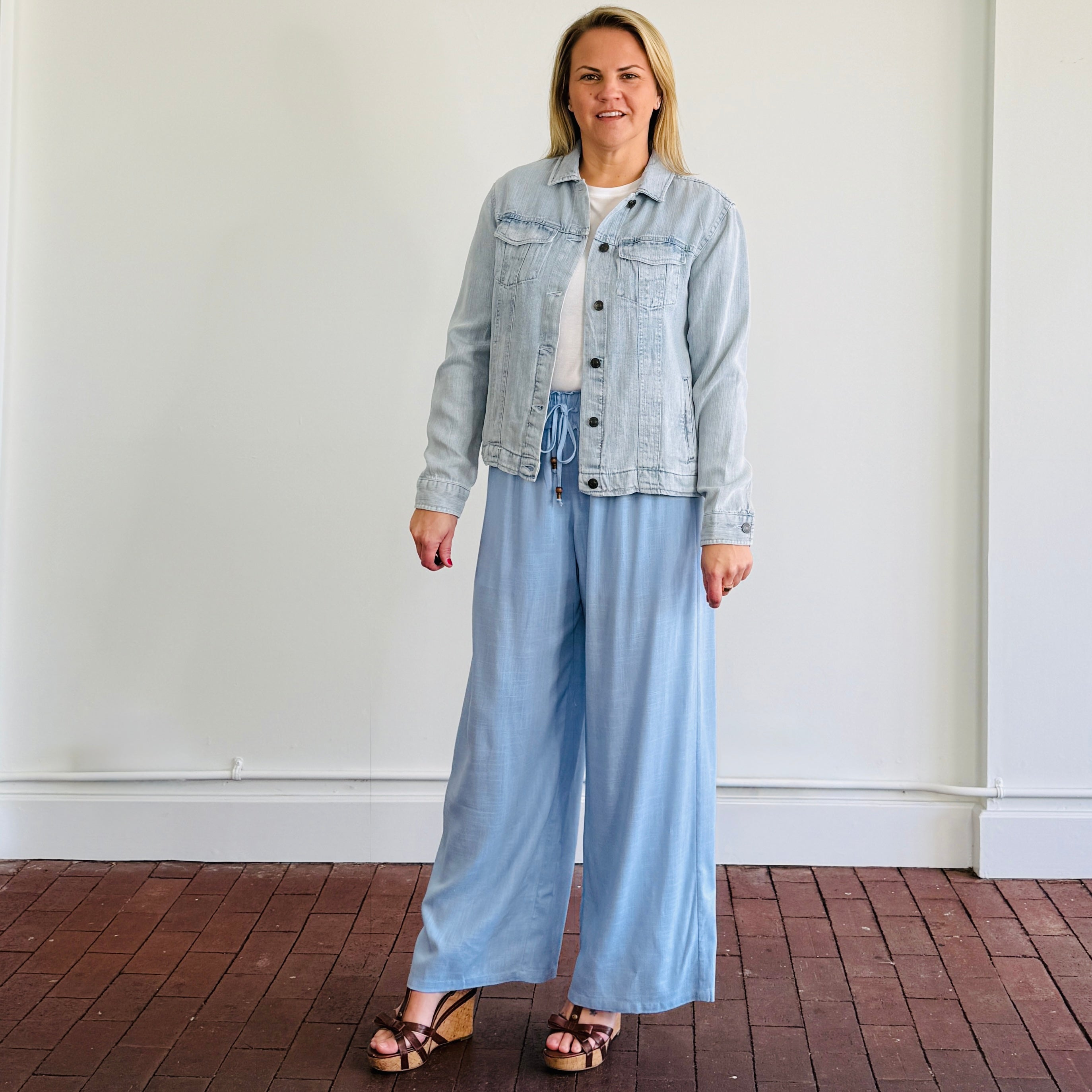 The Jackie Chambray Jacket is the perfect lightweight layer for effortless style. Made from super lightweight chambray, this jacket combines casual charm with practicality. Featuring a classic metal button closure and versatile flap bust pockets with two functioning side pockets, it’s a timeless piece that works with any outfit.