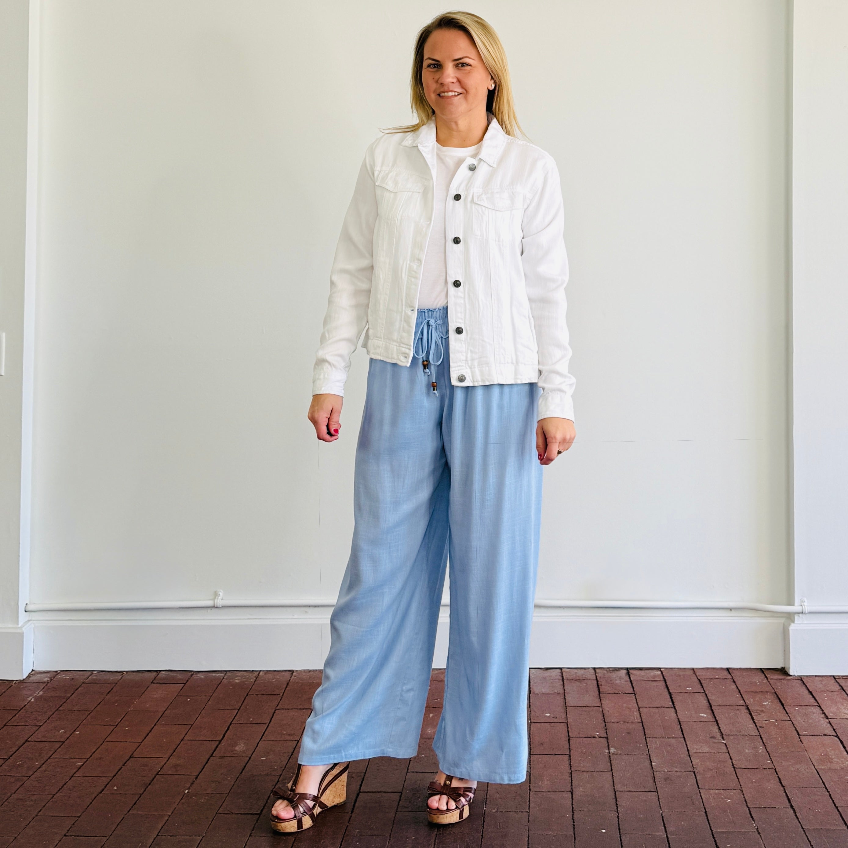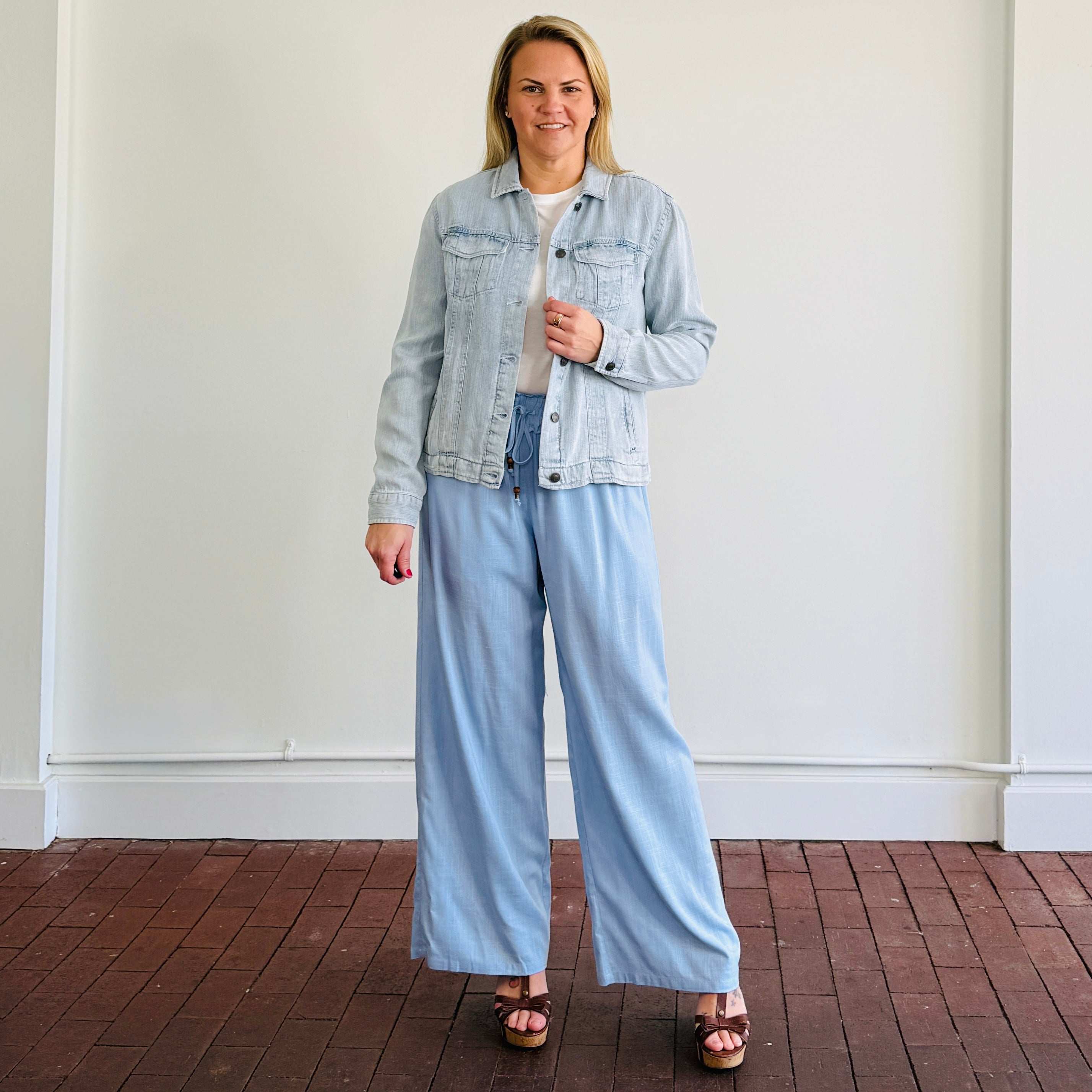 Ideal for pairing with dresses, jeans, or shorts, the Jackie Chambray Jacket is your go-to for stylish layering all year long.