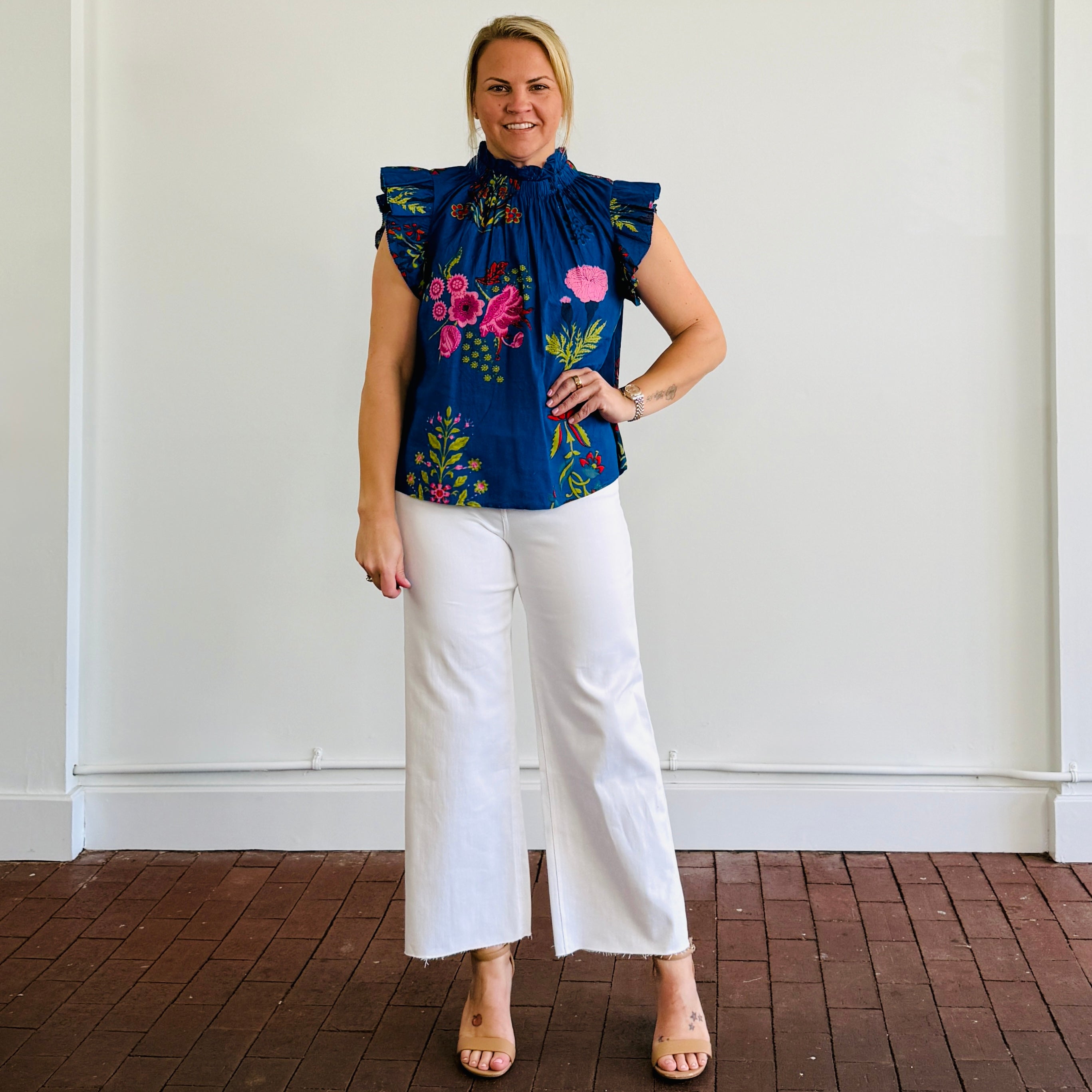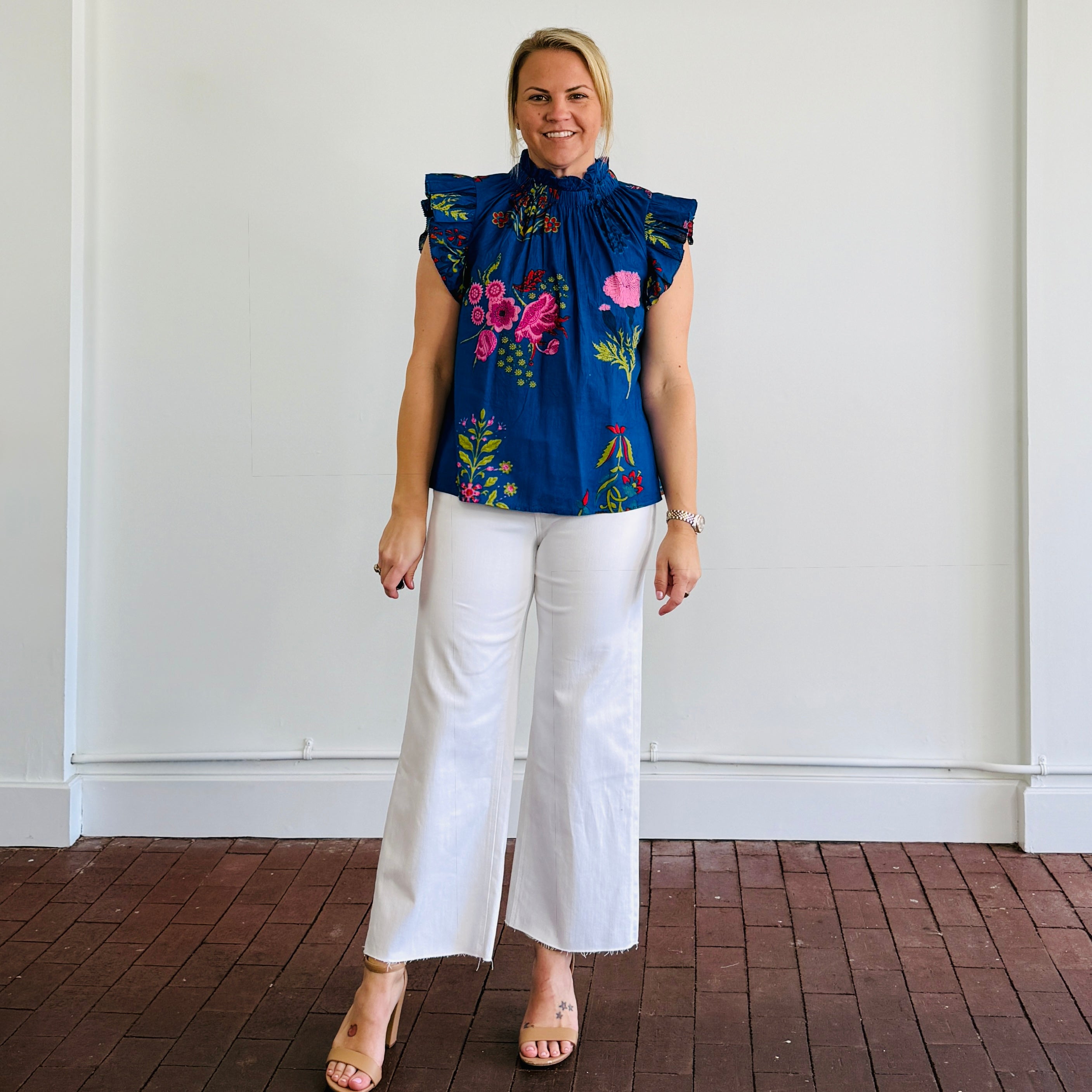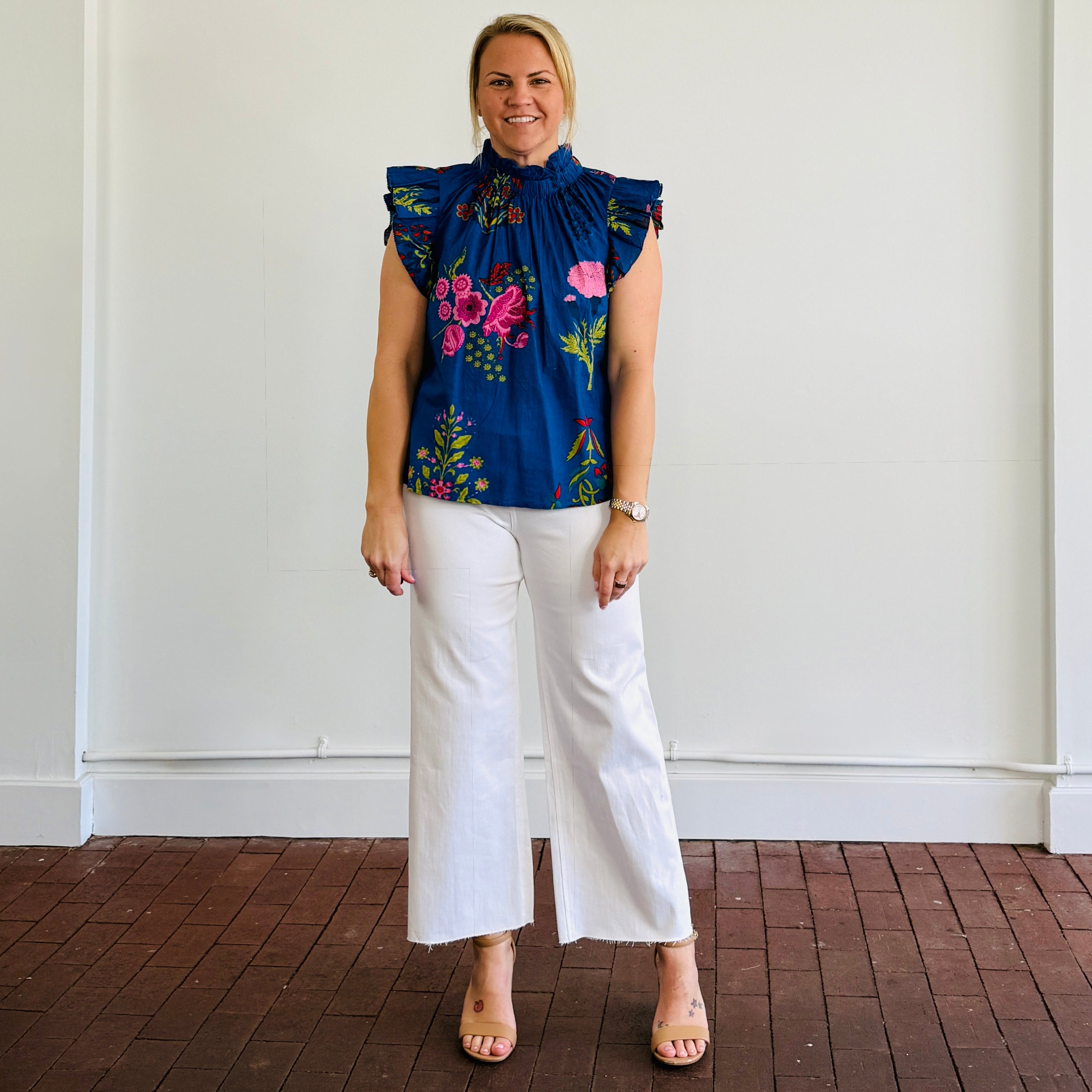 The Rylee Top from THML is the statement piece your spring wardrobe needs! Featuring a high pleated neckline and pleated ruffle sleeves, this bold printed blouse blends effortless style with everyday versatility. Crafted from a lightweight fabric, the Rylee Top is perfect for staying cool while looking polished. Whether you're heading to brunch, the office, or a night out, this top easily dresses up or down — just pair it with your favorite white denim or tailored shorts for a chic Florida look.