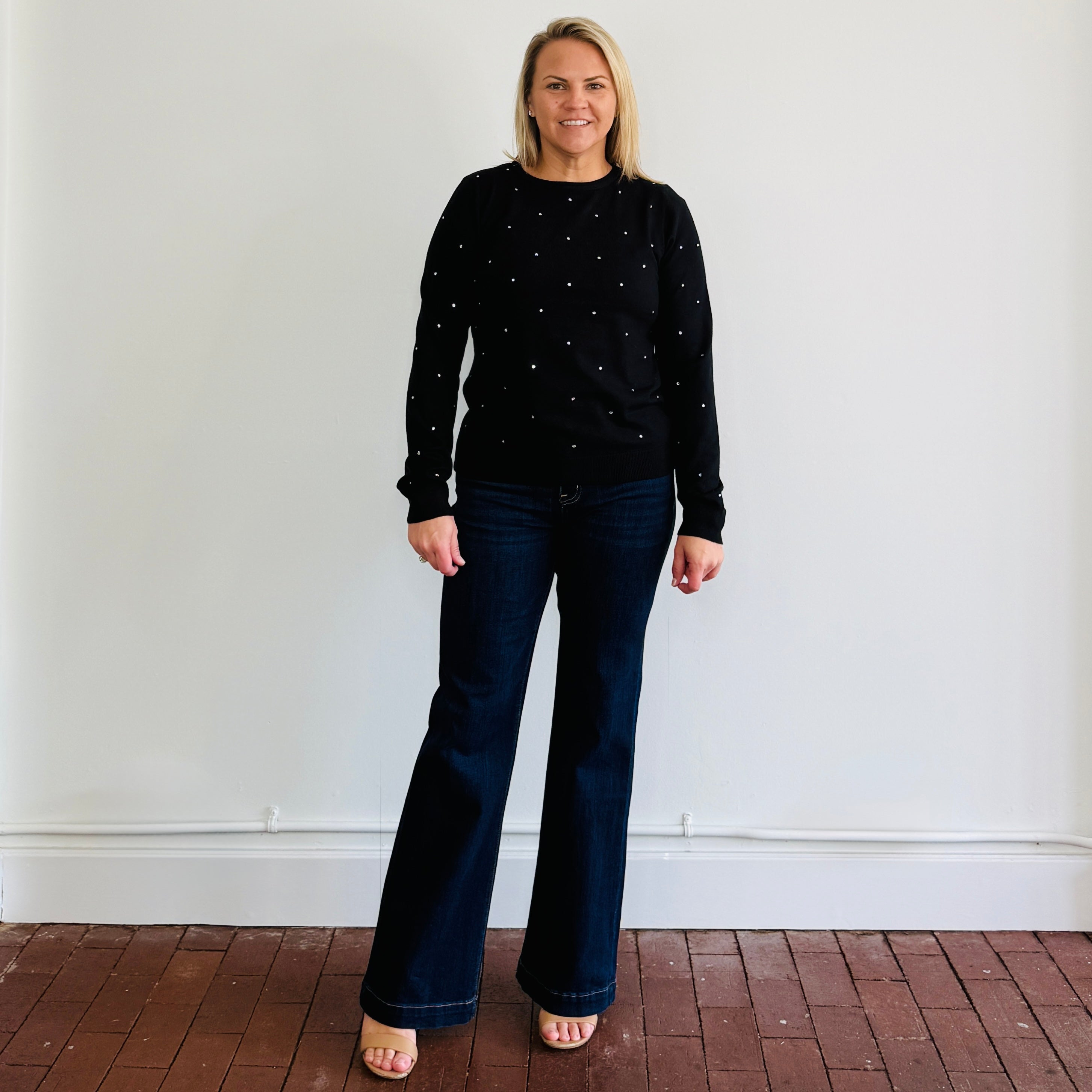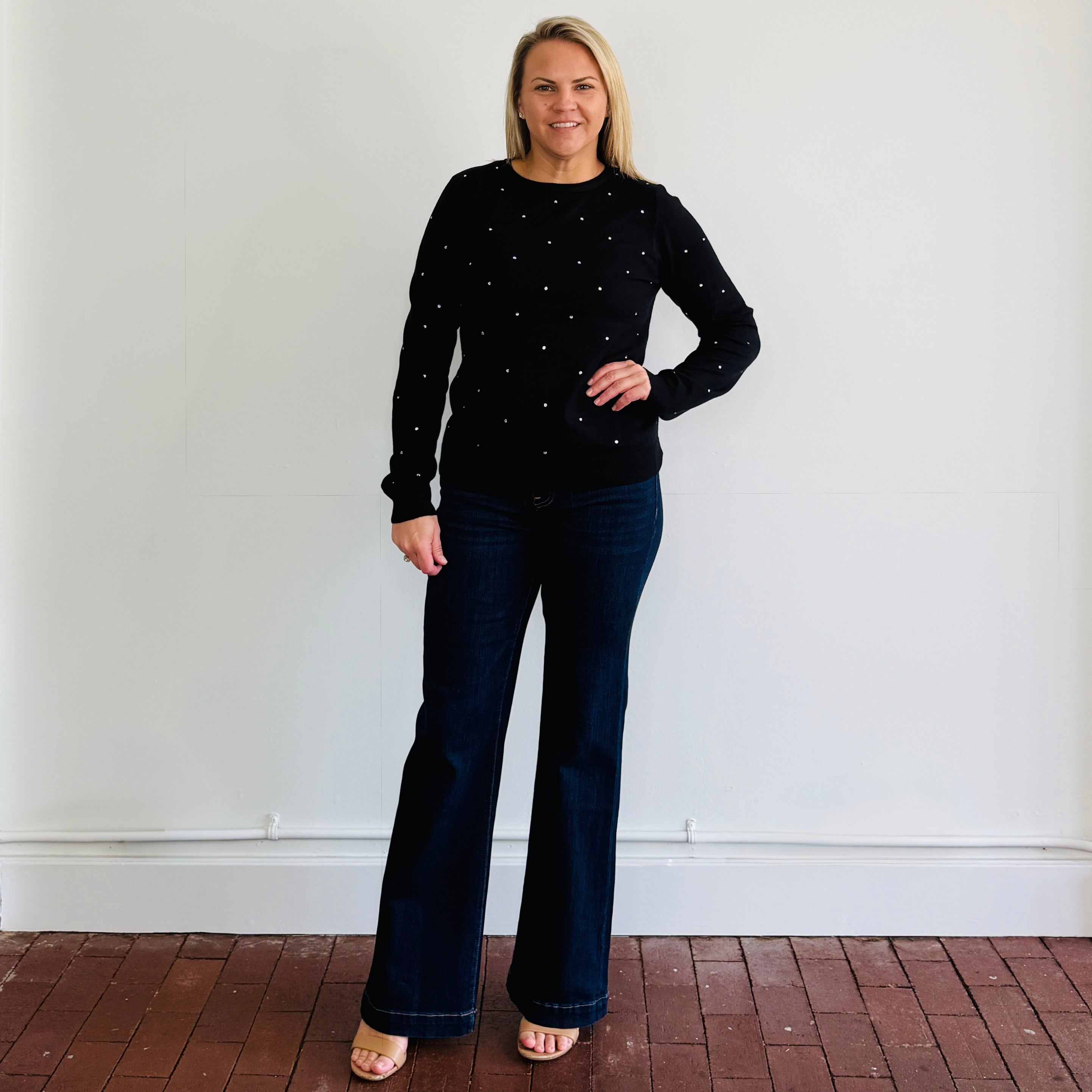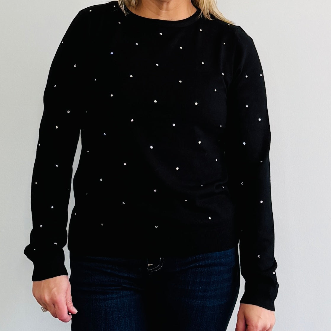 All over rhinestone embellished long sleeve crew neck sweatshirt.