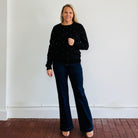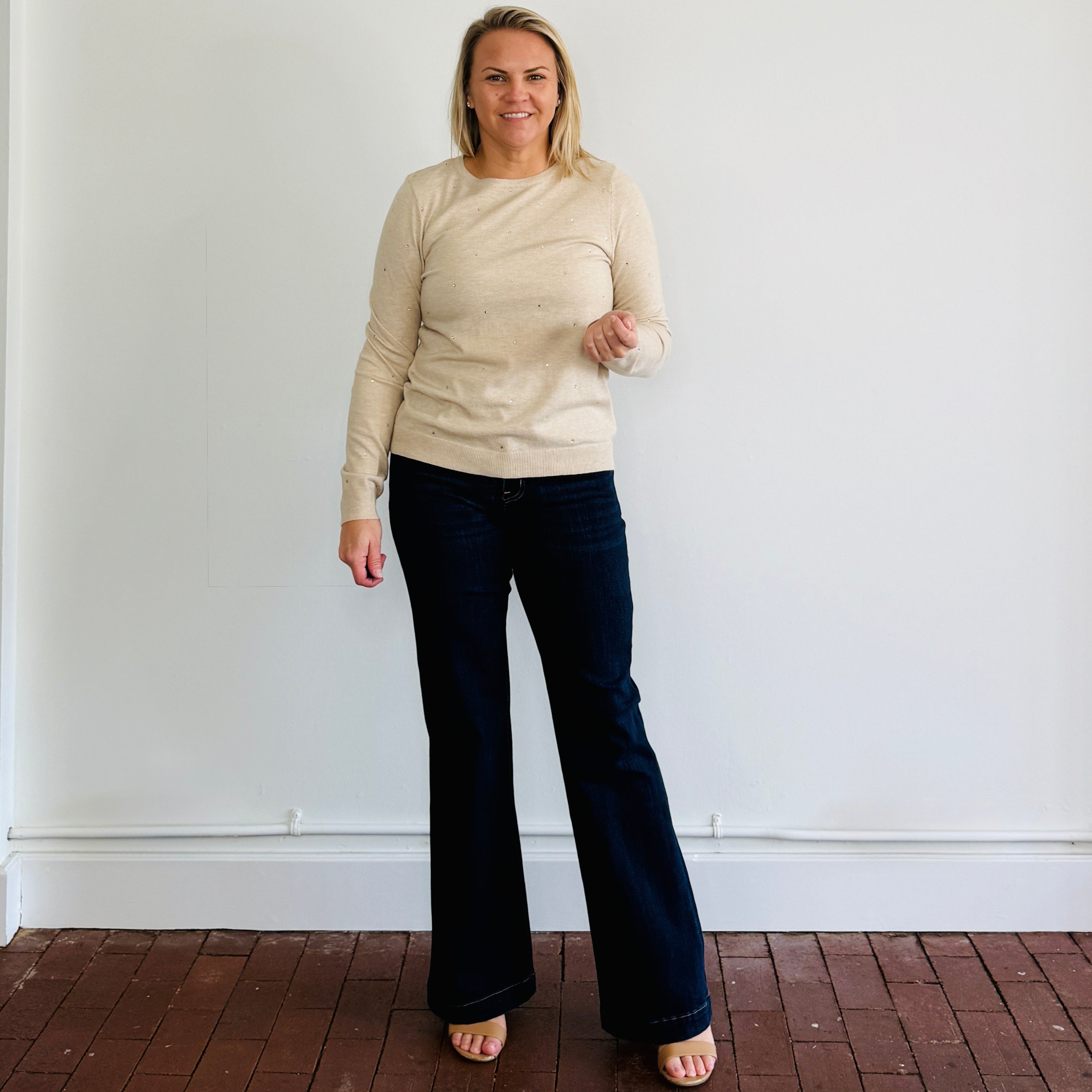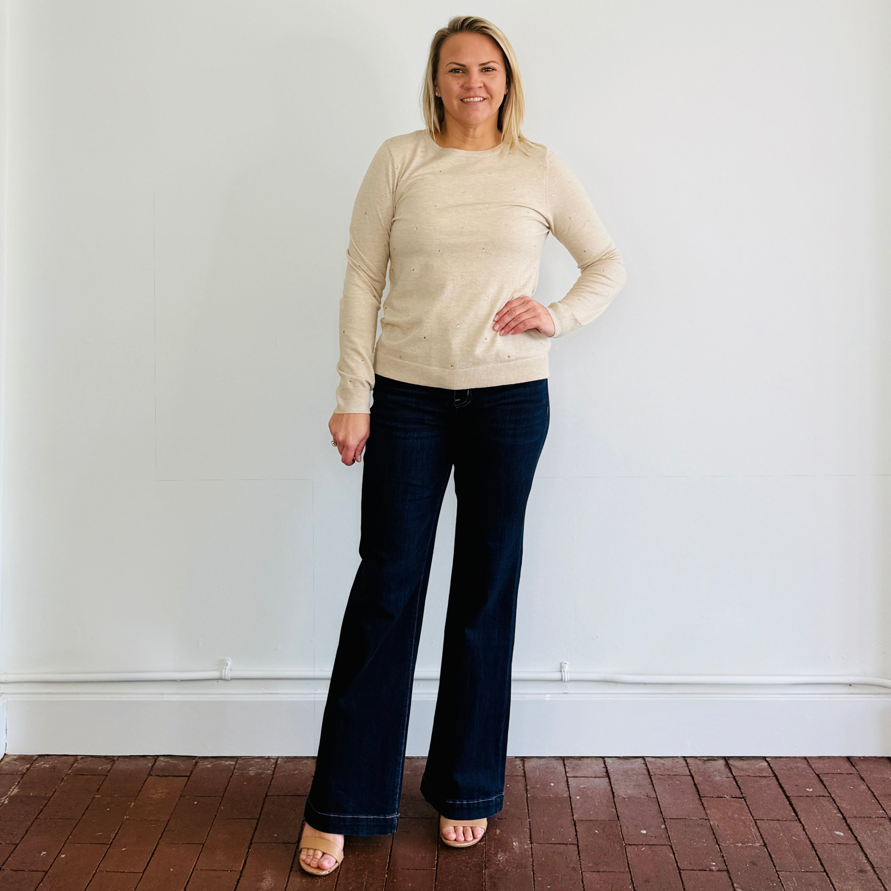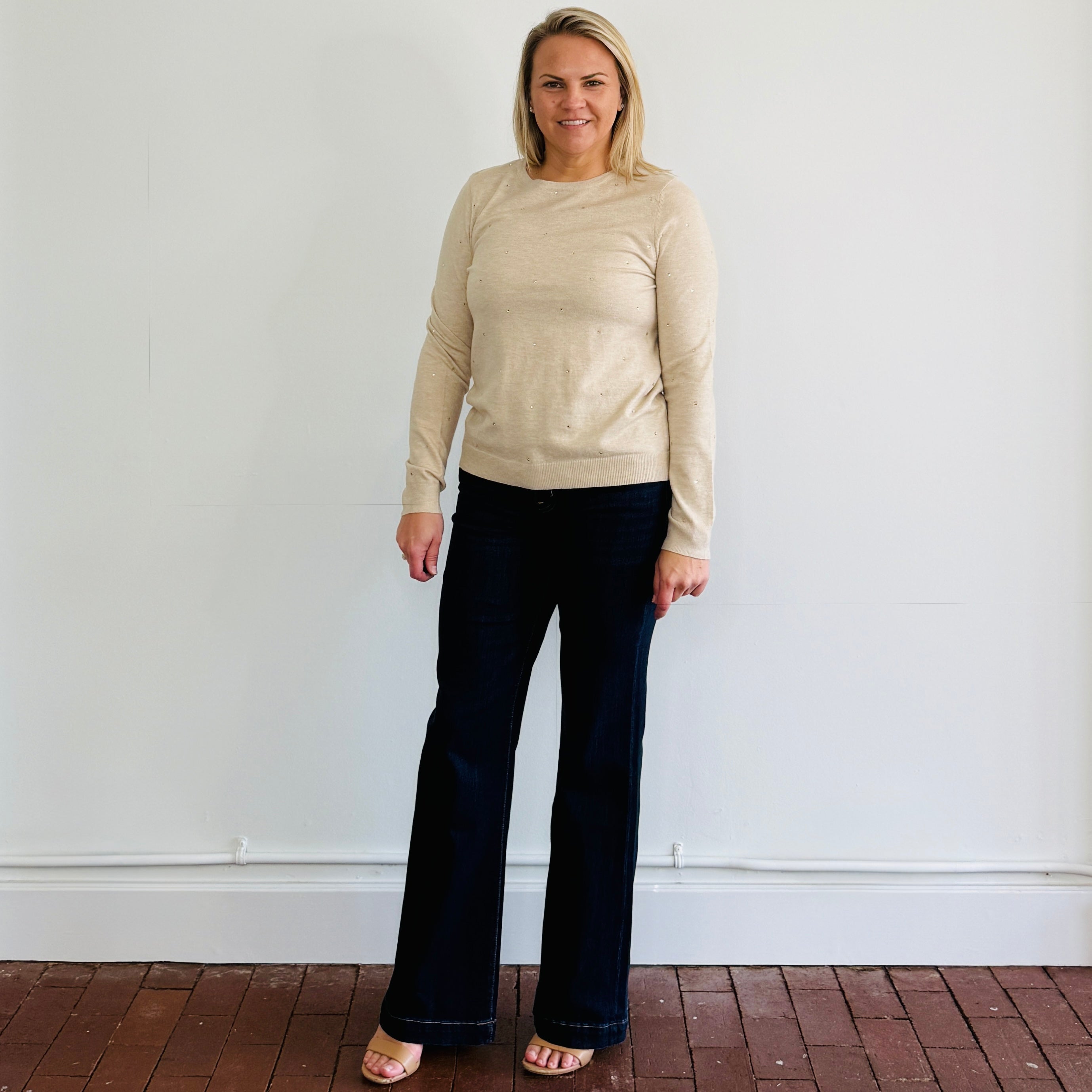 All over rhinestone embellished long sleeve crew neck sweatshirt.