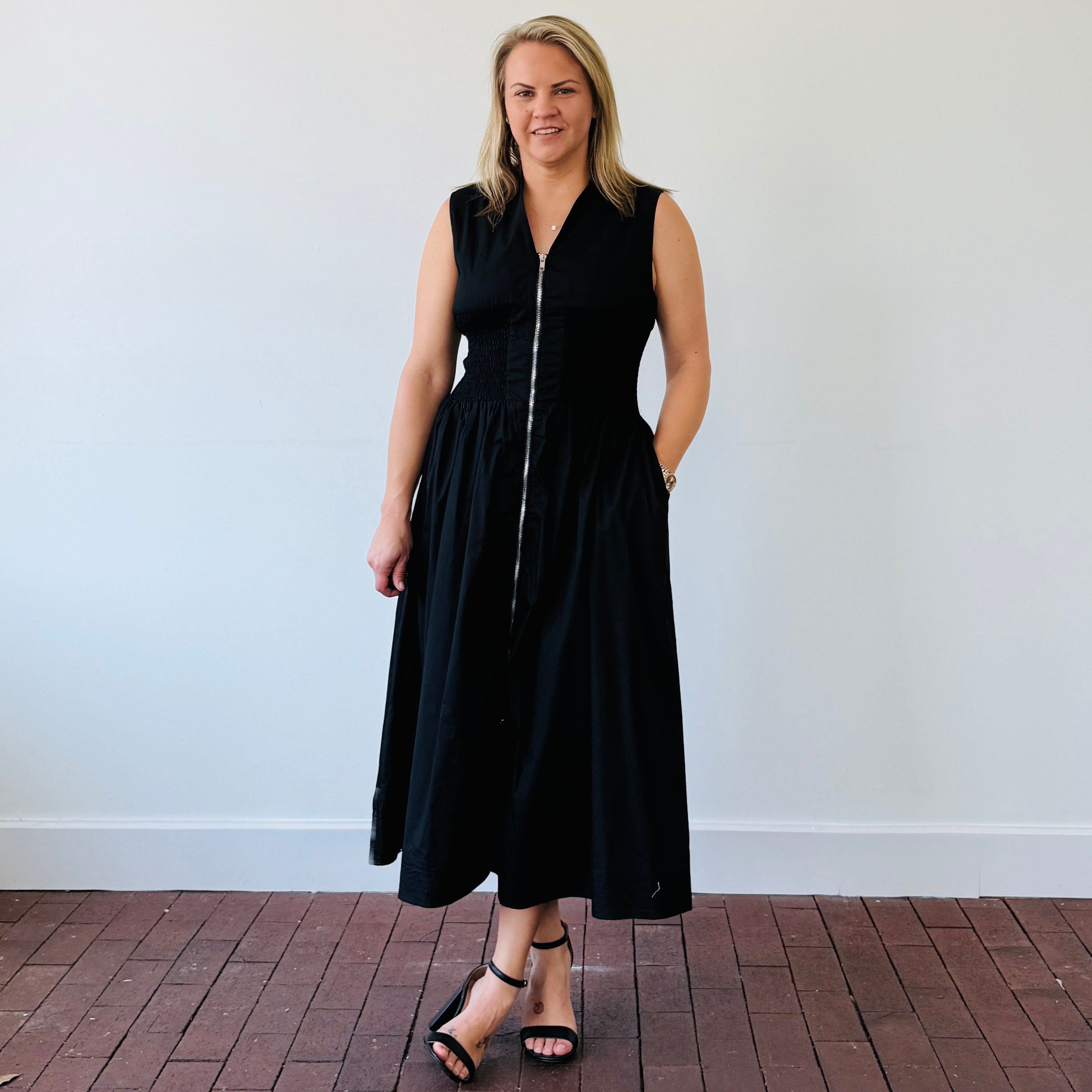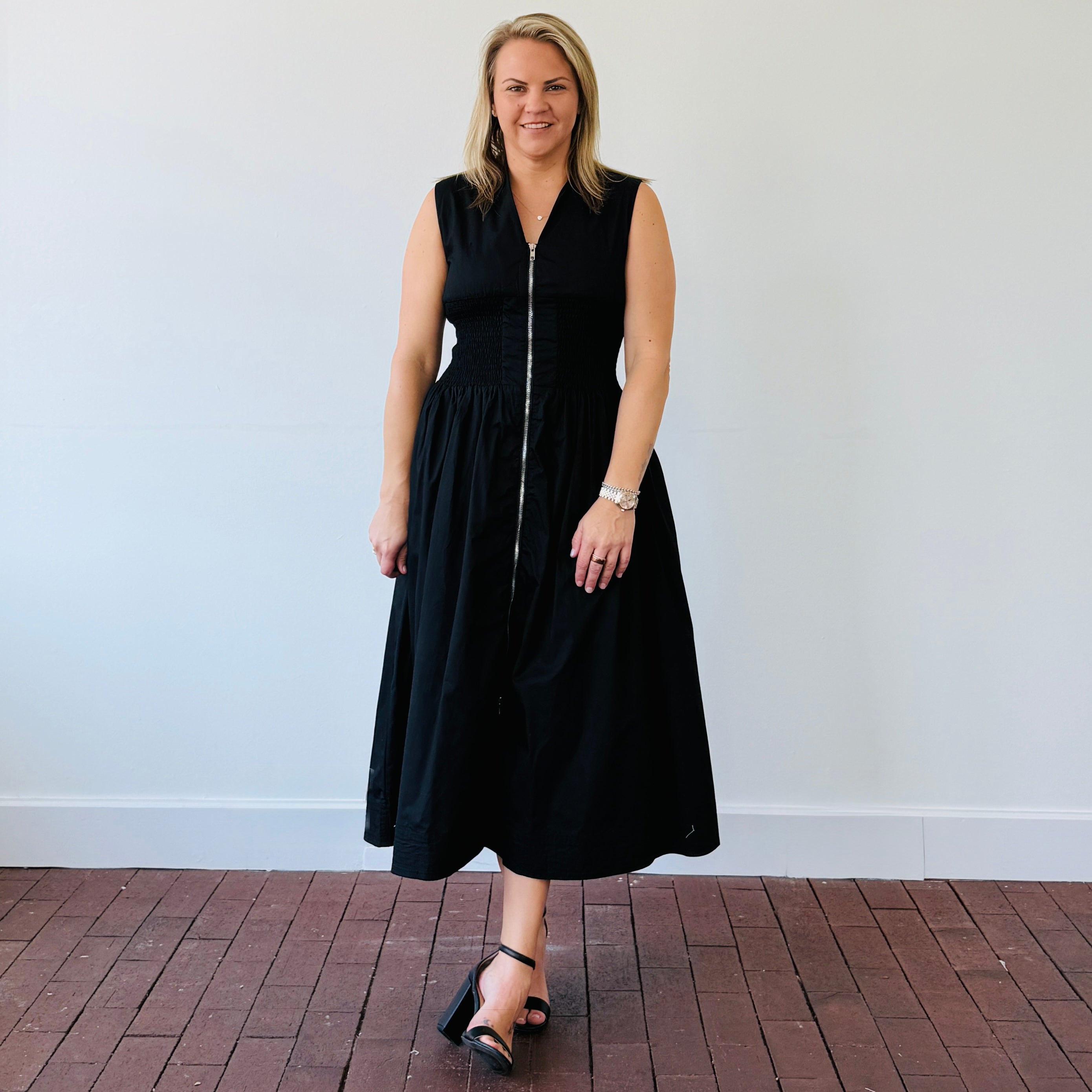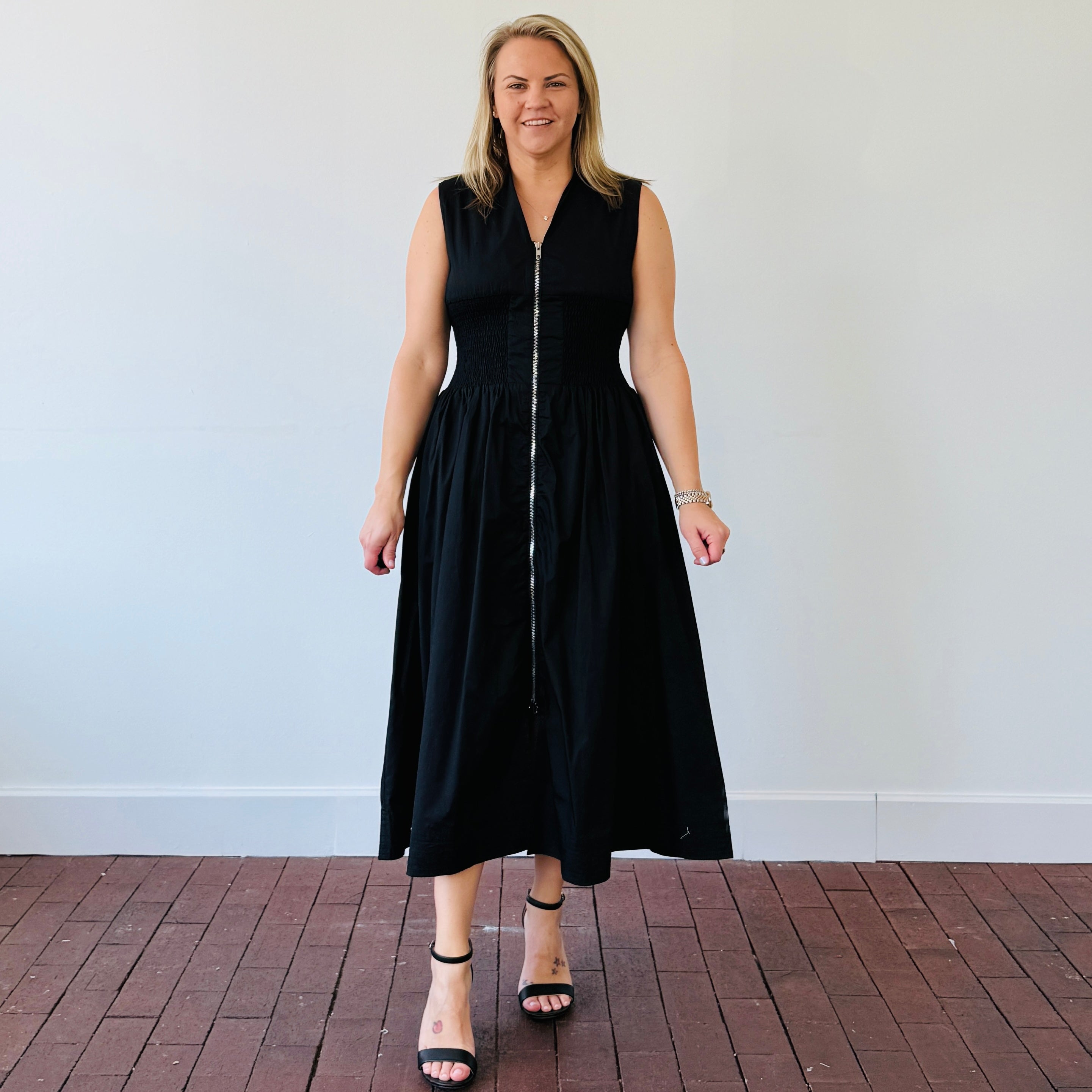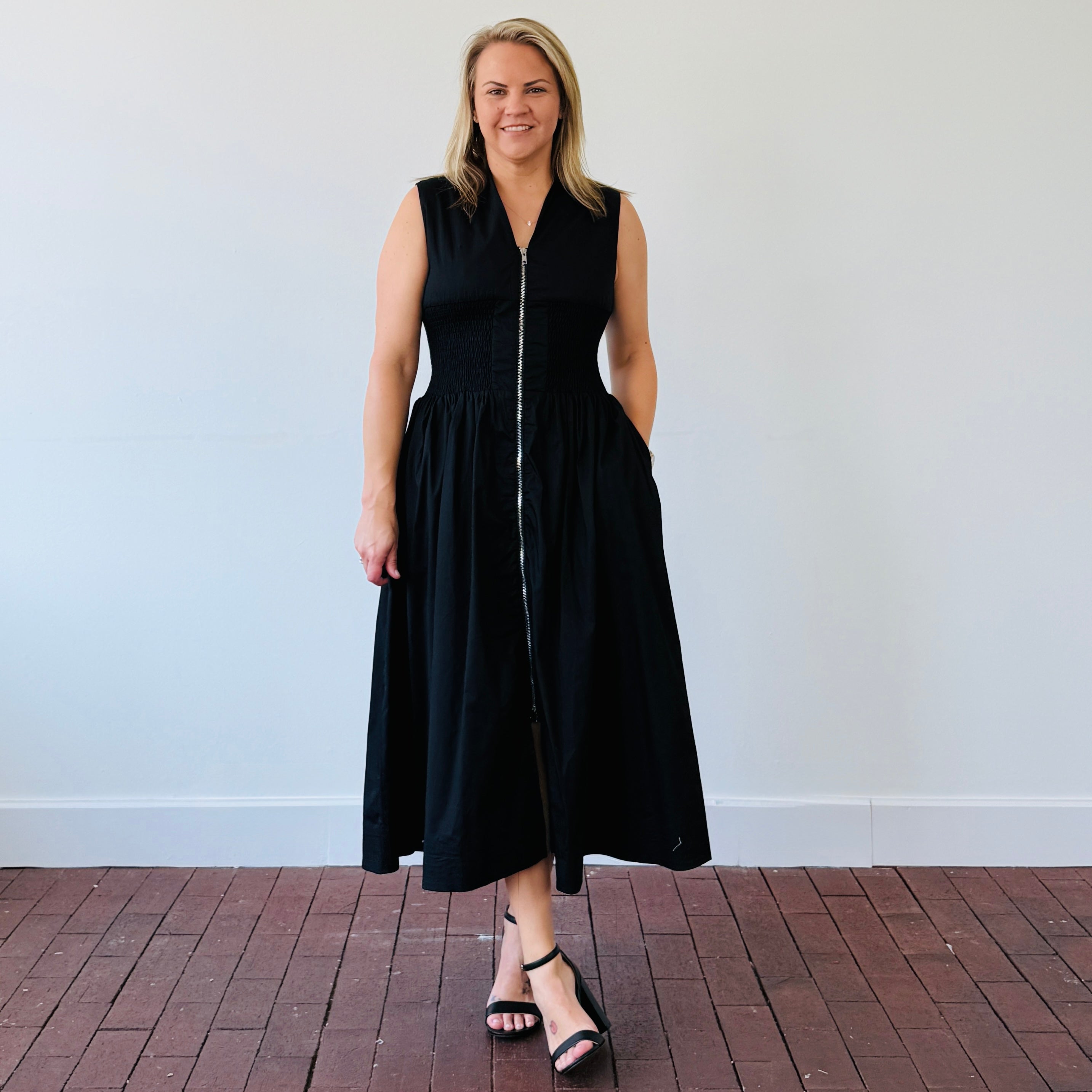 Sleek, flattering, and made to move with you—the Kennedy Zipper Front Midi Dress is a must-have for your functional fashion lineup. Featuring a bold center front exposed zipper, this dress brings just the right amount of edge to your everyday look. The smocked waist flatters your shape, while functioning side pockets keep it practical (because we never say no to pockets).Key Features: