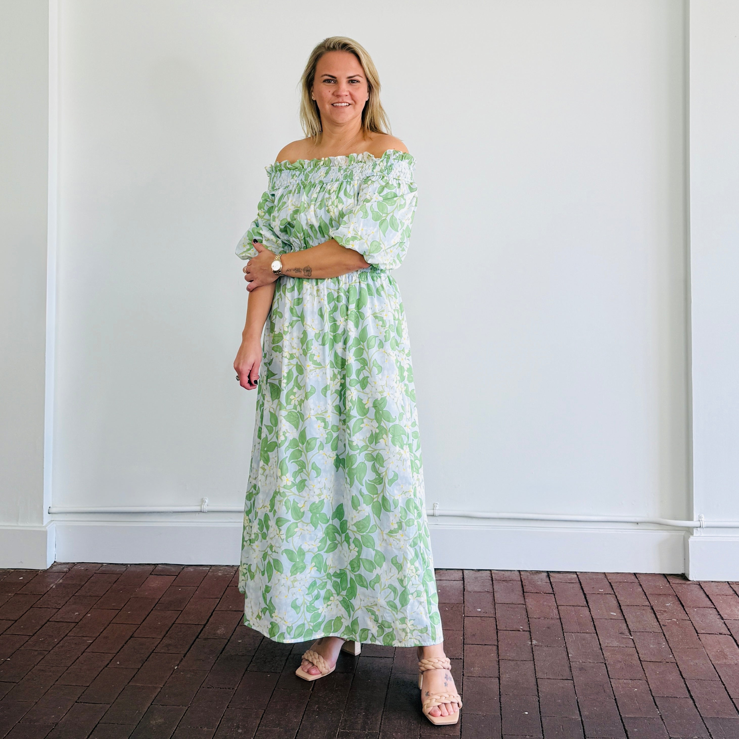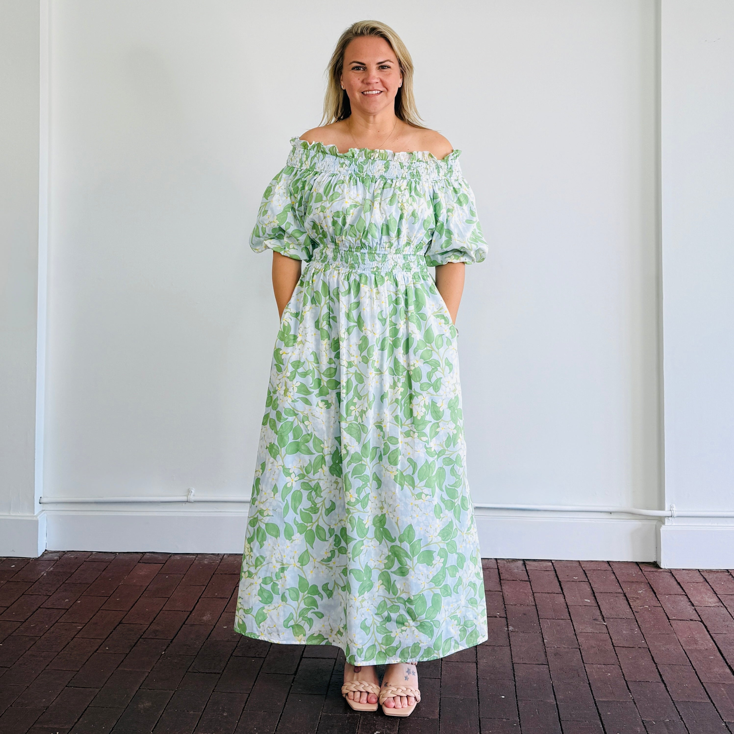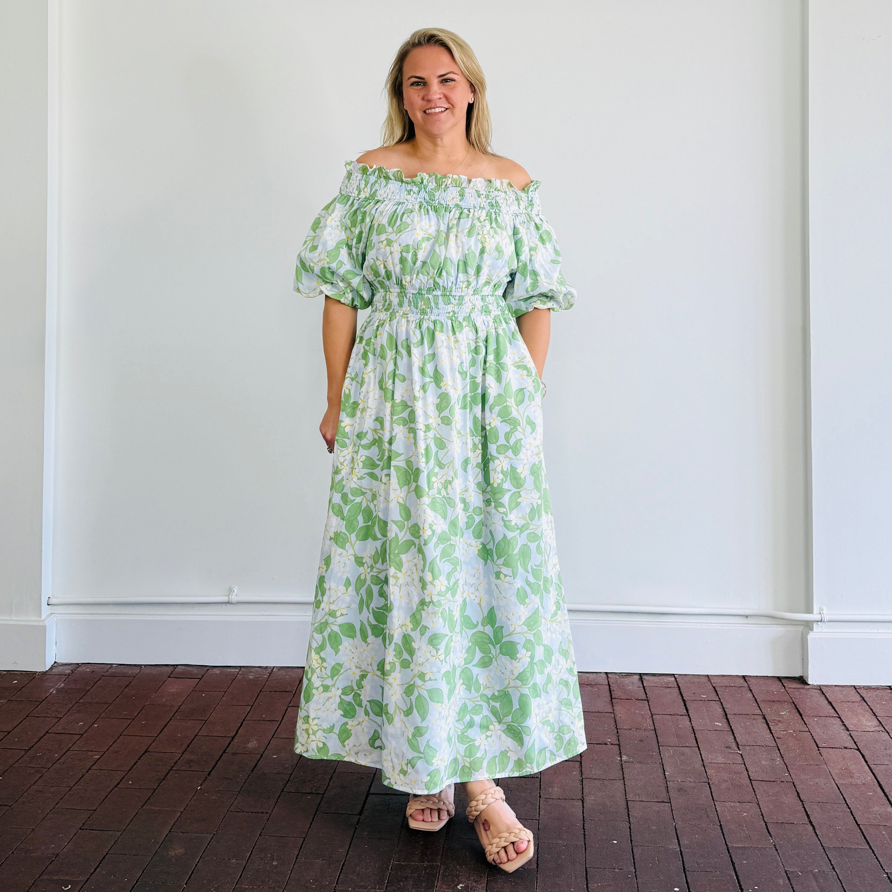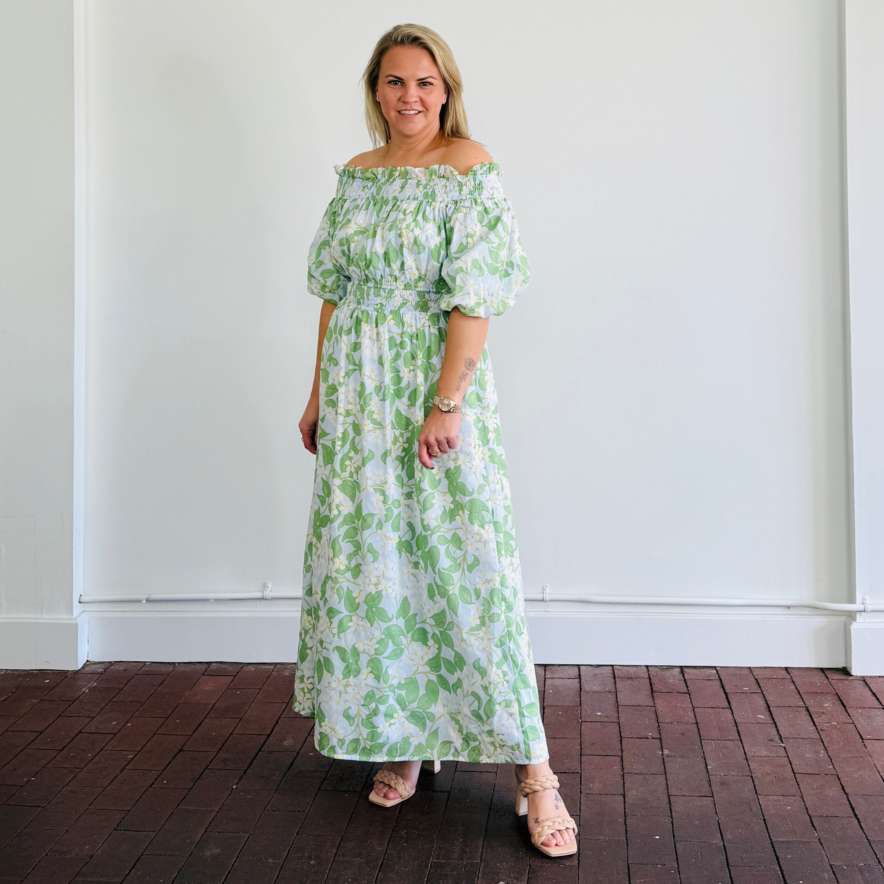 The Magna Midi Dress is a dreamy, feminine piece designed for effortless style and comfort. With its romantic silhouette and breezy details, this off-the-shoulder midi dress is perfect for any occasion, from casual outings to special events.