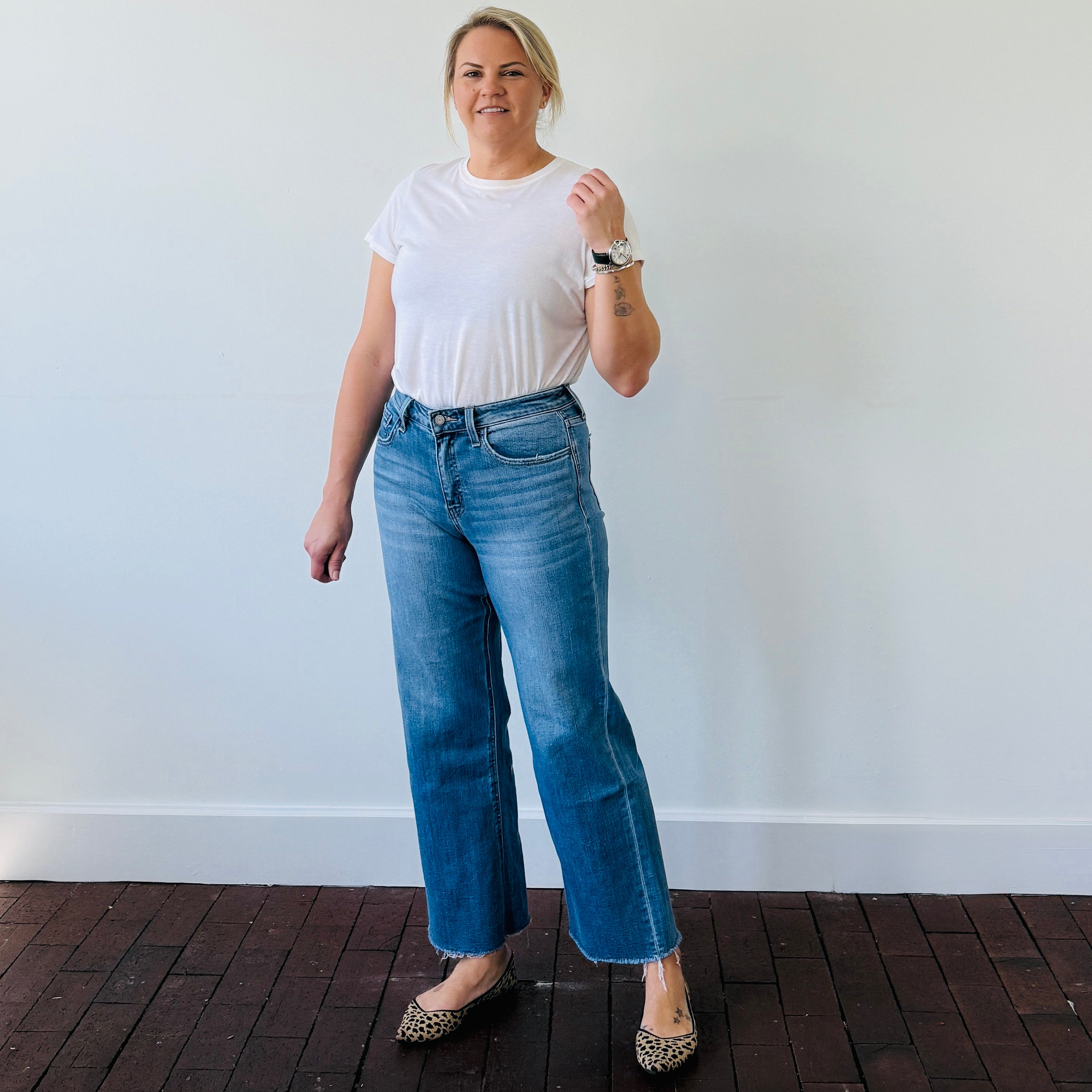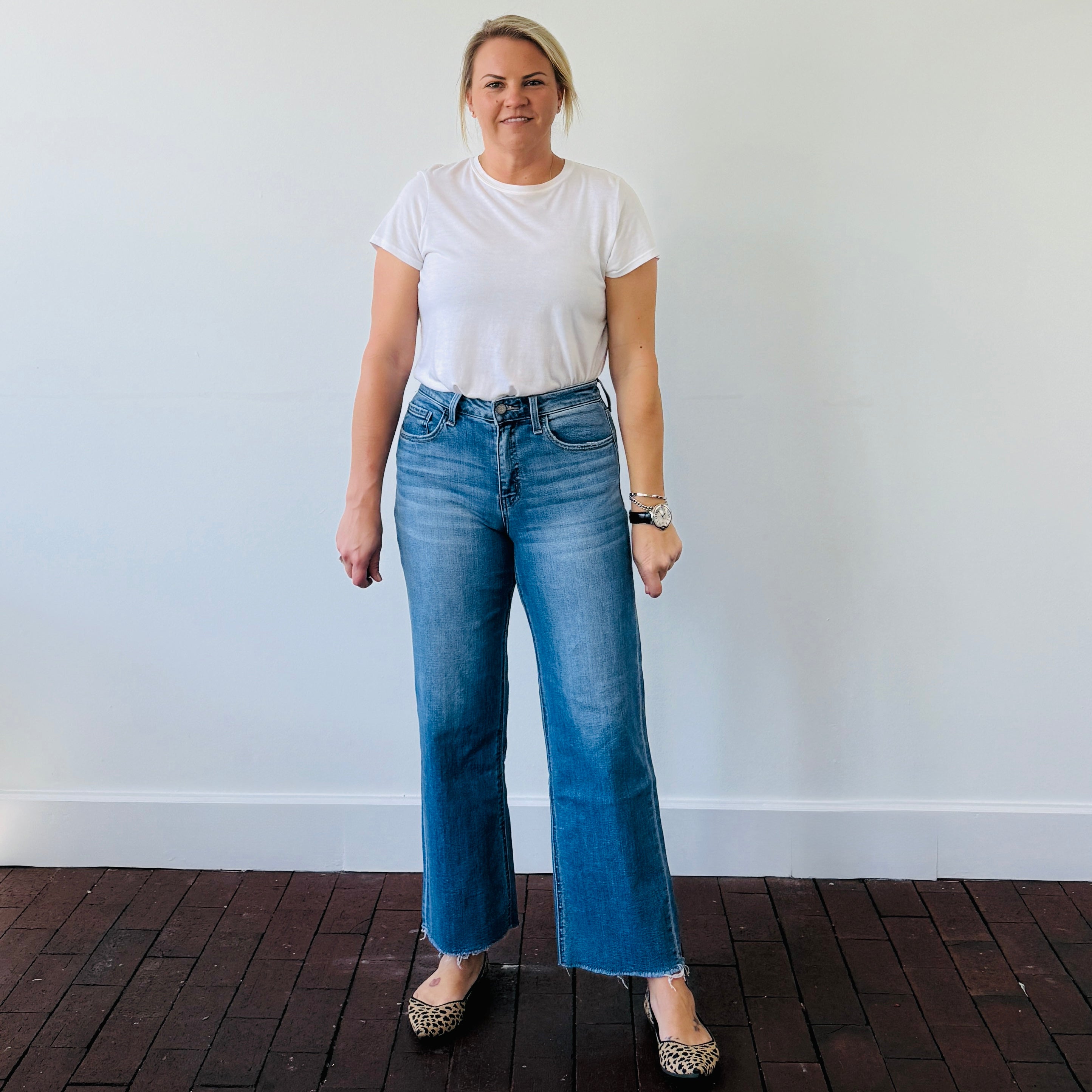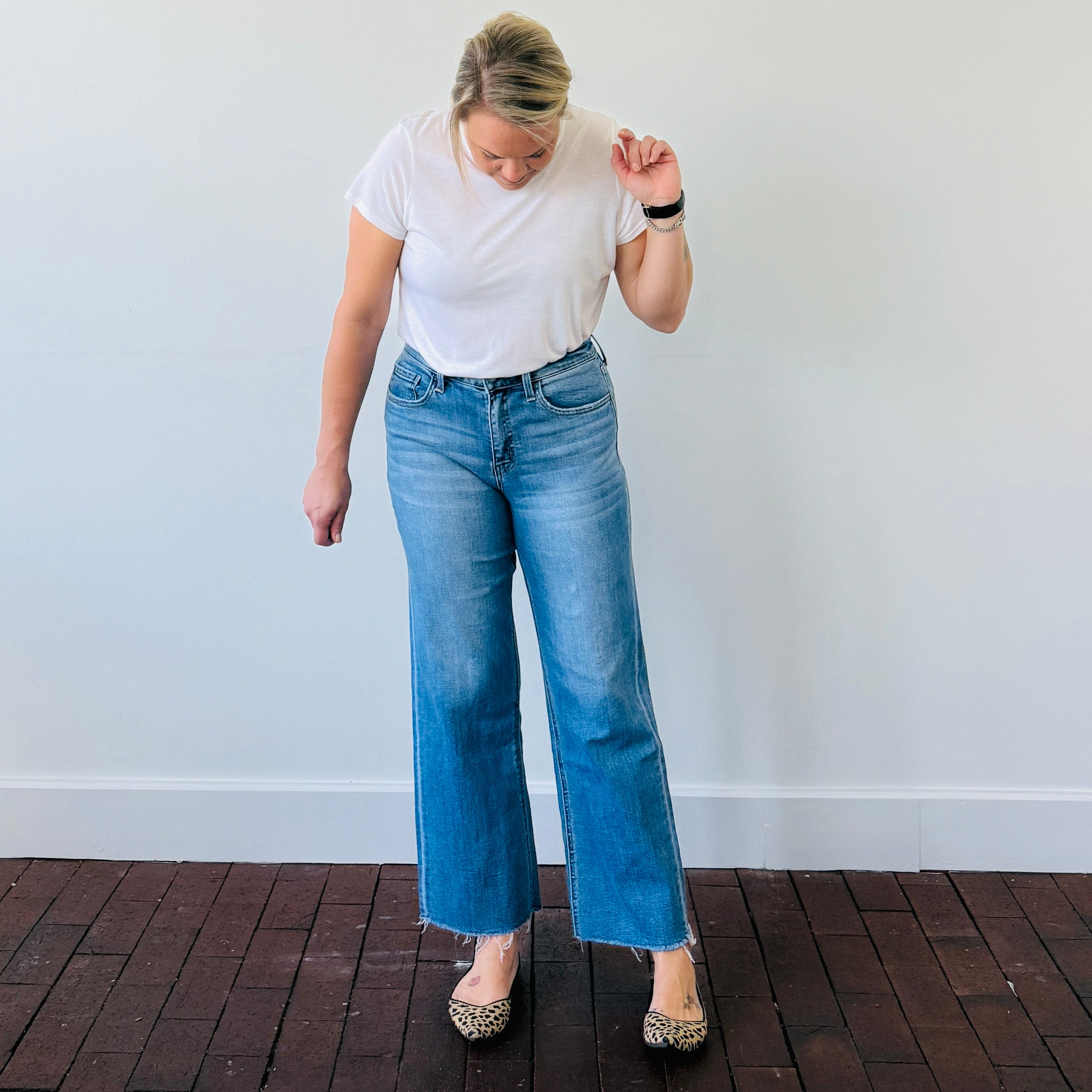 The kind of denim that says, "I'm chill, but I still showed up cute." Our High Rise Evening Star Ankle Dad Jeans are the everyday staple that goes with your whole life...from coffee runs to casual cocktails.
