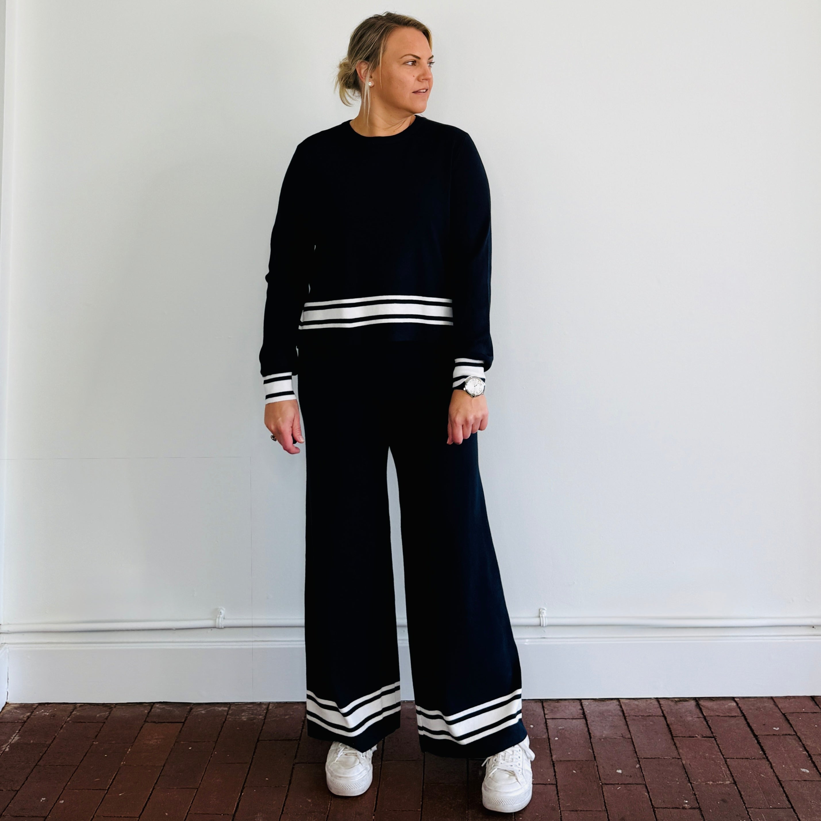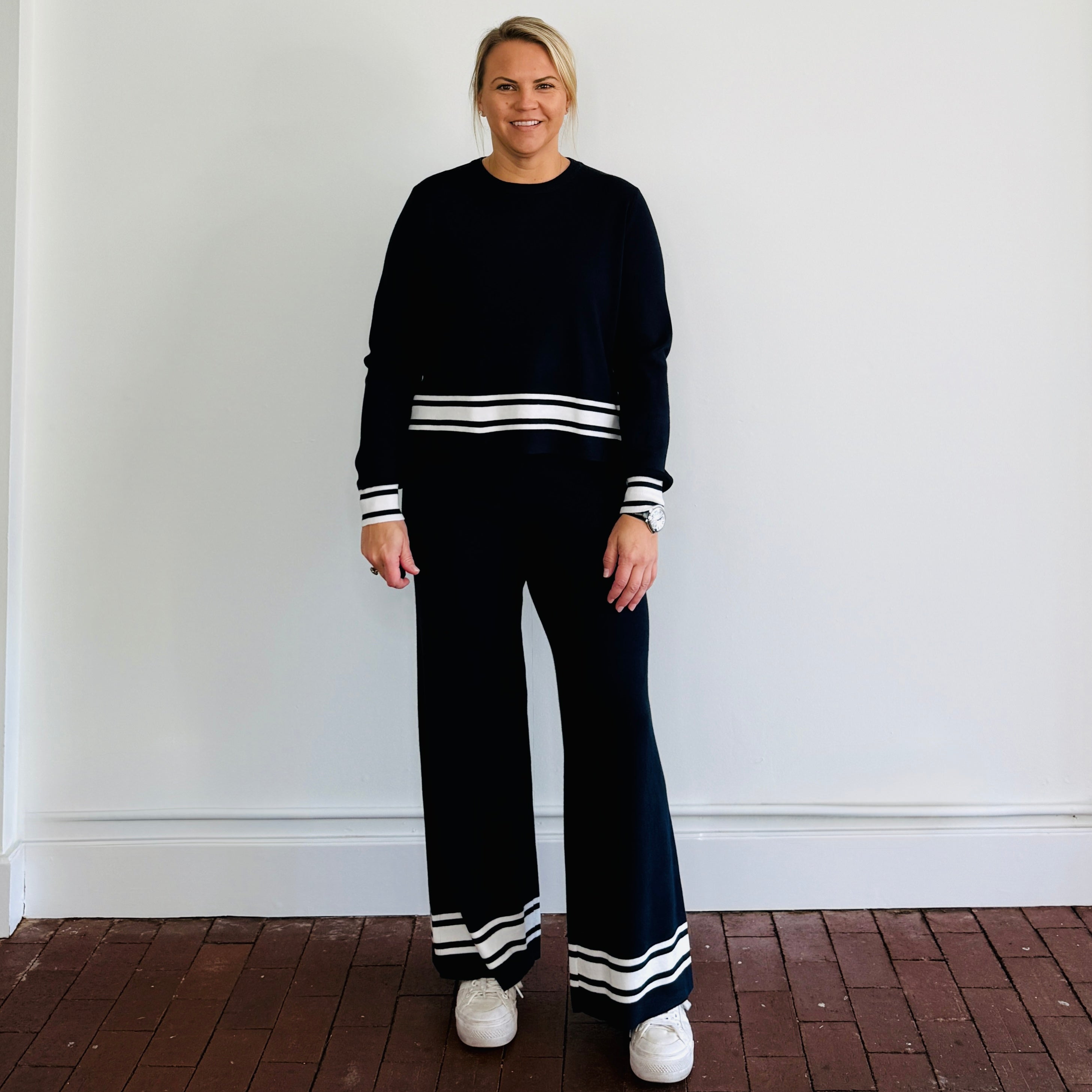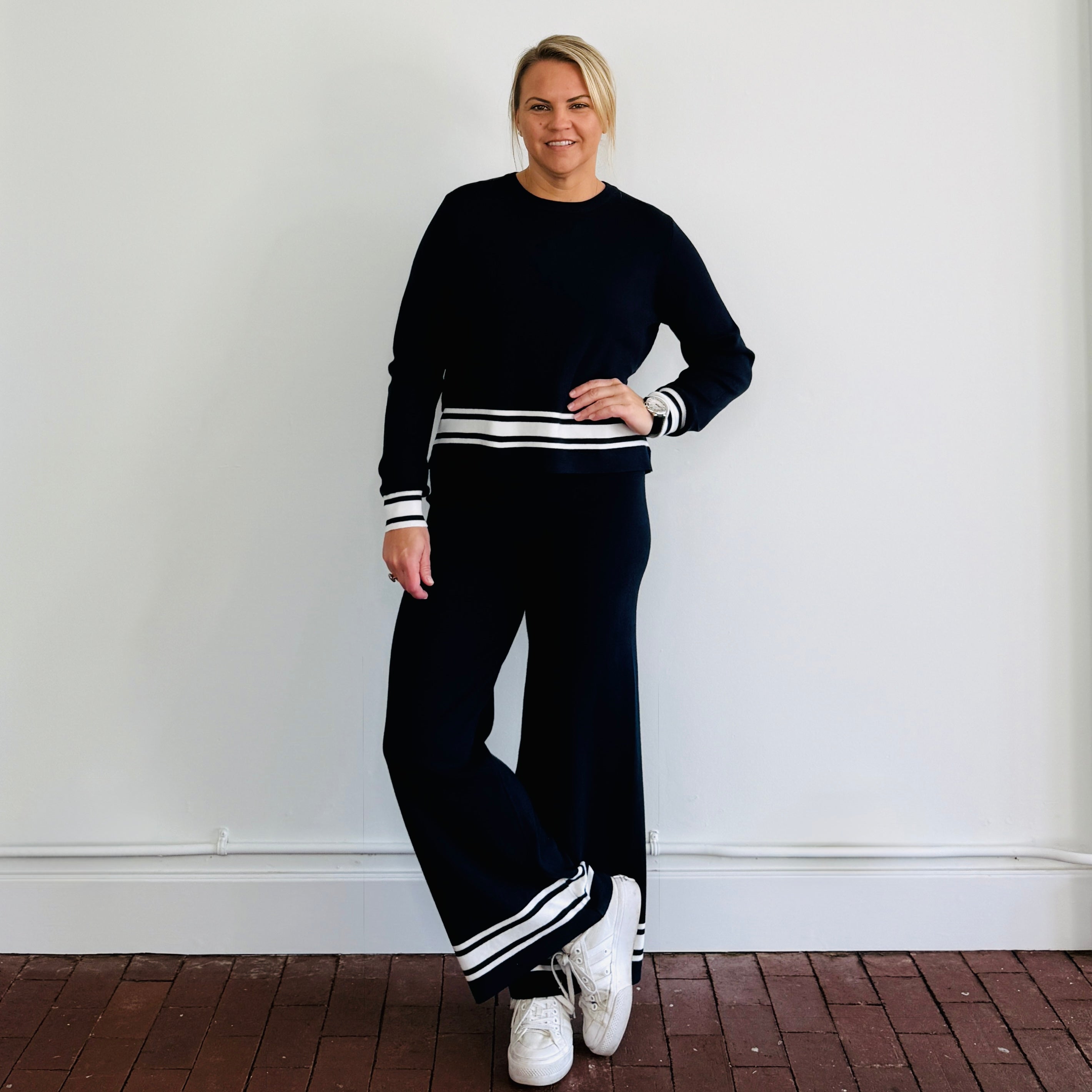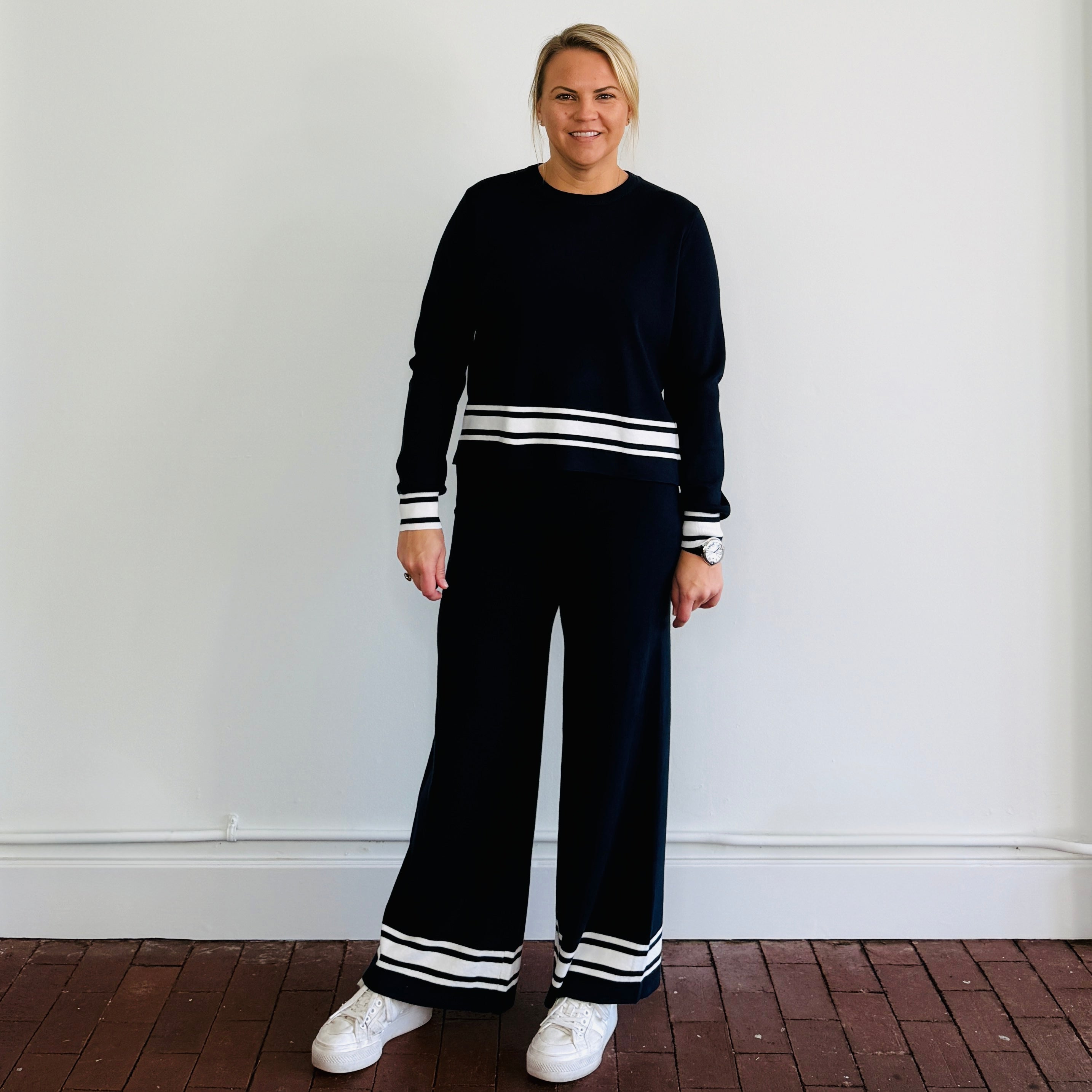 Long Sleeve Crew Neck with Stripe Hem Sweater